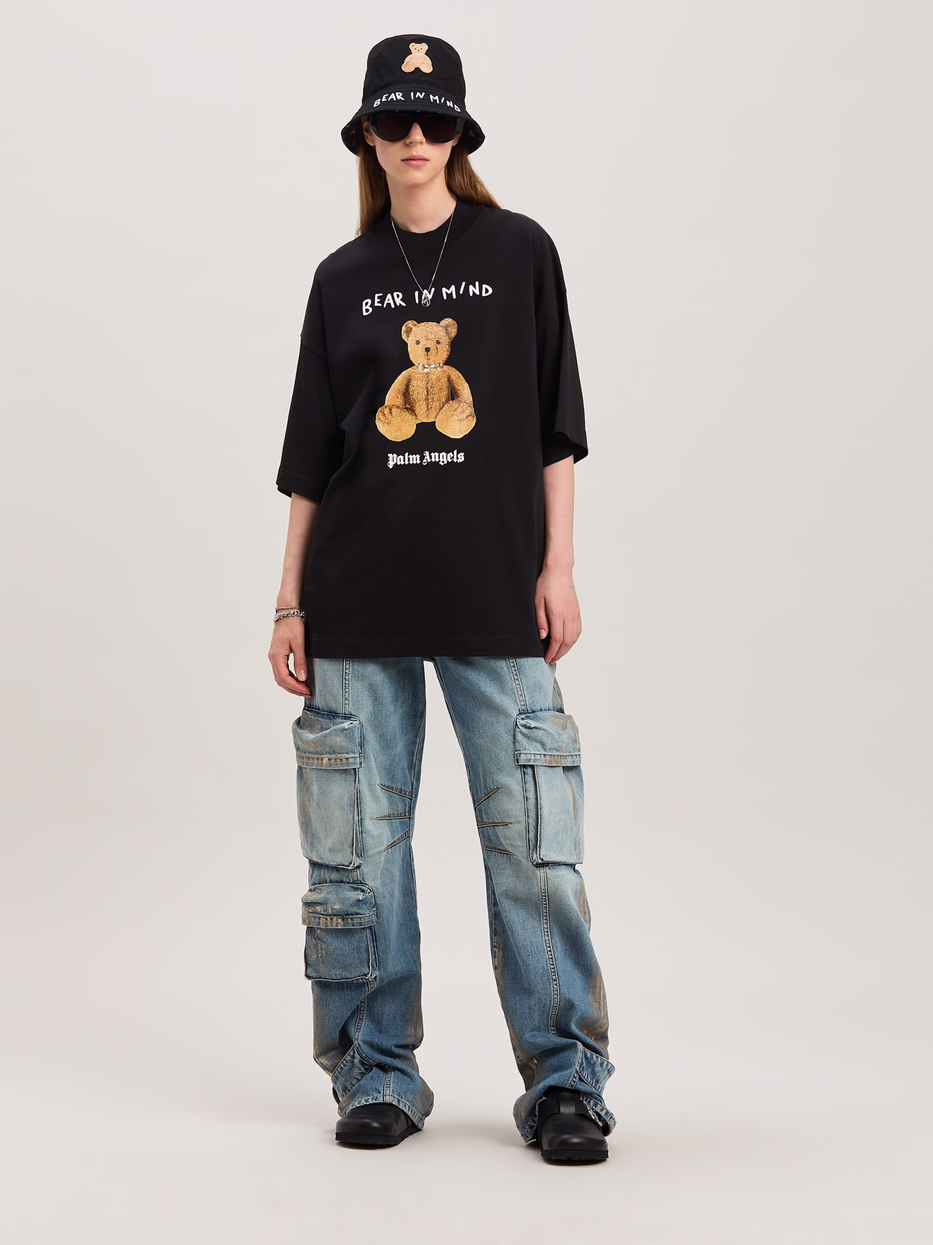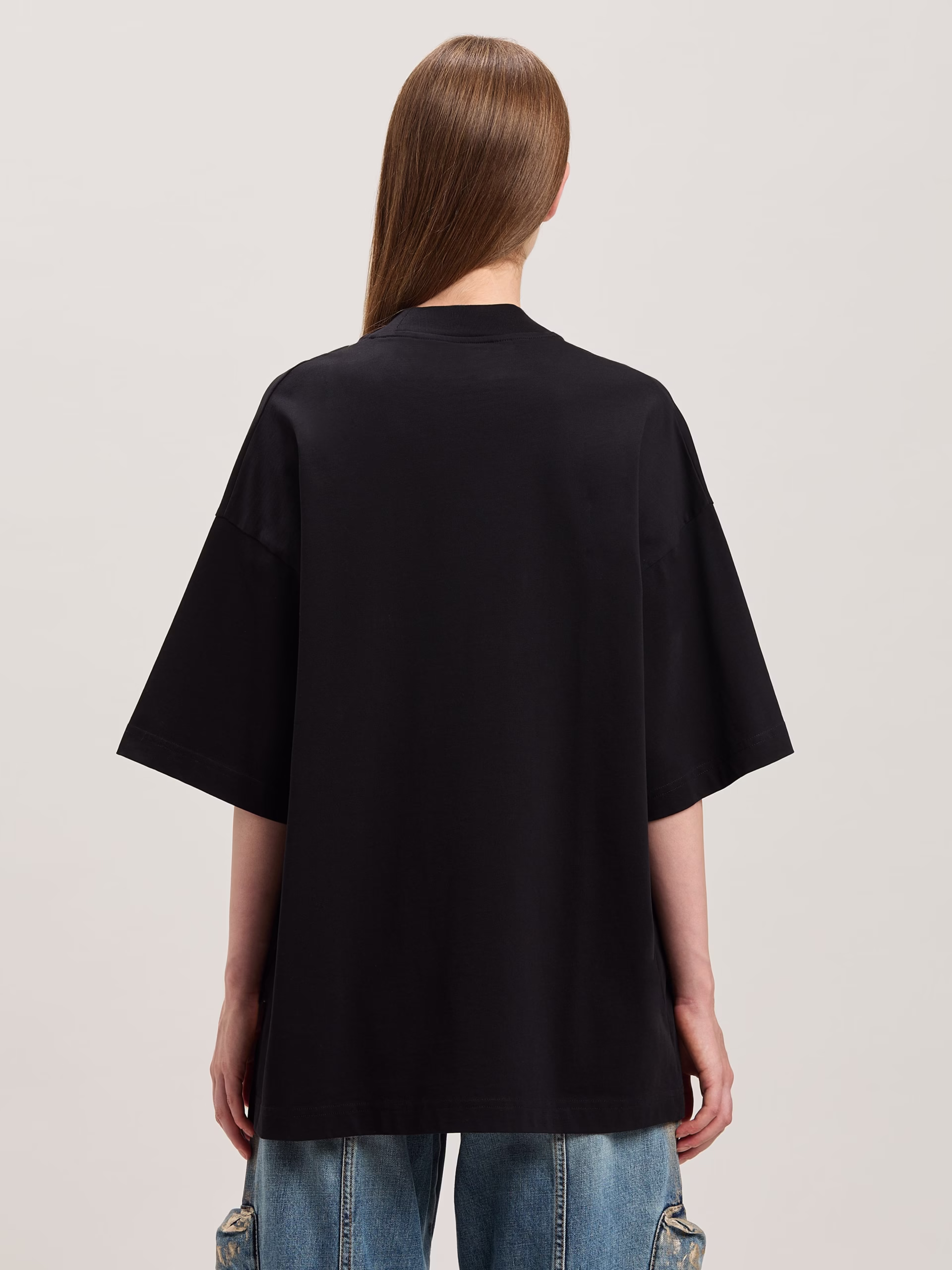 The iconic bear in its punk version is back with new motifs and graphics. Women’s black loose short-sleeved T-shirt featuring tedd