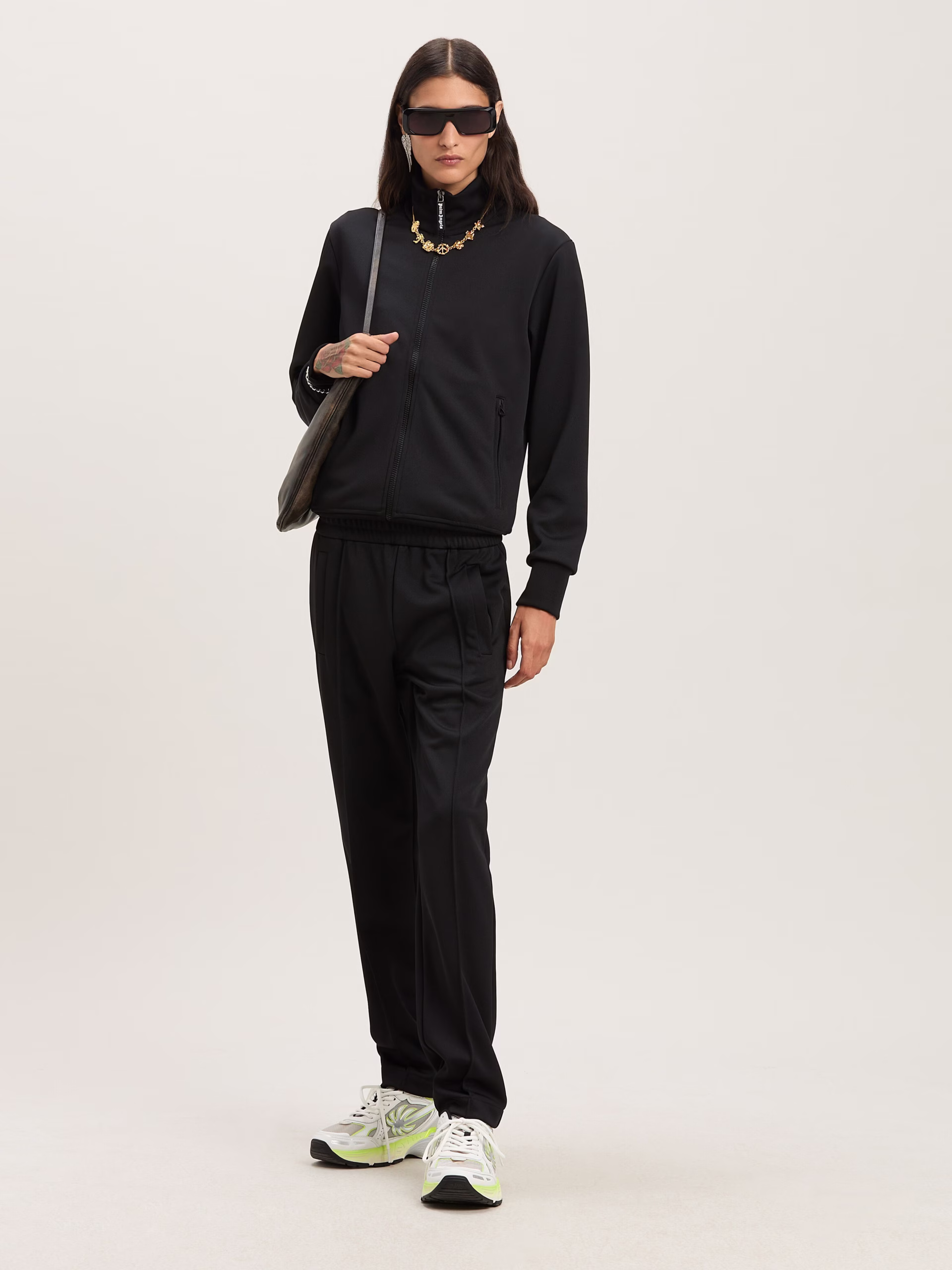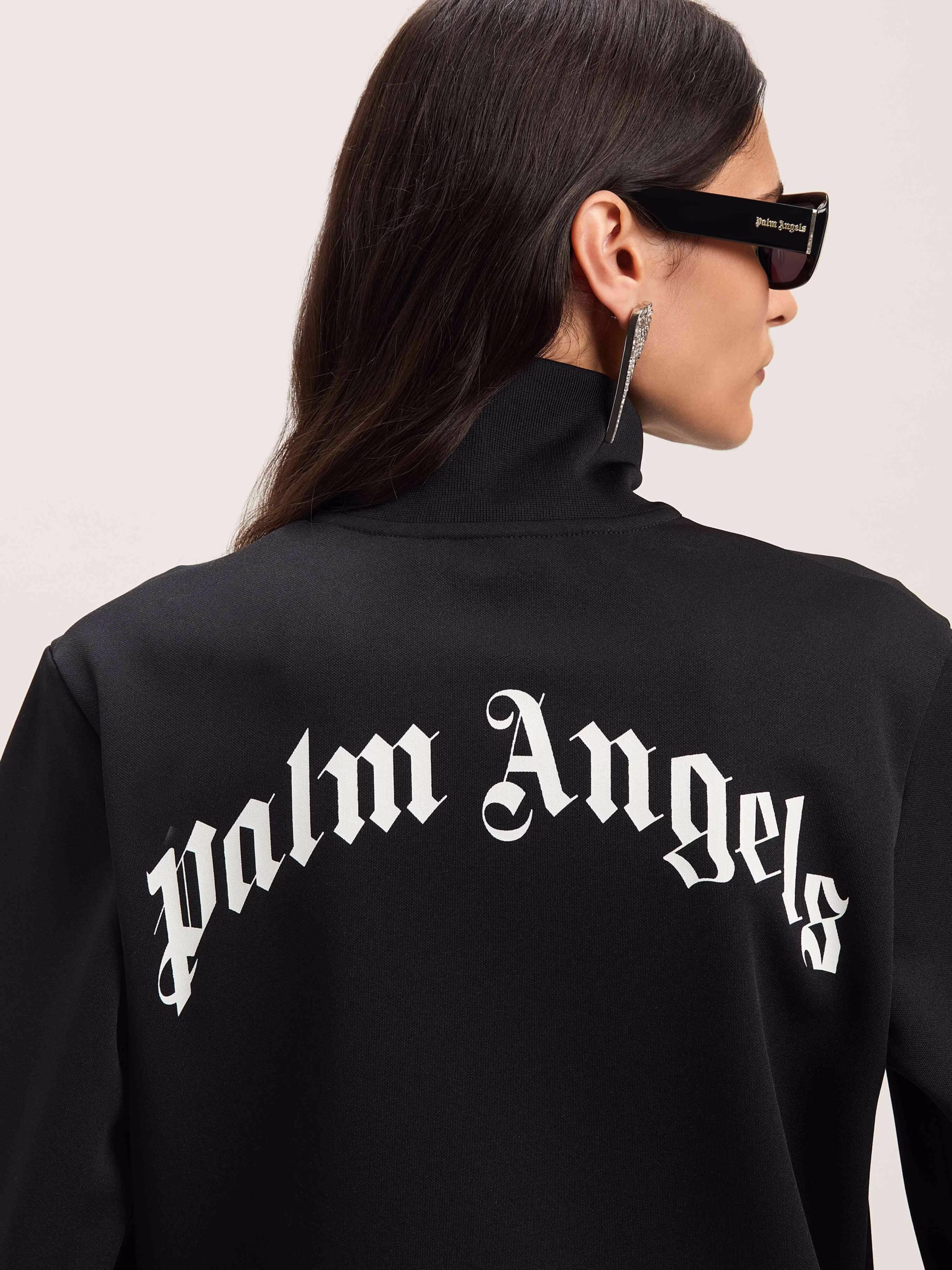 Palm Angels is a state of mind, the tracksuit its daily outfit. Women’s black track jacket with stand-up collar, embossed logo zip