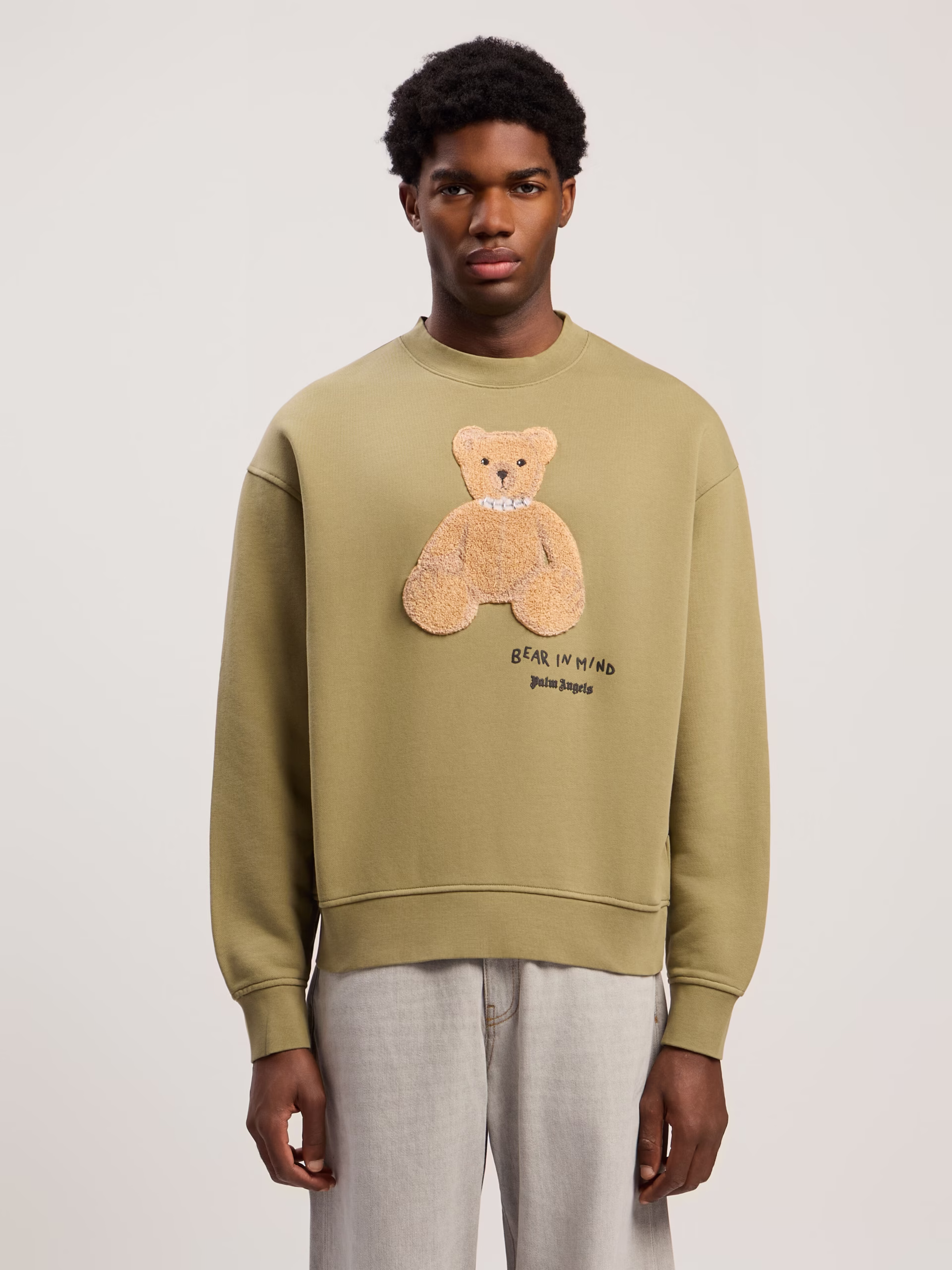 This sweatshirt features a plush bear motif on a soft cotton base, embodying a blend of streetwear and playful design.