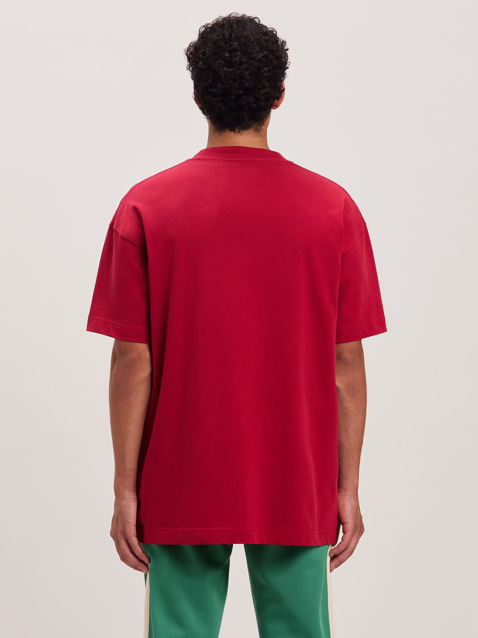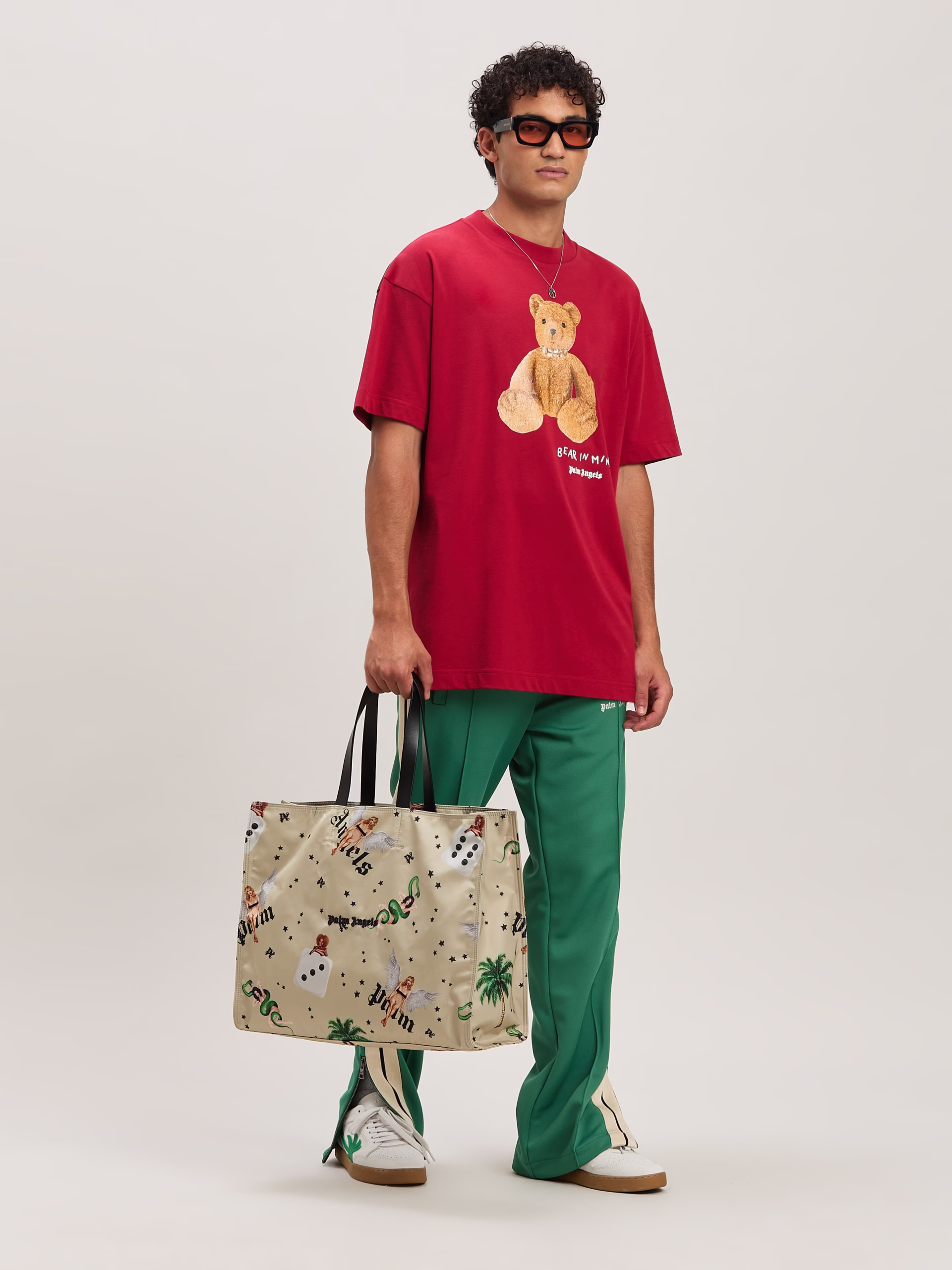 The iconic teddy bear in its punk version returns with new motifs and graphics. Men’s red short-sleeved T-shirt with teddy bear wi