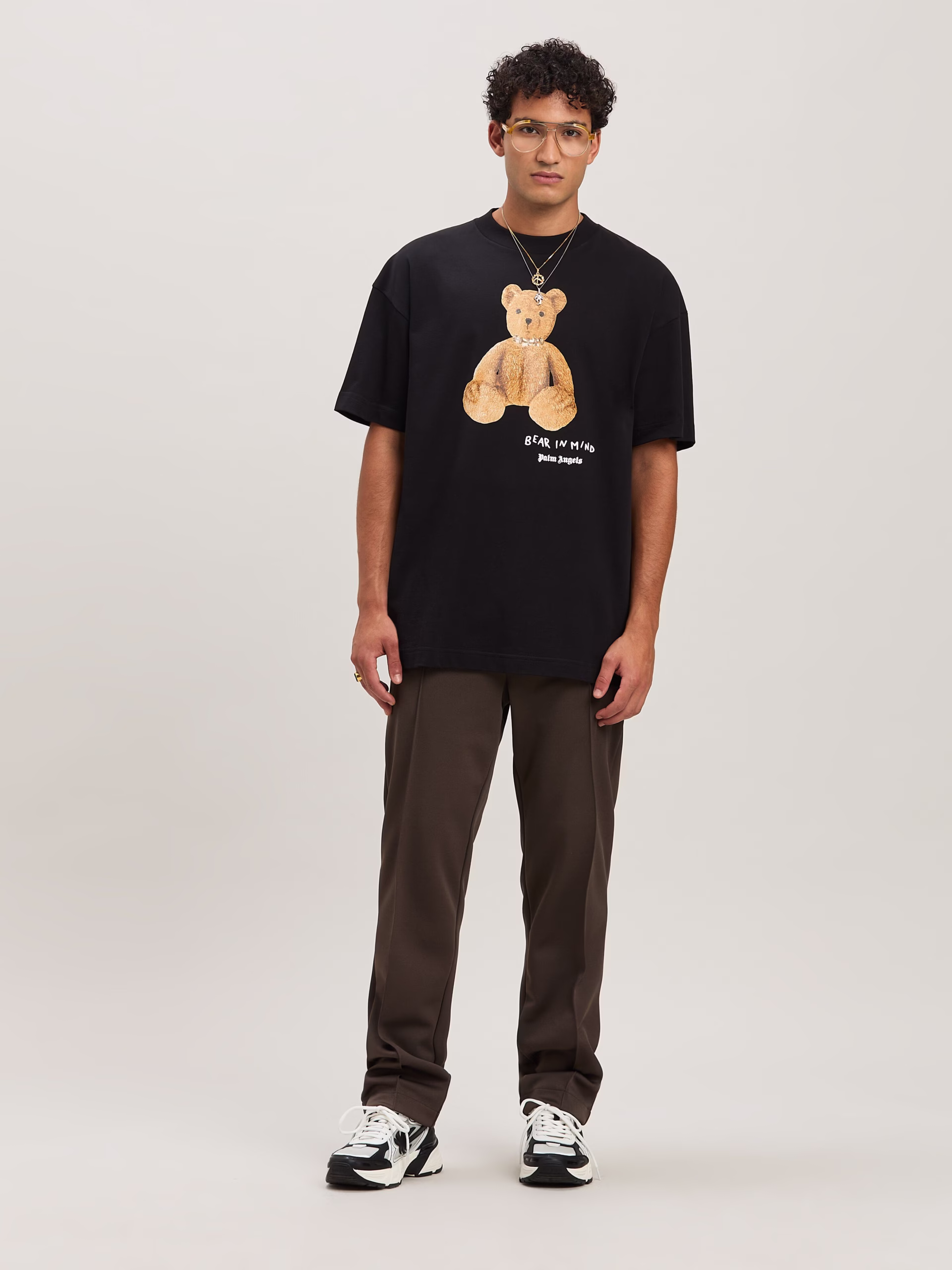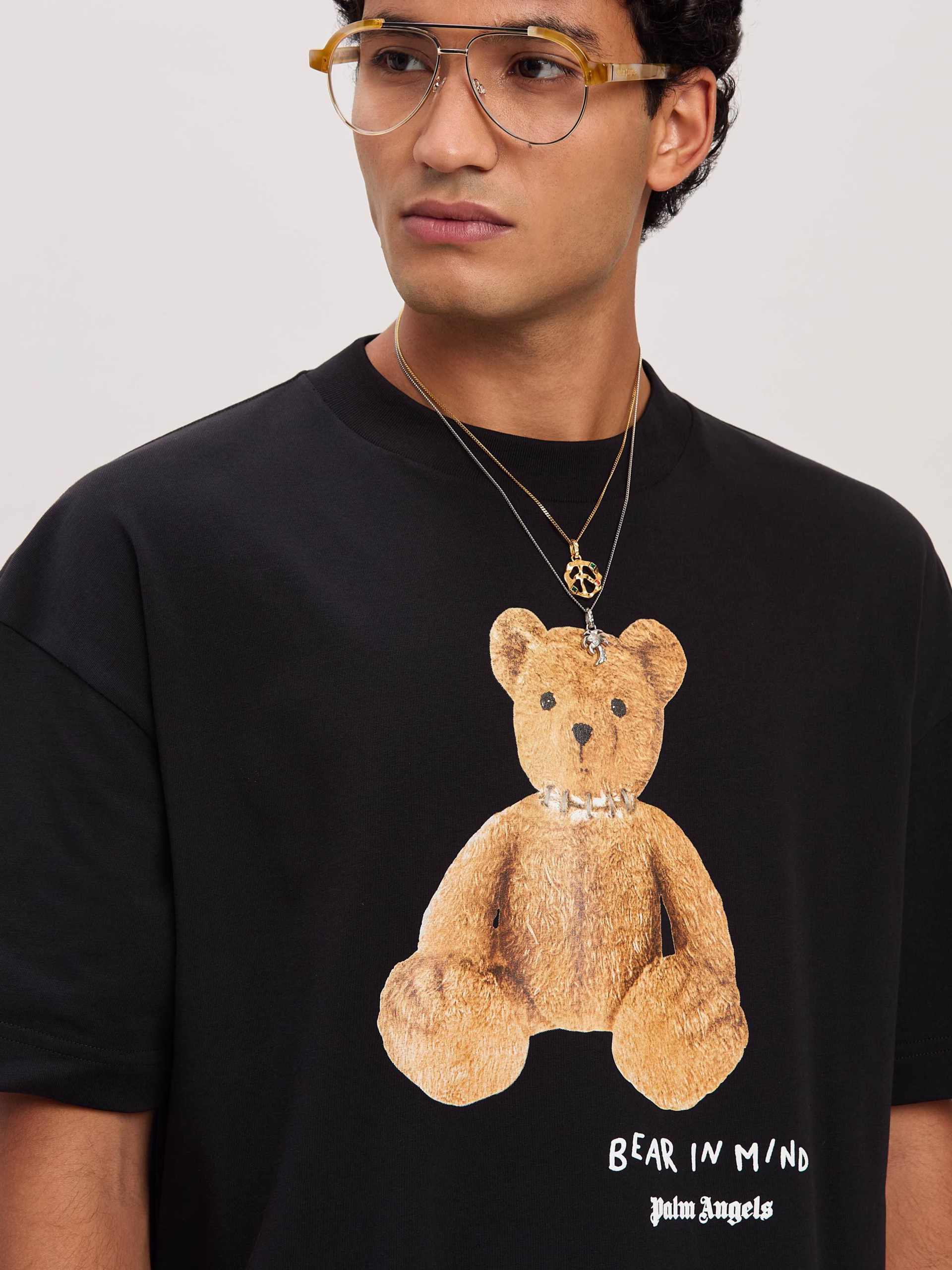 The iconic teddy bear in its punk version returns with new motifs and graphics. Men’s black short-sleeved T-shirt with teddy bear