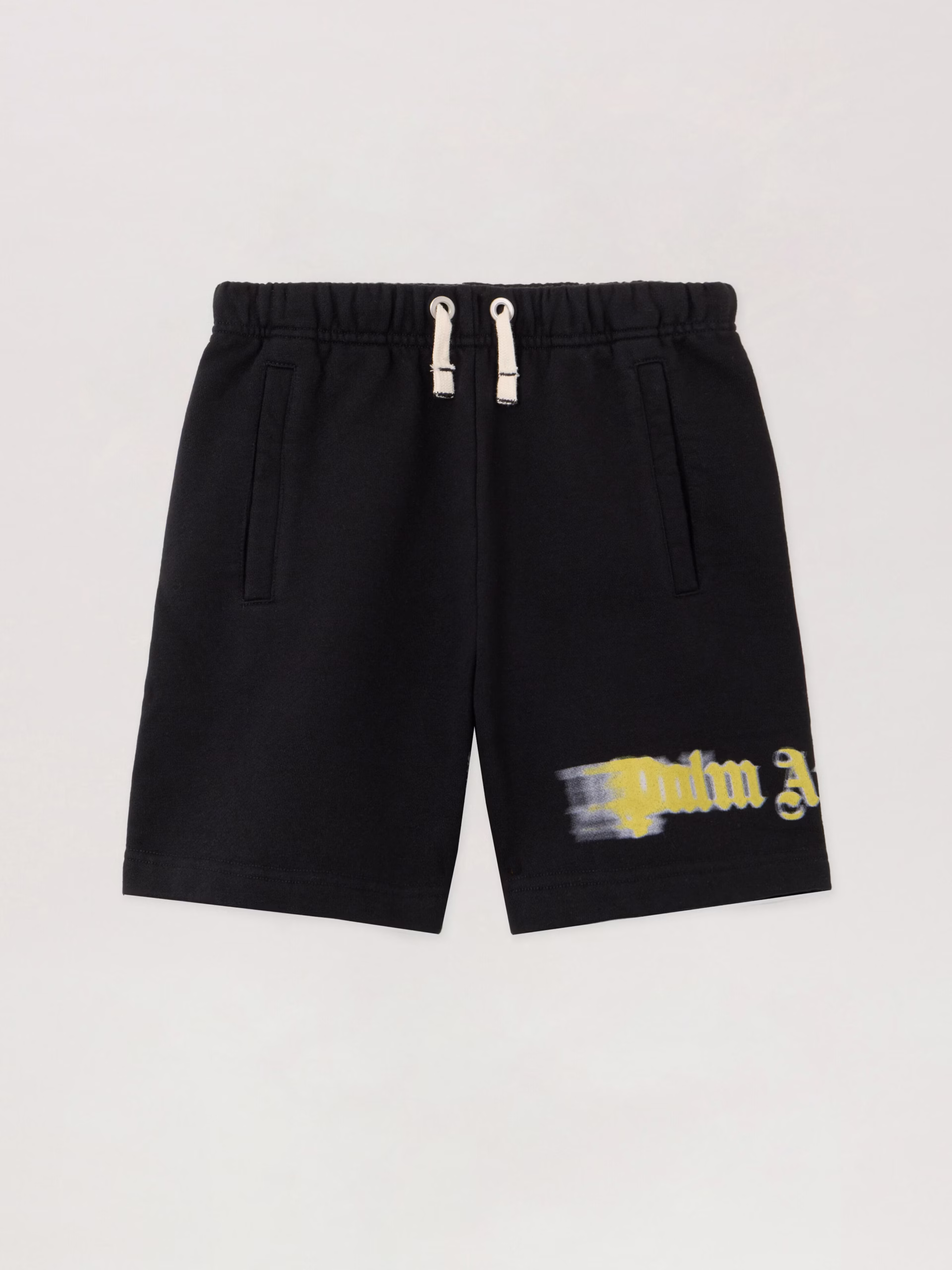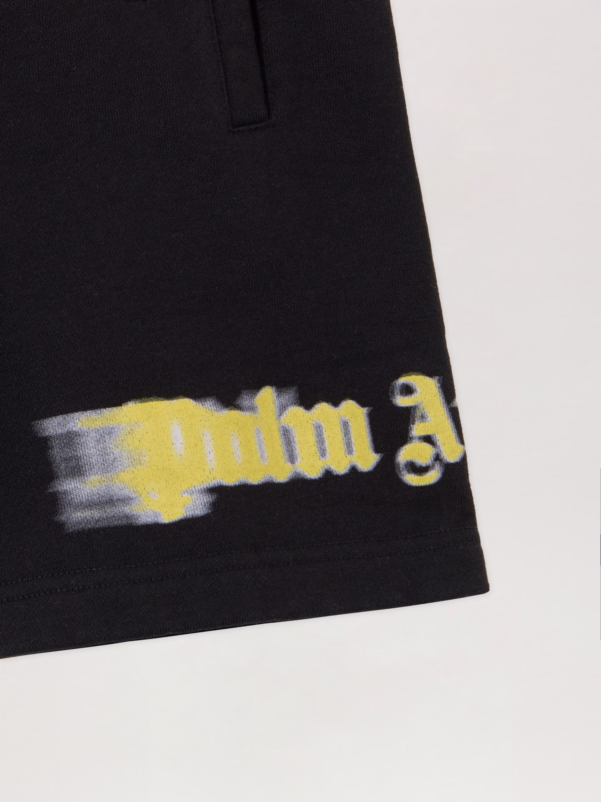 Mid-rise cotton sweatshorts with a distinctive blurred logo motif, offering a relaxed silhouette and elasticated drawstring wai