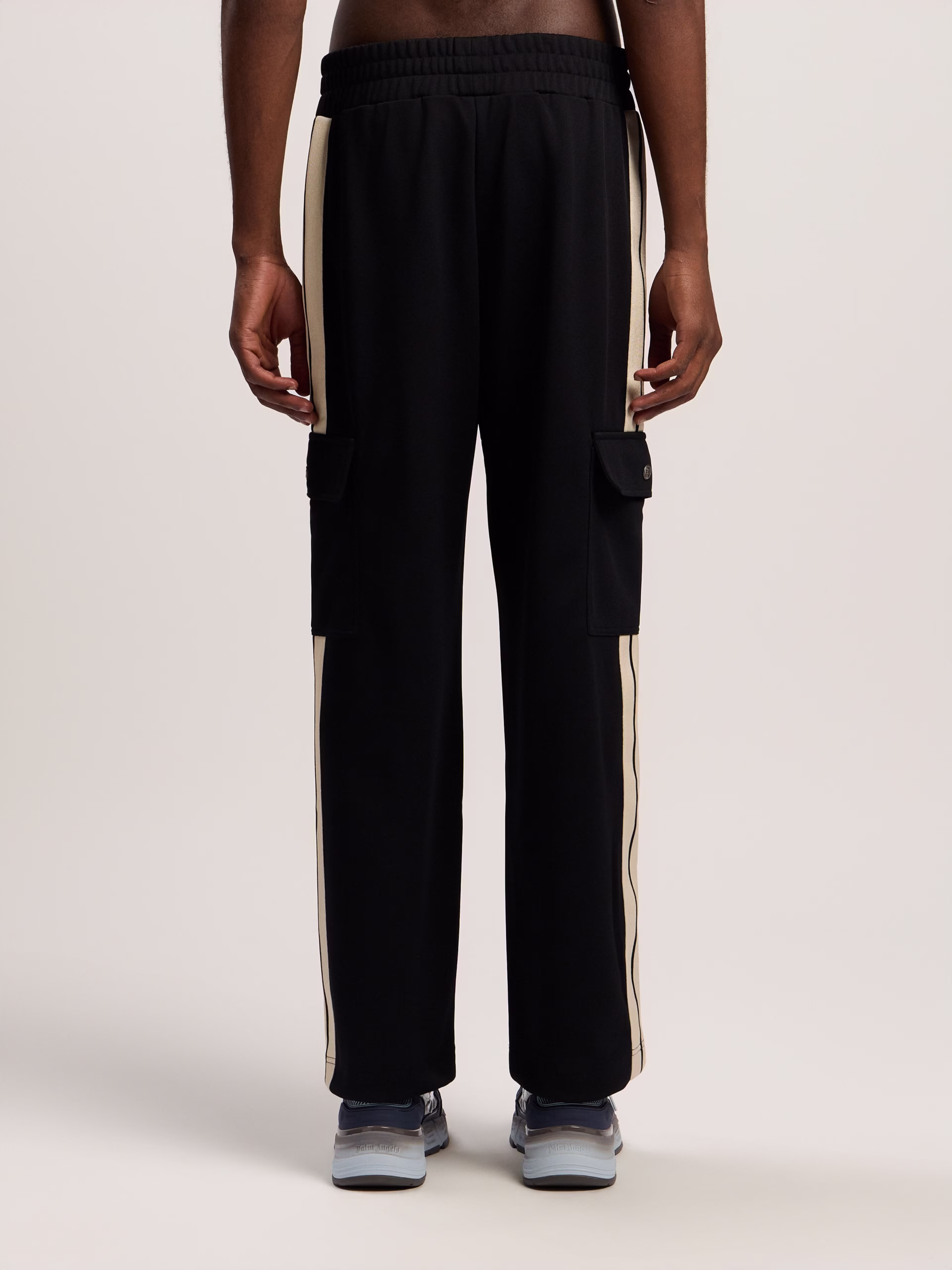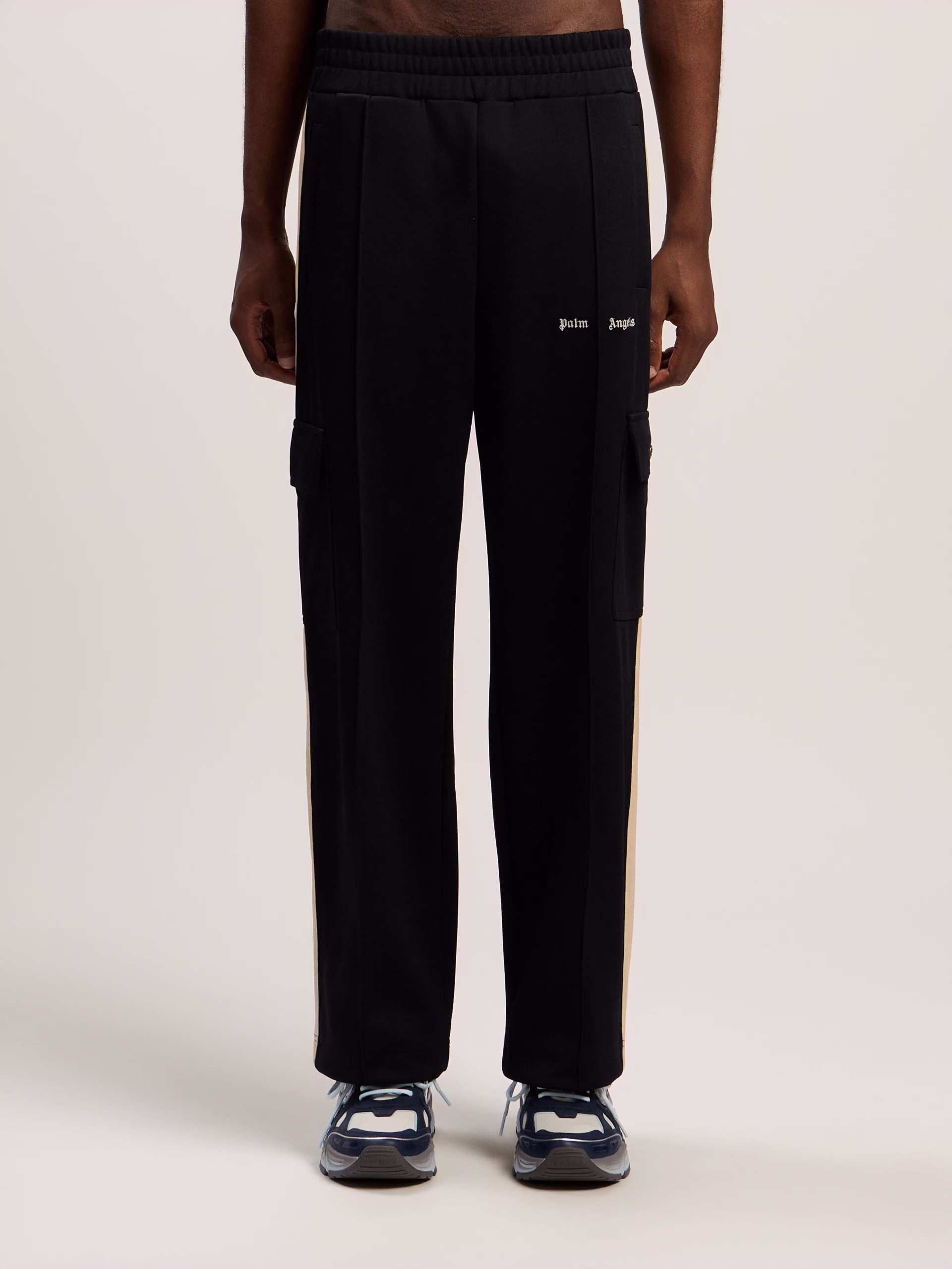 Elevate your streetwear collection with these versatile cargo track pants, featuring an iconic logo and practical design.