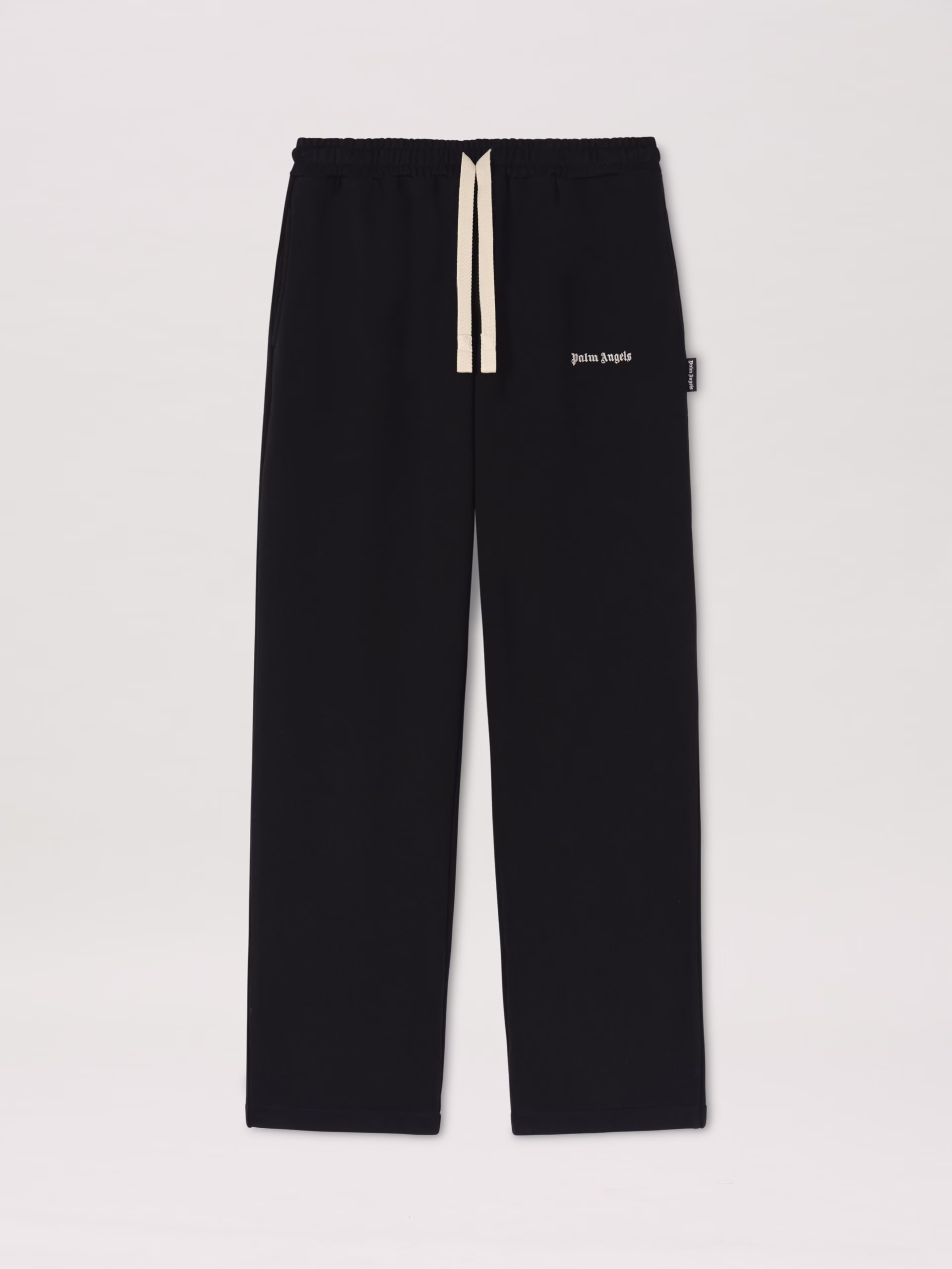 Leisurewear goes everywhere. Men’s black sweatpants with high drawstring waistband, iconic Tapes on sides and logo embroidered in