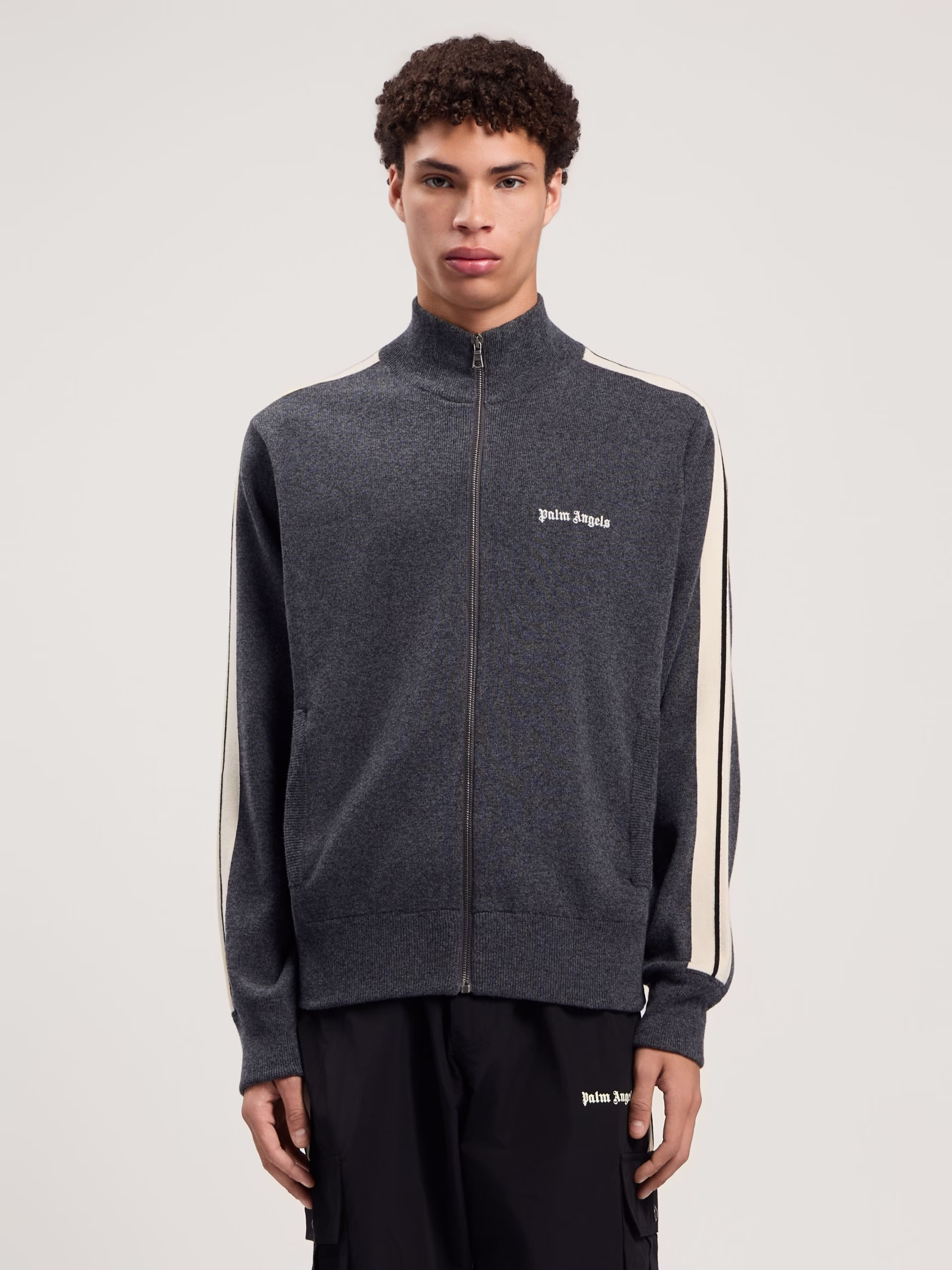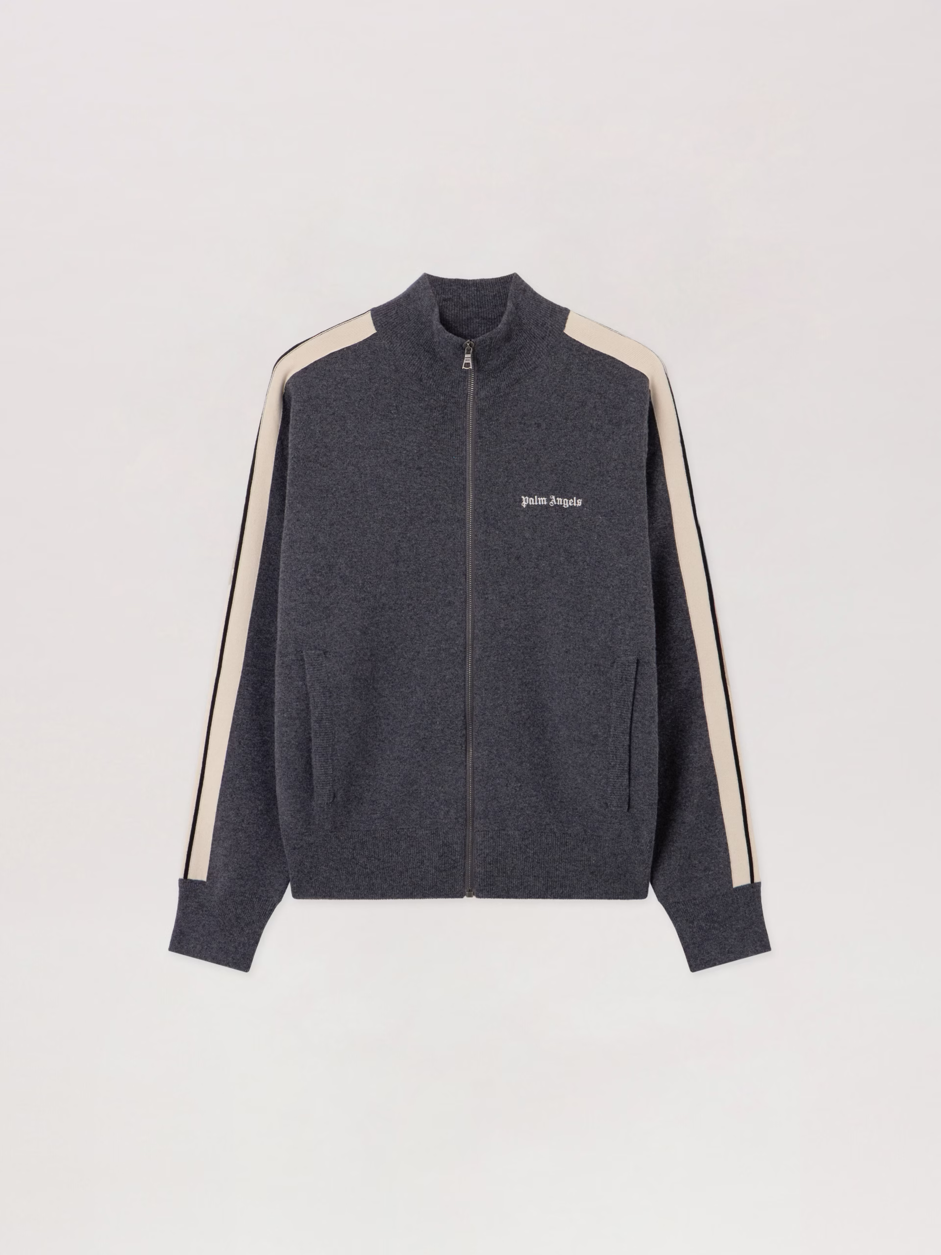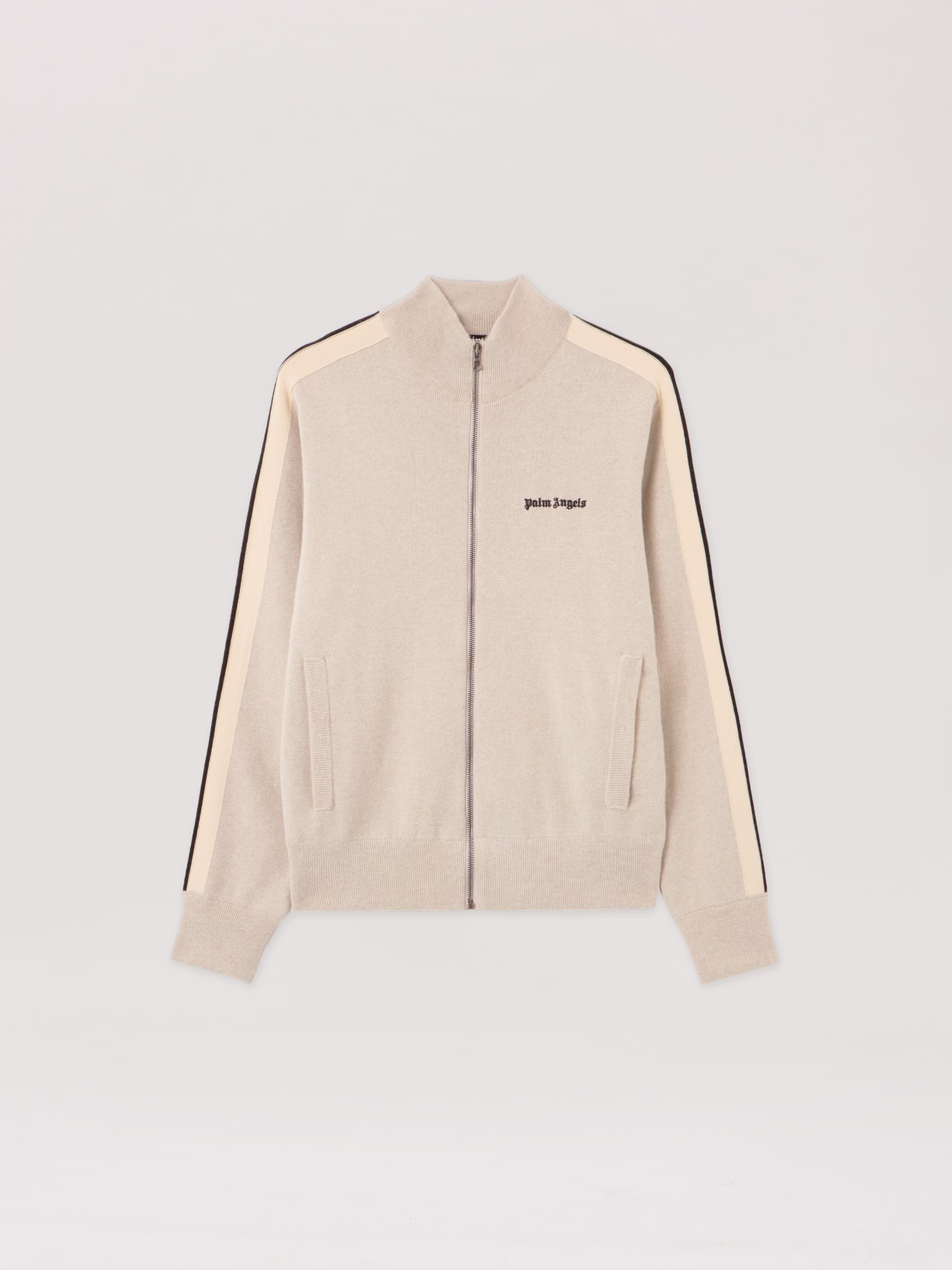 Refined knit track jacket featuring a sleek silhouette, complete with a sophisticated full-front zipper and distinctive logo de