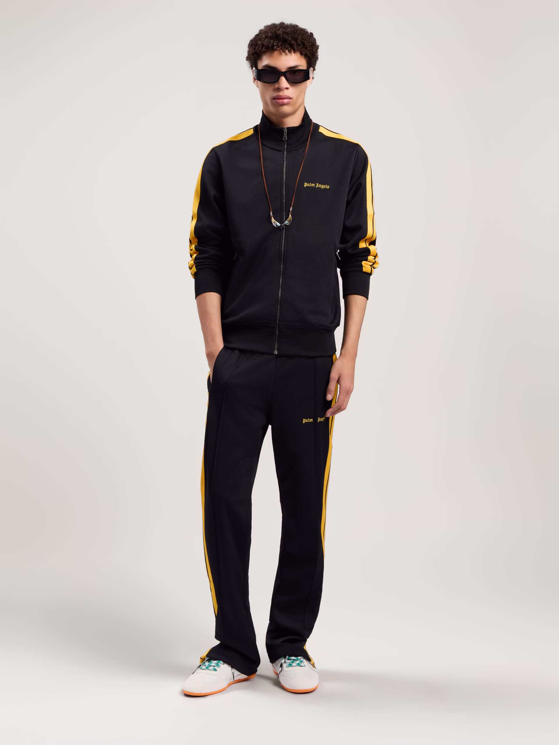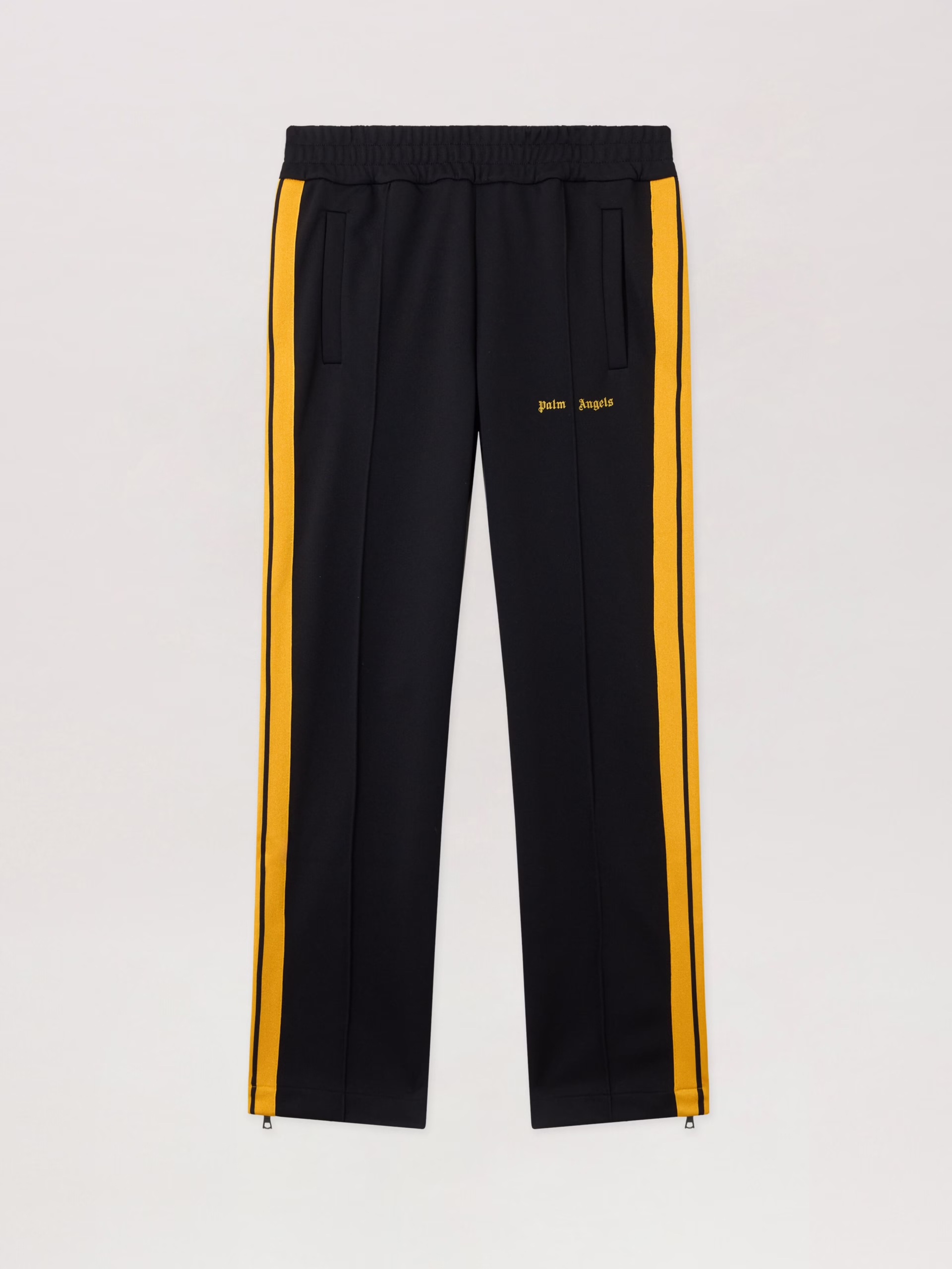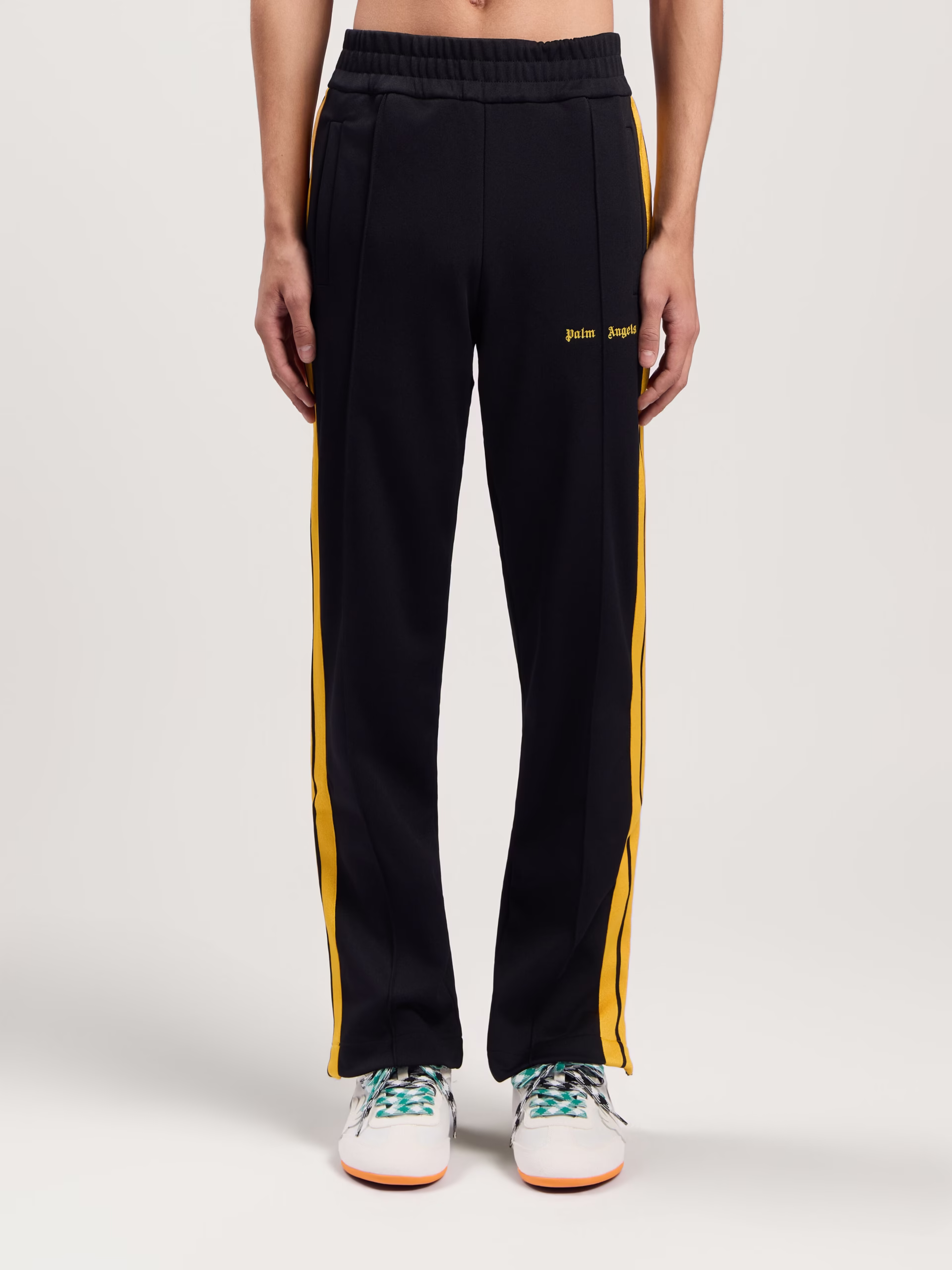 Refined track pants crafted in a structured fabric, featuring the iconic logo and contrast side stripes.