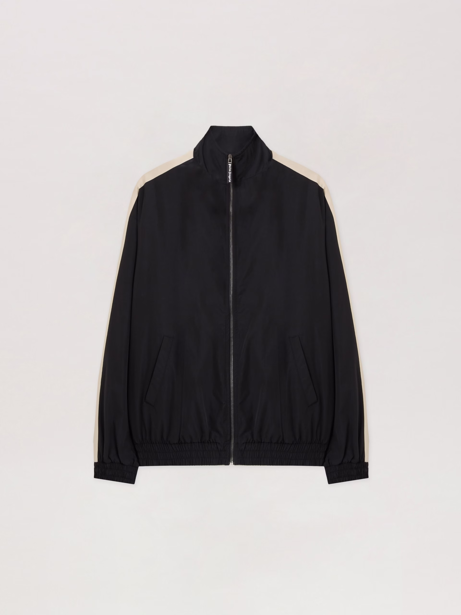 Sleek windbreaker crafted from lightweight fabric, featuring a stand collar and full zip fastening.