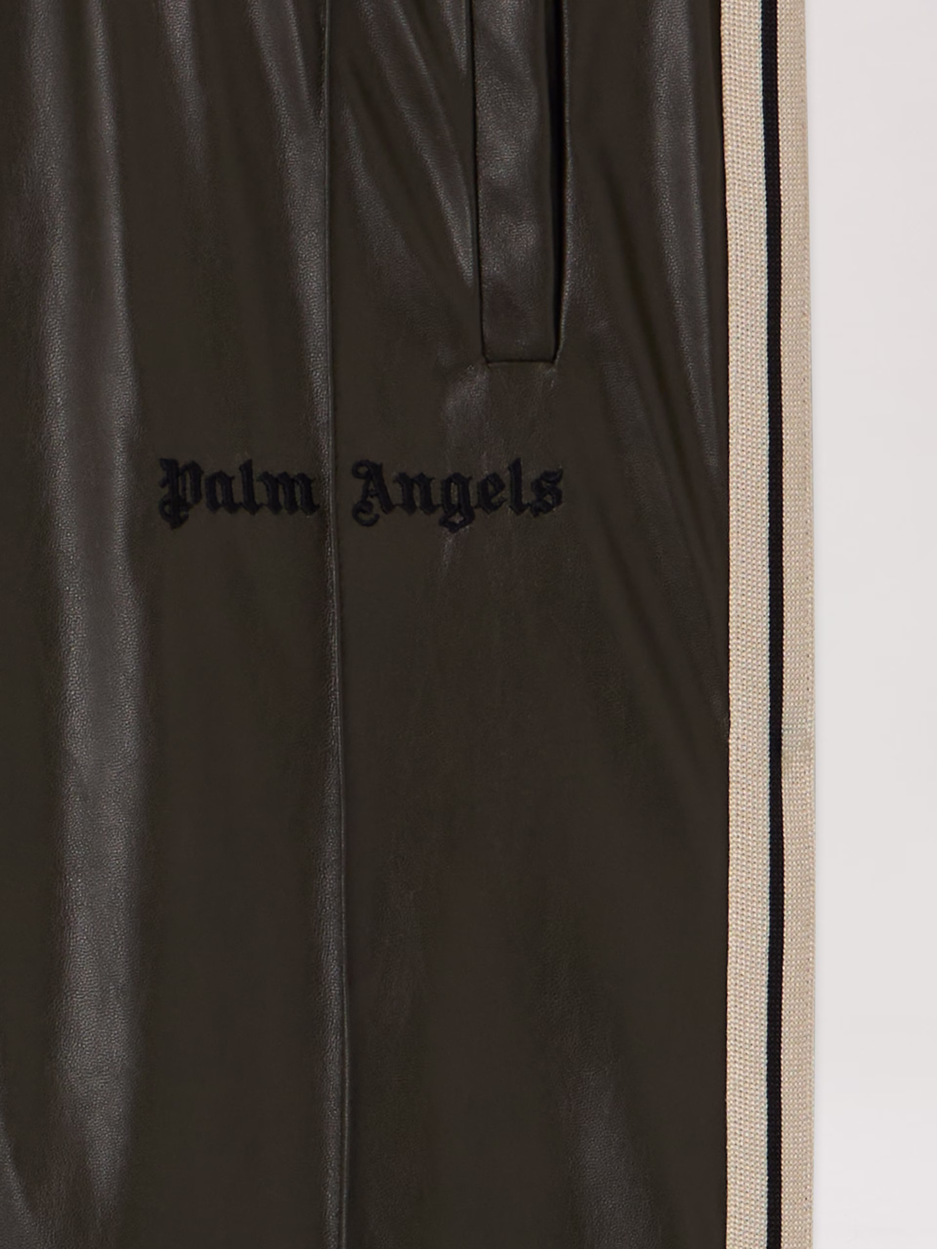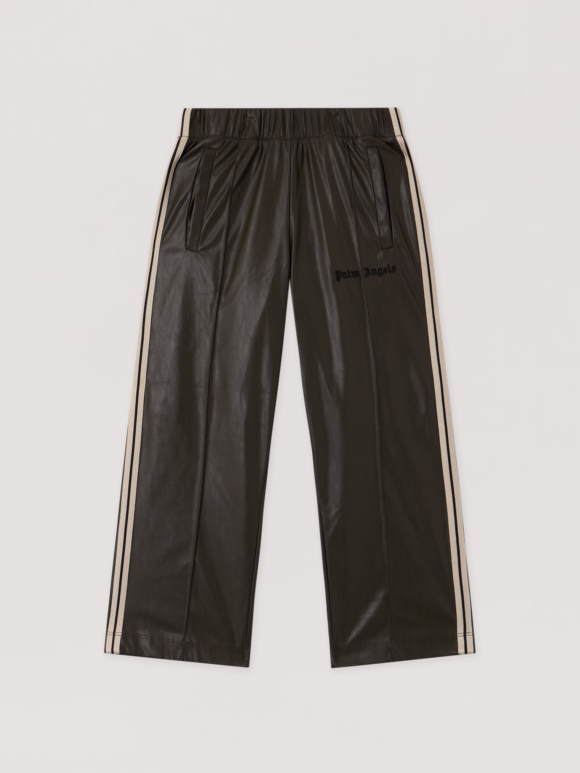 Coated track pants featuring a loose fit and signature side stripes, embodying streetwise coolness with a refined edge.