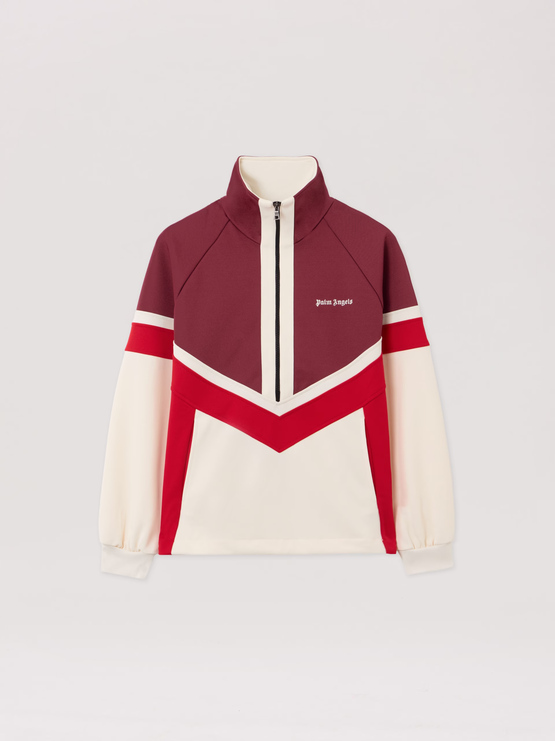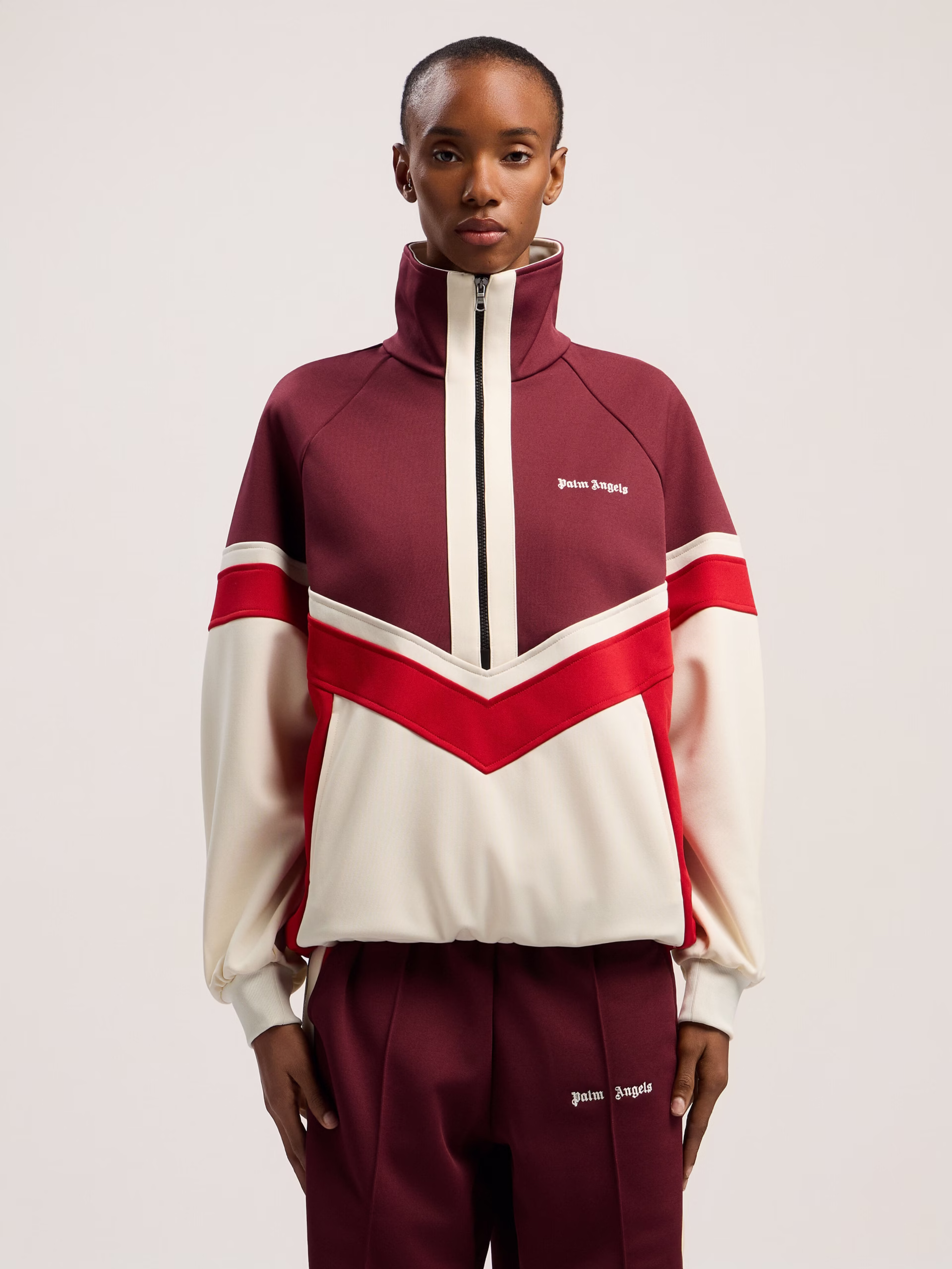 Dynamic colorblock anorak track jacket in a structured silhouette, featuring a high neck and signature Palm Angels logo embroid