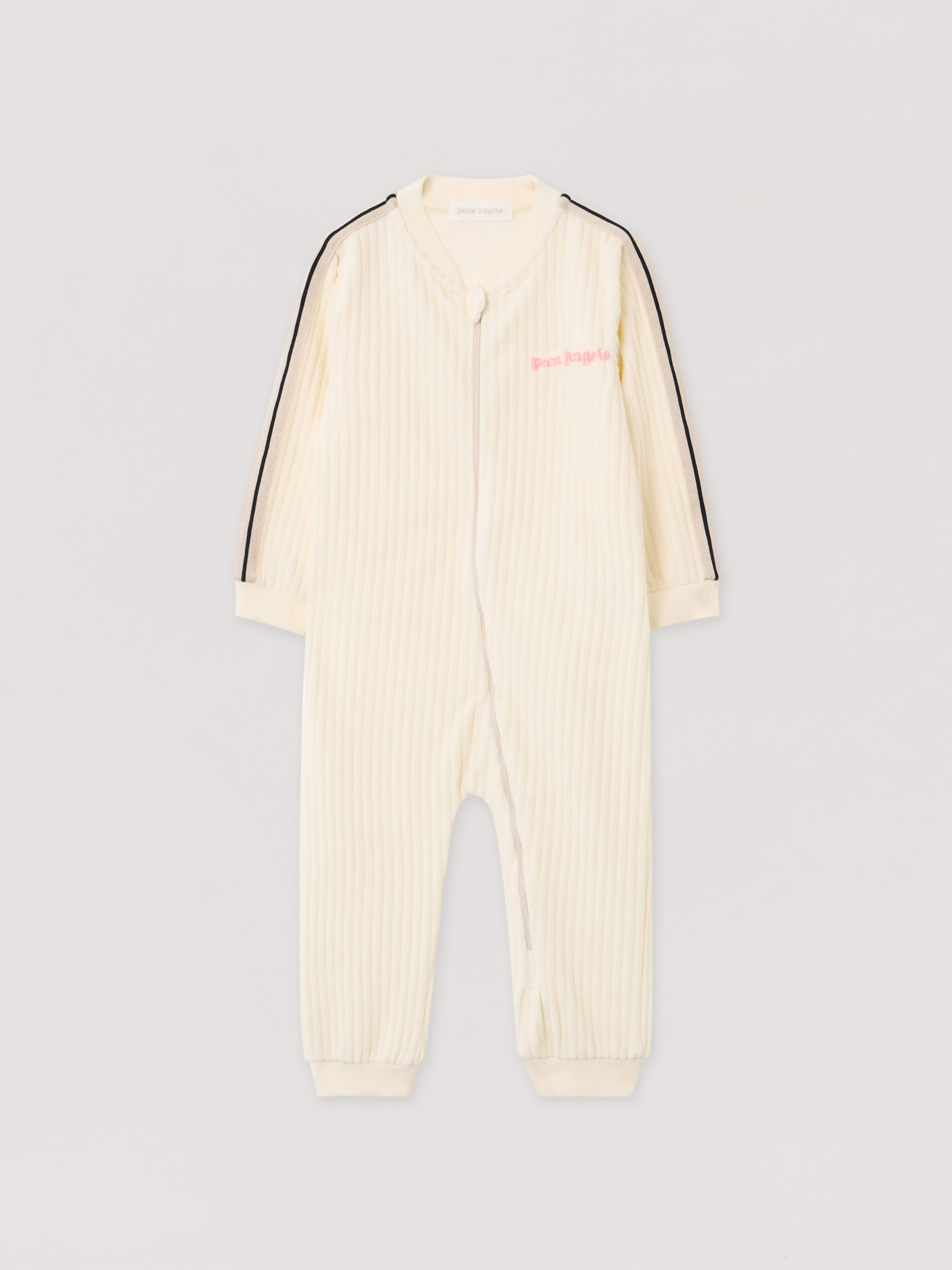 Chunky corduroy track jumpsuit designed with a sleek zip-front closure and a relaxed fit, perfect for contemporary streetwear e