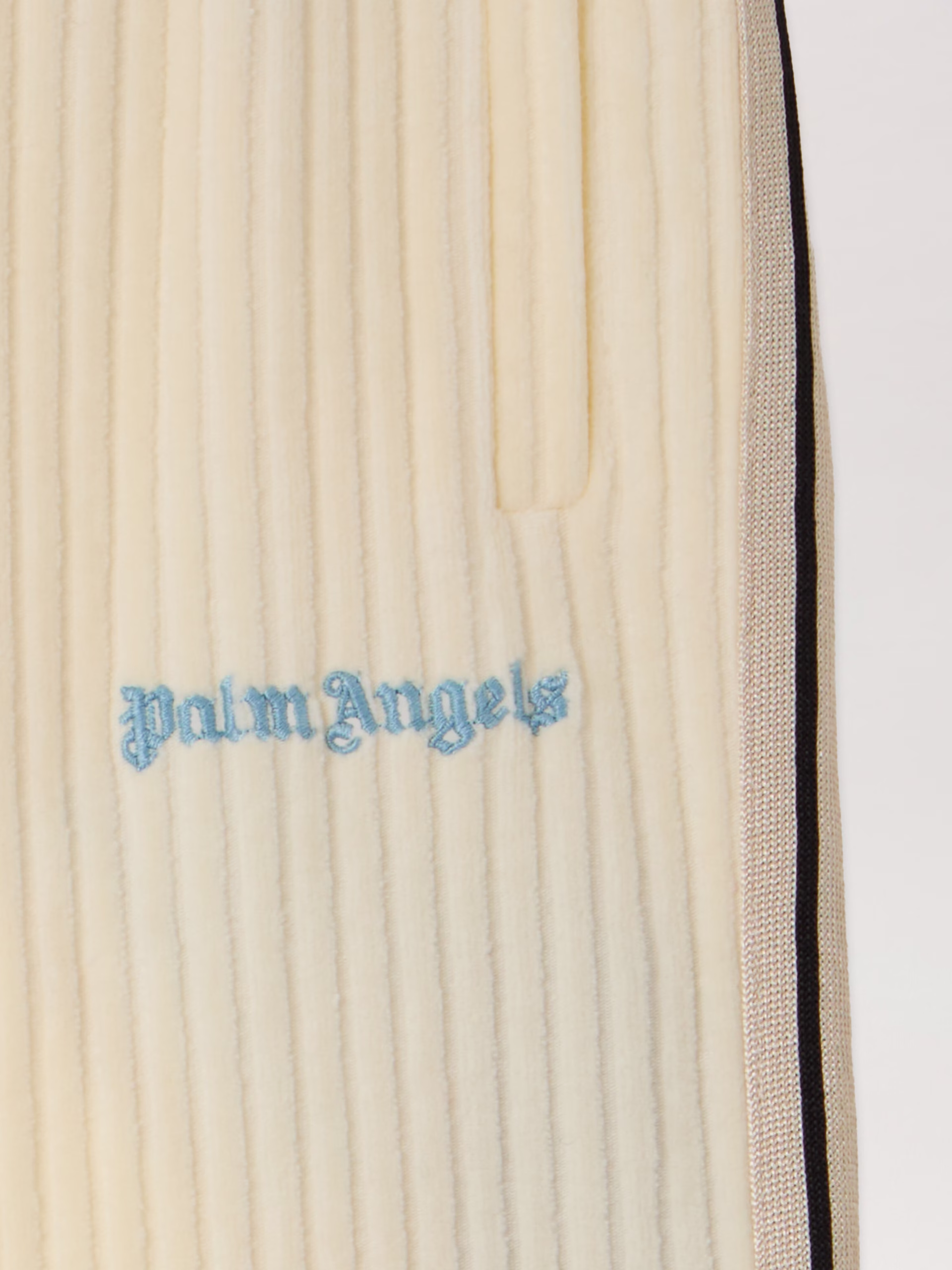 Elevate your streetwear ensemble with these corduroy track pants, showcasing a ribbed texture and side stripe detail.