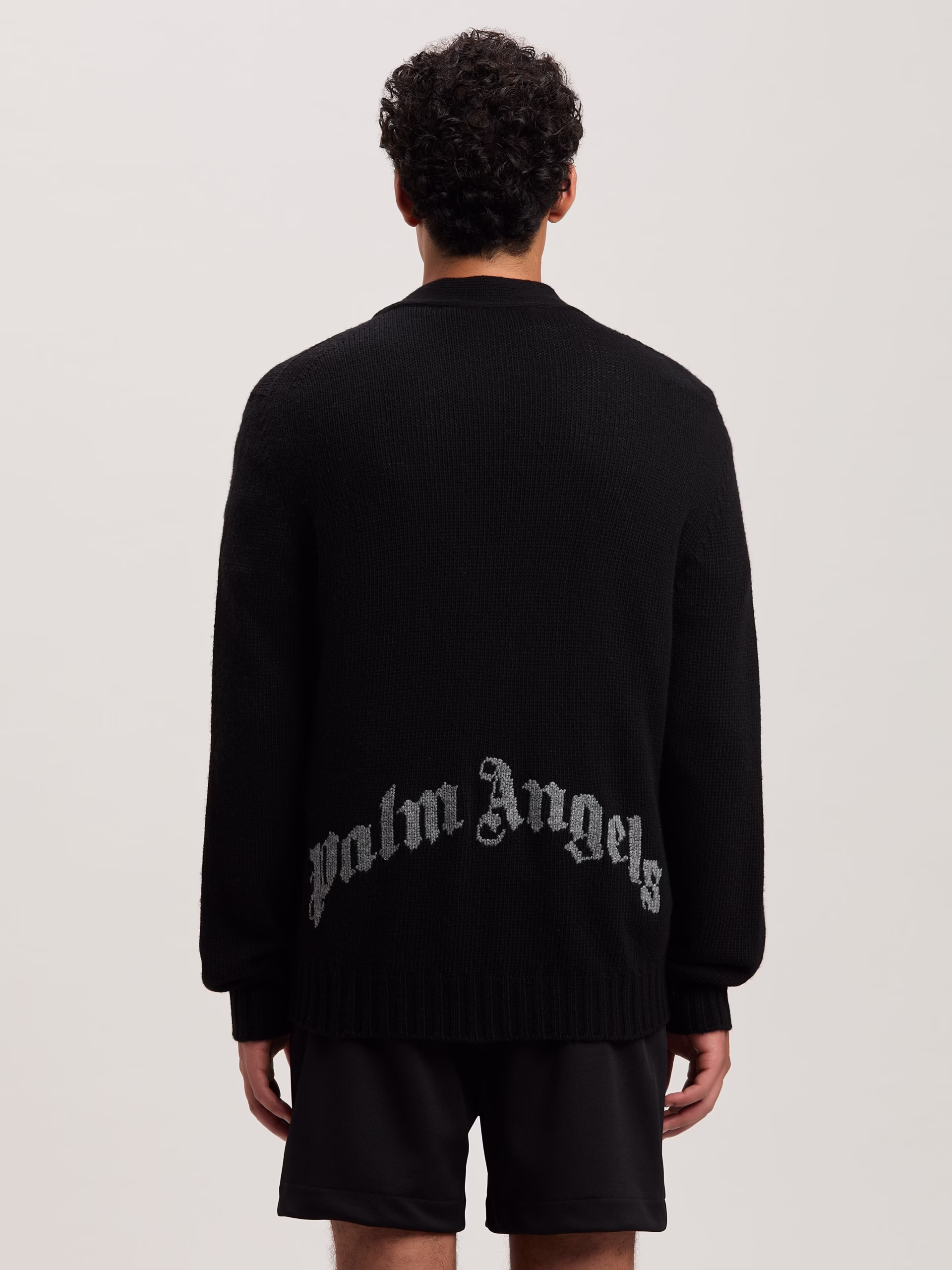 CURVED LOGO CARDIGAN BLACK – GREY MELANG