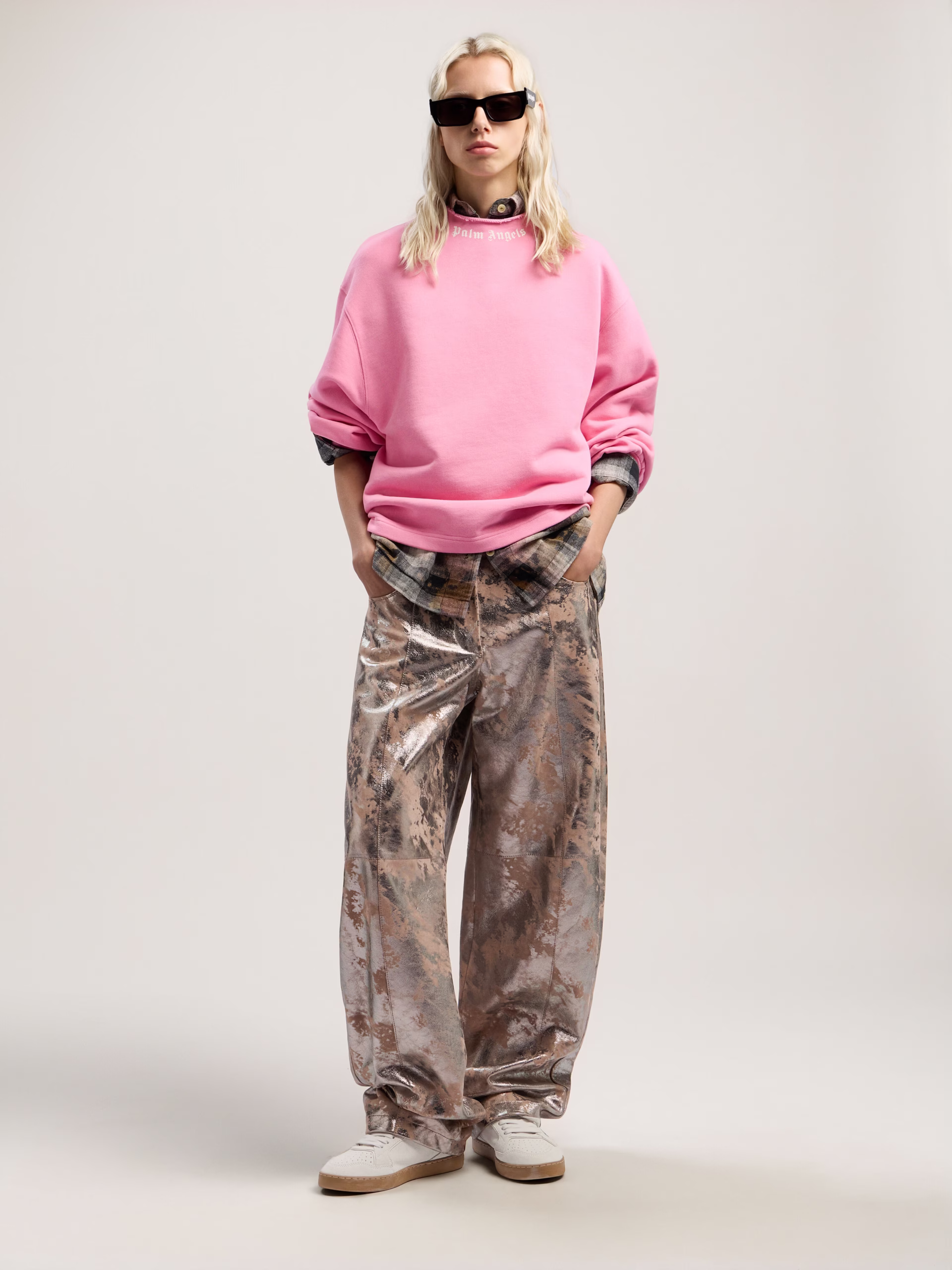 The Curved Logo Collar Balloon Sweatshirt combines streetwise coolness with an elevated silhouette, featuring a distinctive log