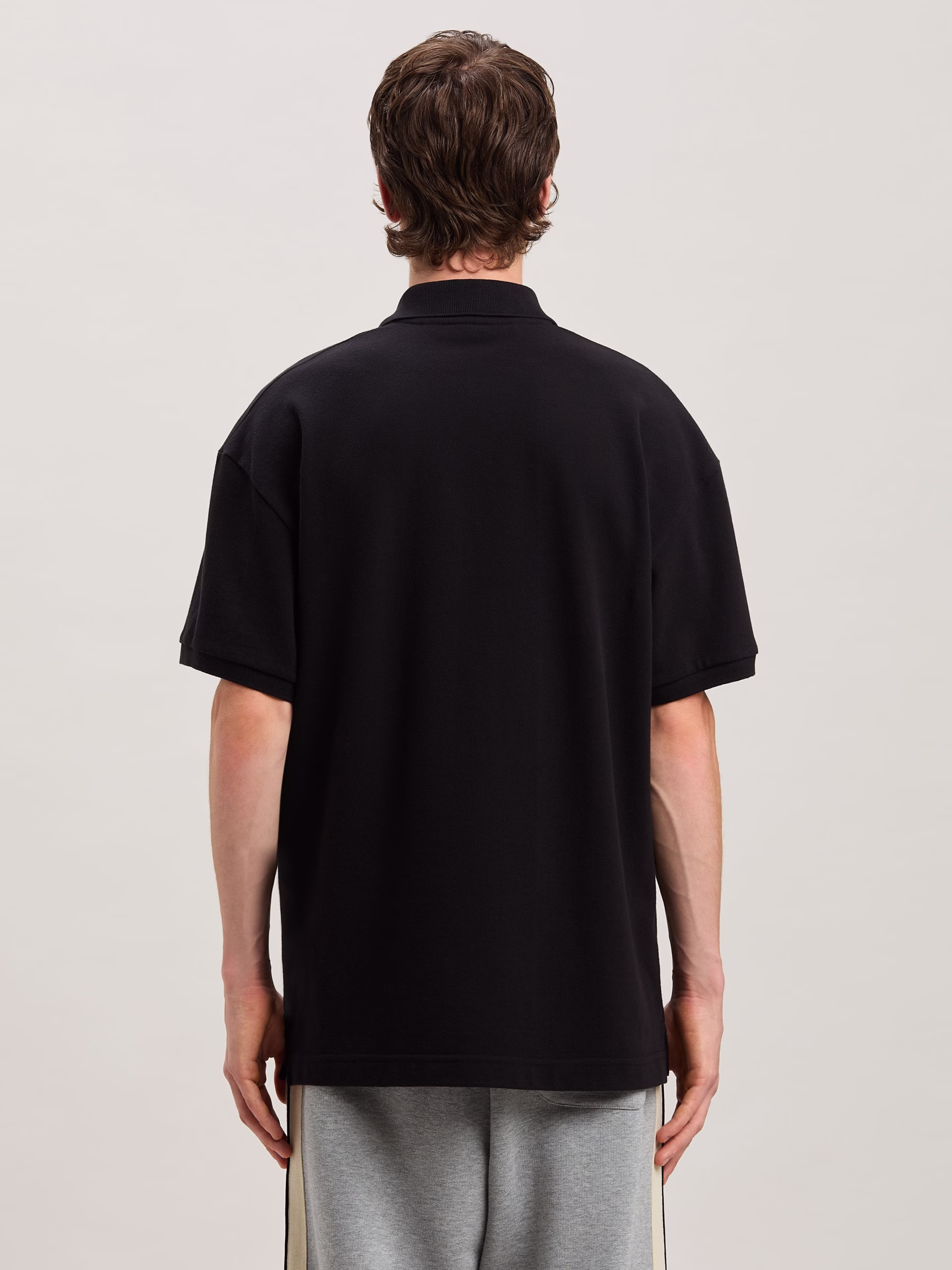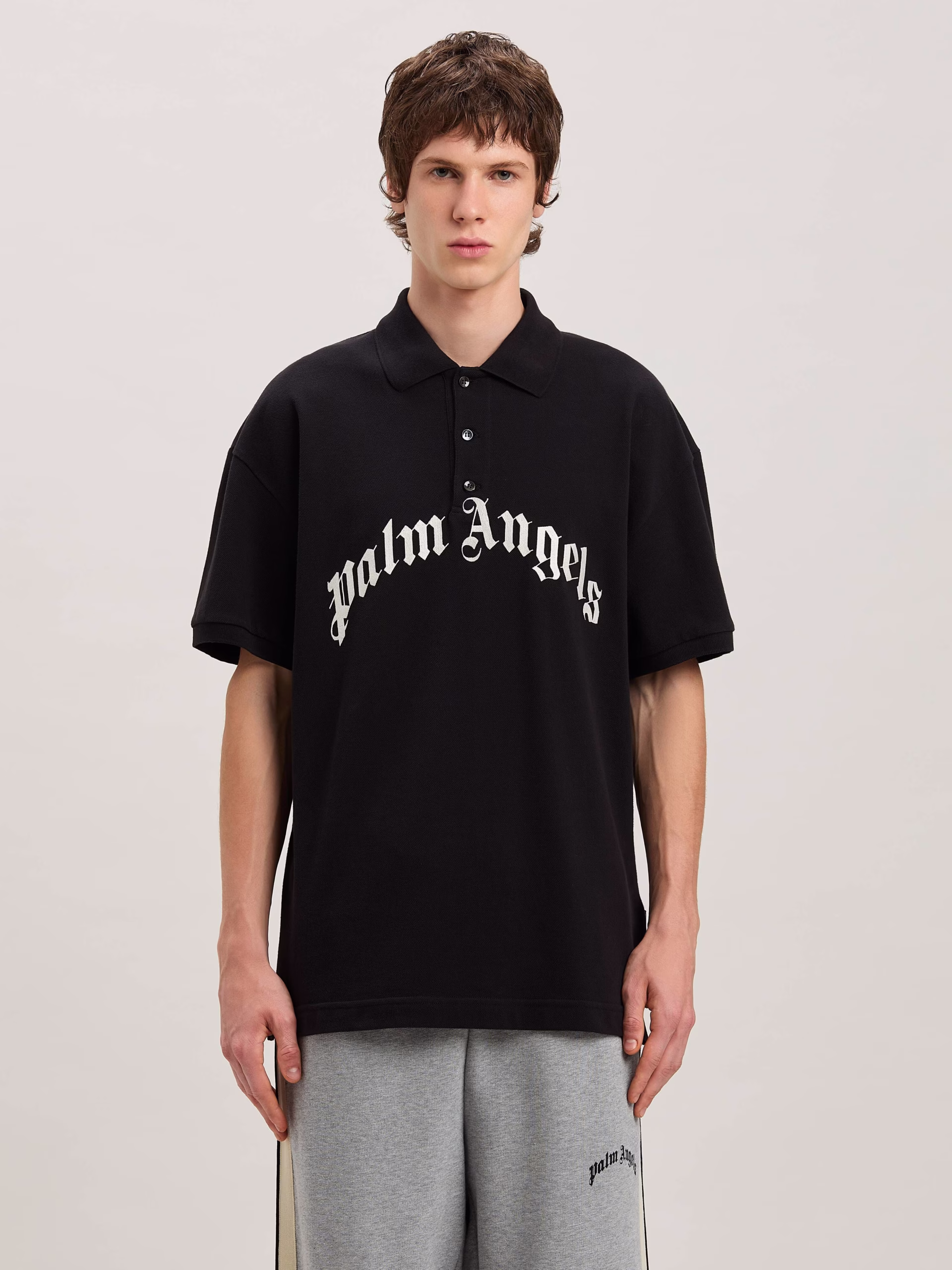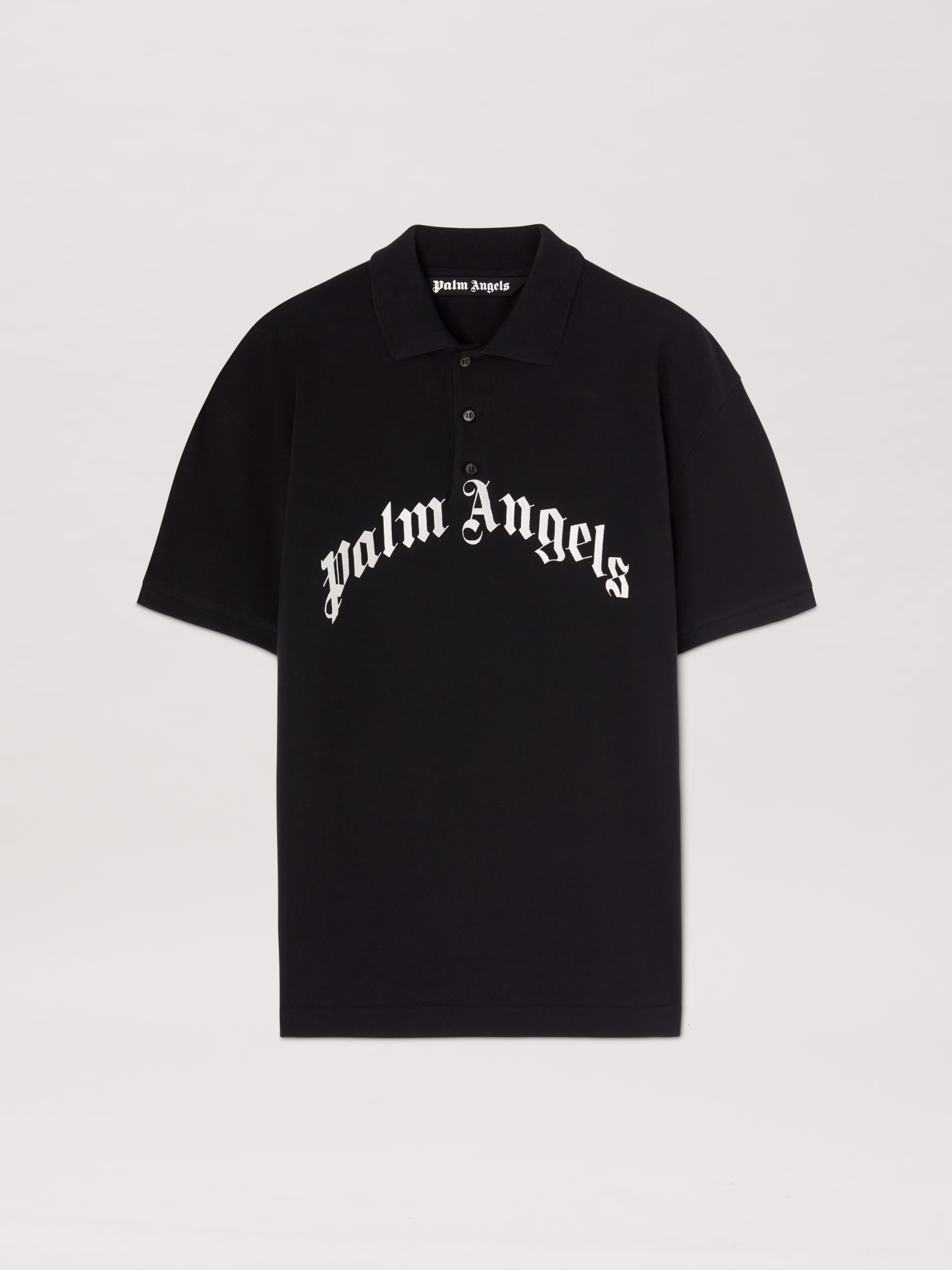 Logo mutations that turn a timeless icon into a new seasonal graphic. Men’s black polo shirt with Curved logo printed in embroider