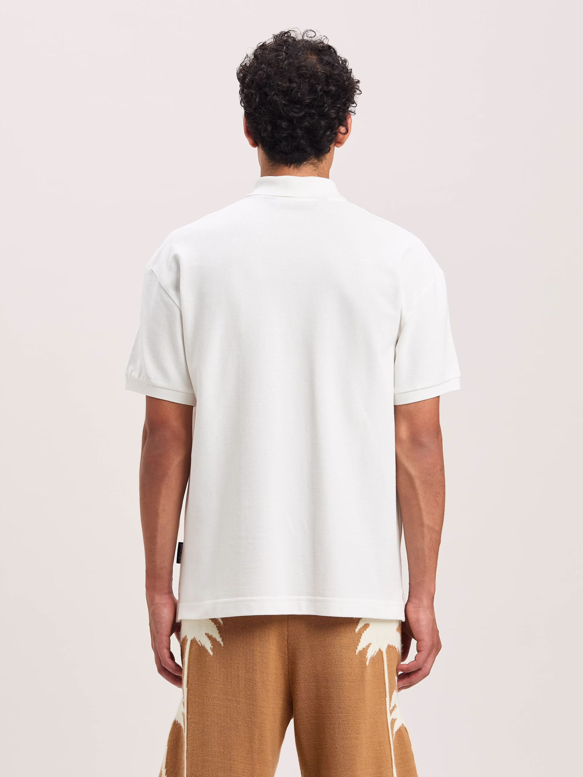 Logo mutations that turn a timeless icon into new seasonal graphic. Men’s white polo shirt with Curved logo embroidered in black o