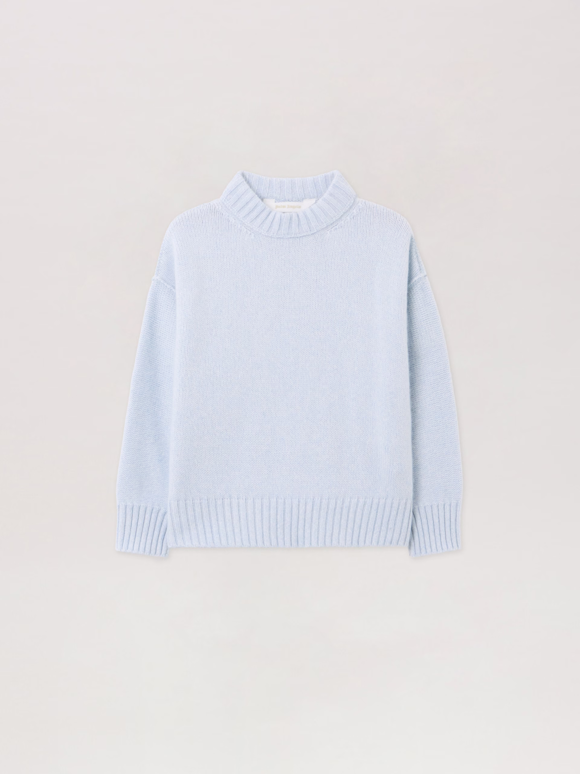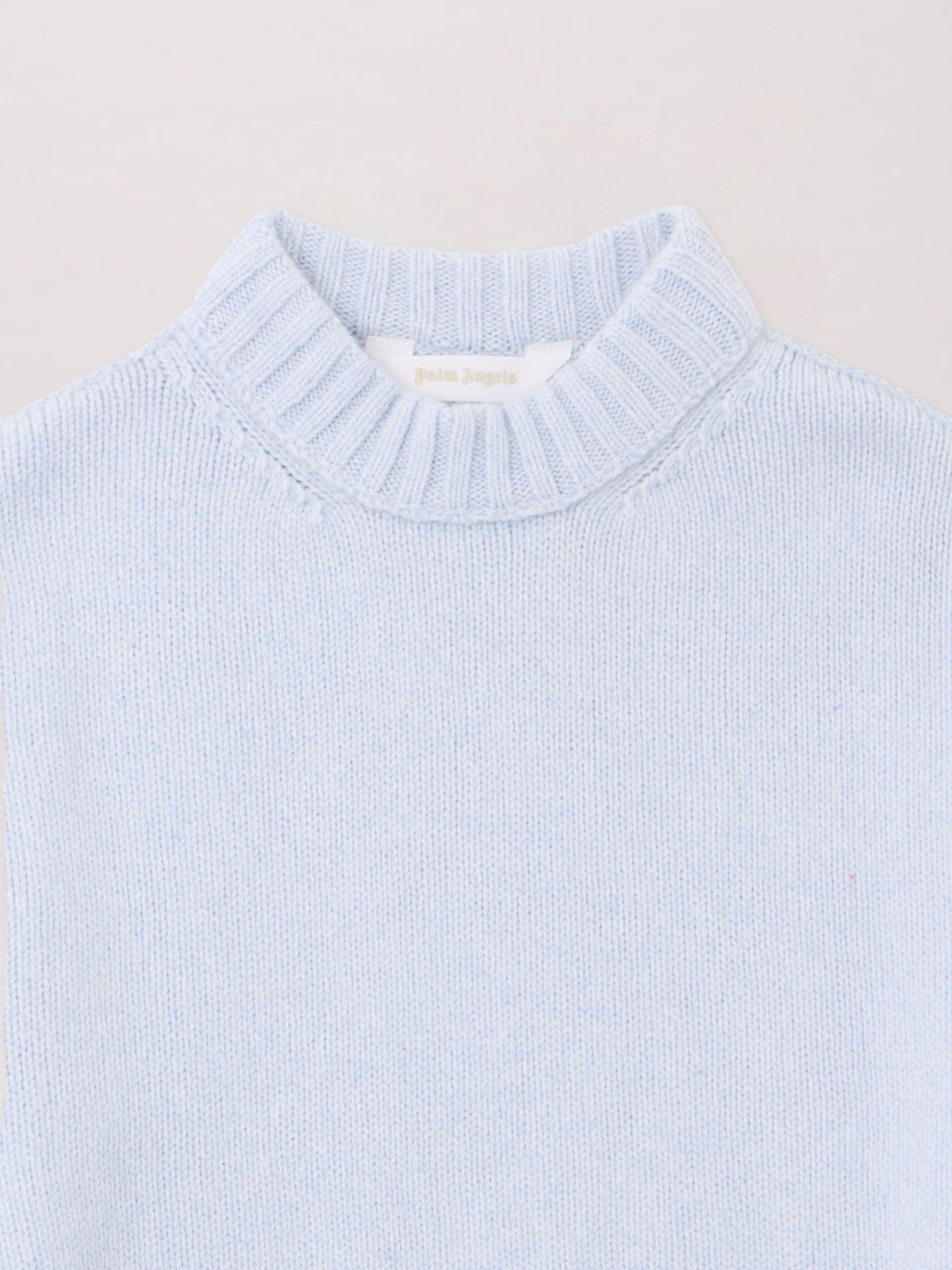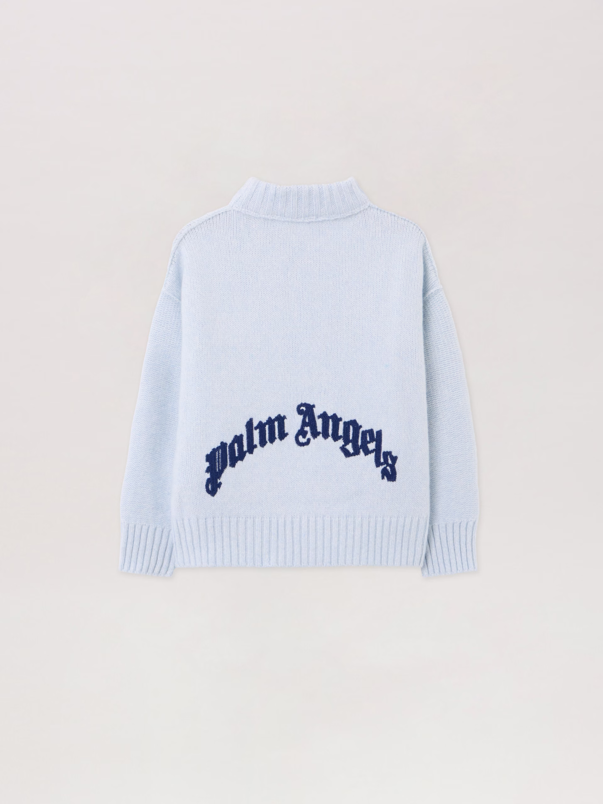 Soft knit crewneck sweater featuring a bold curved logo at the back, offering a refined edge to classic streetwear.