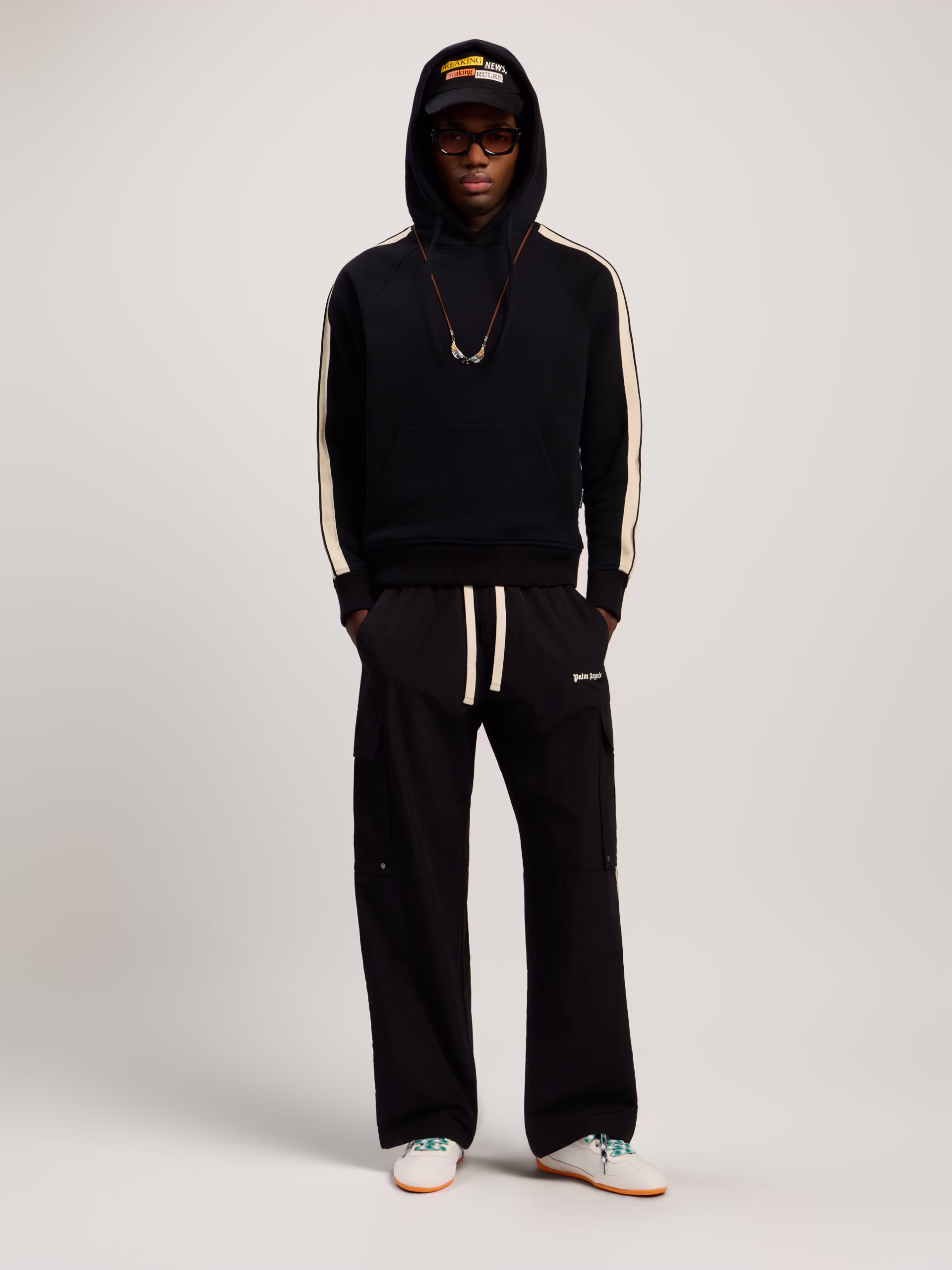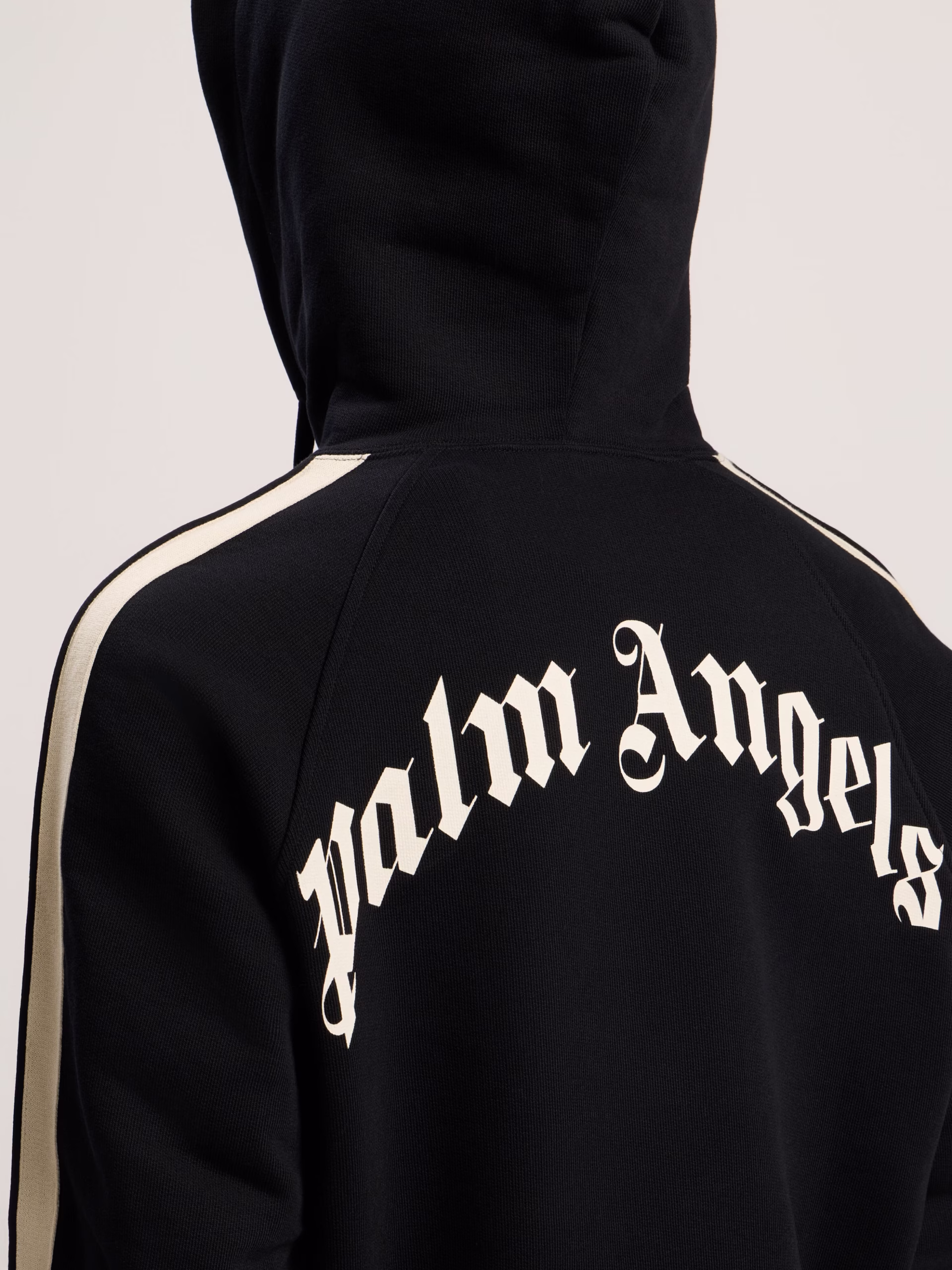 Crafted from premium fabric, the Curved Logo Track Hoodie features a drawstring hood and a bold logo on the back. This piece ca