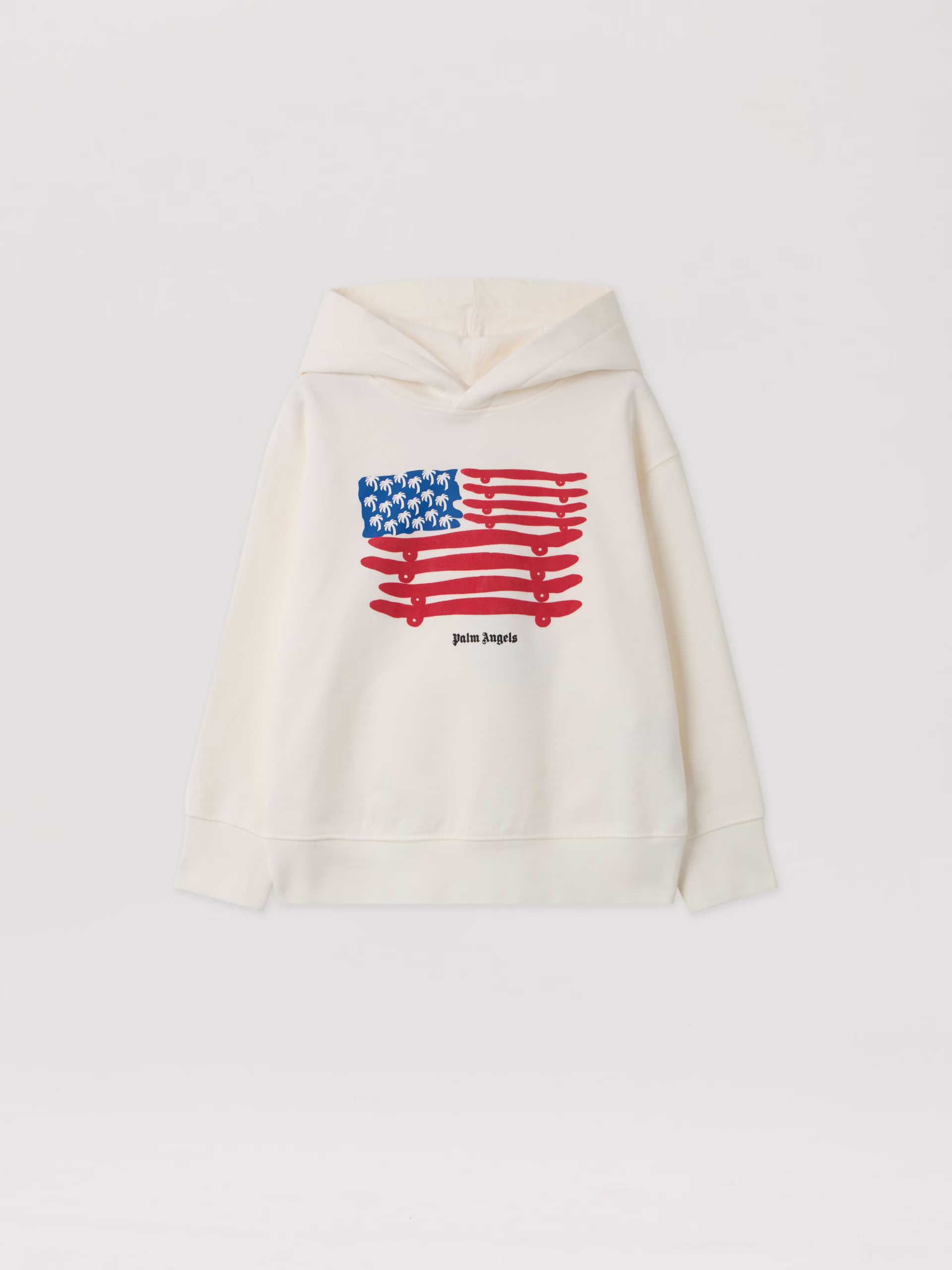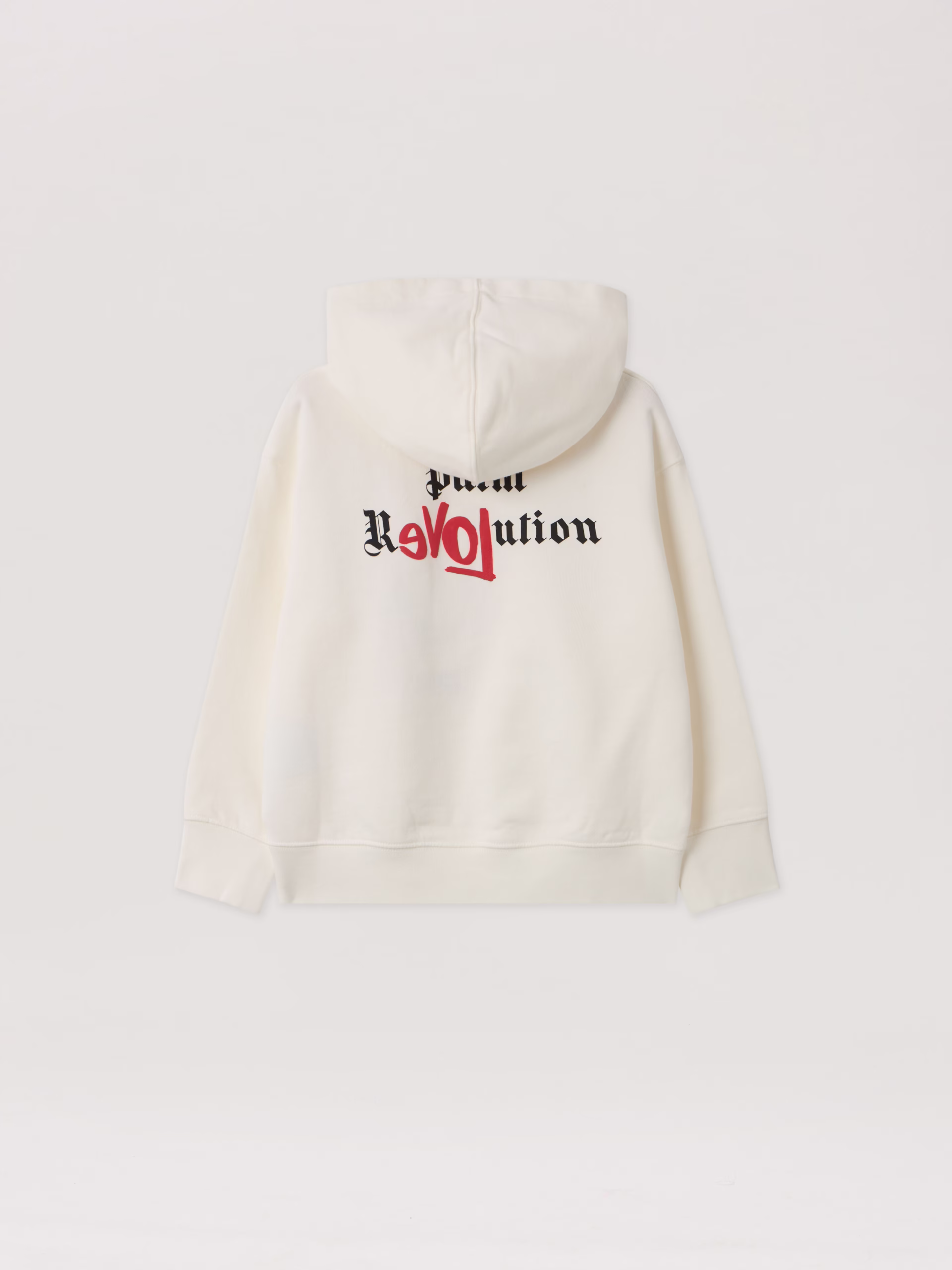 Classic hoodie featuring a bold flag graphic and revolution text motif. Crafted for a streetwise aesthetic with a relaxed fit.<
