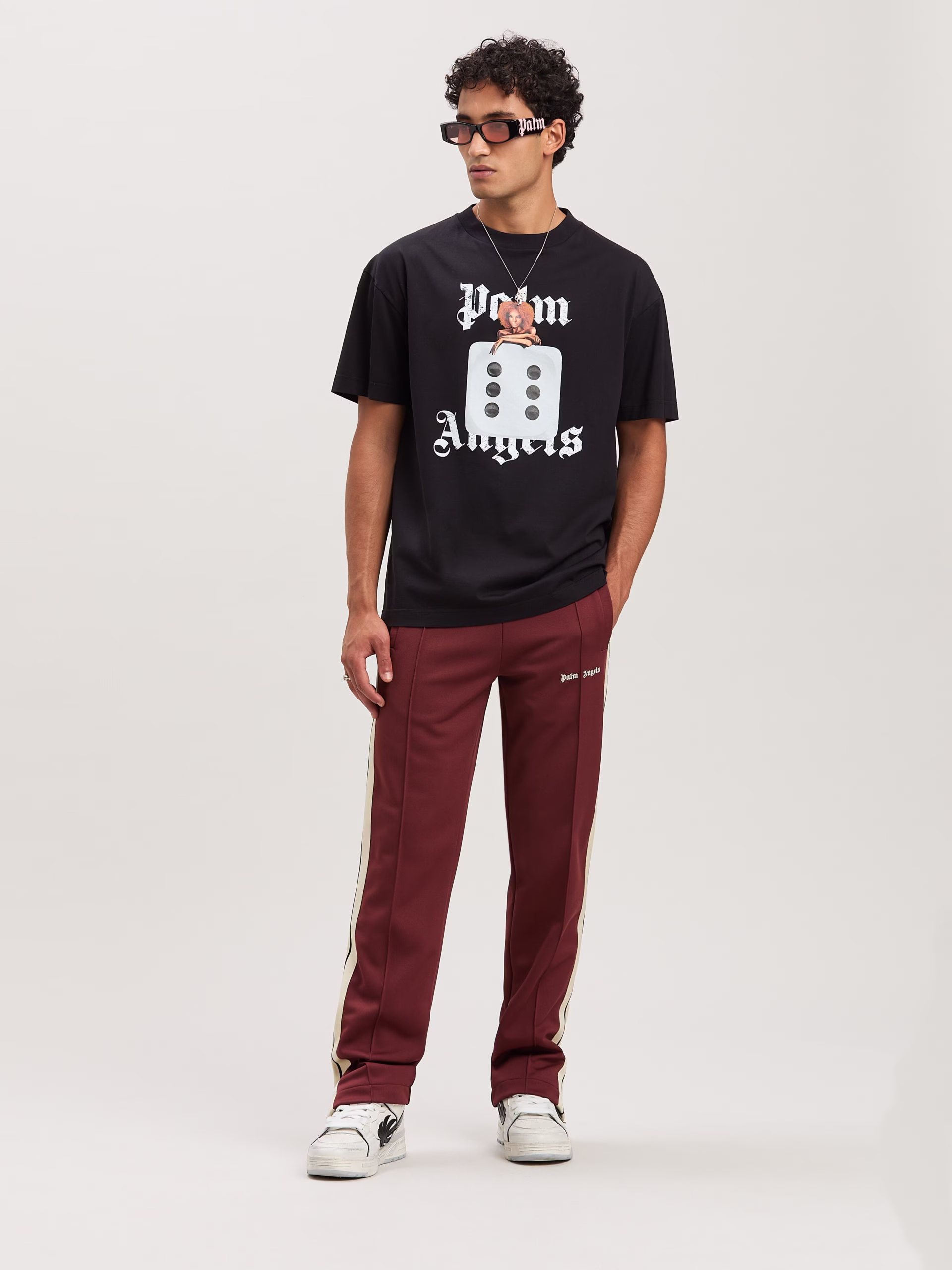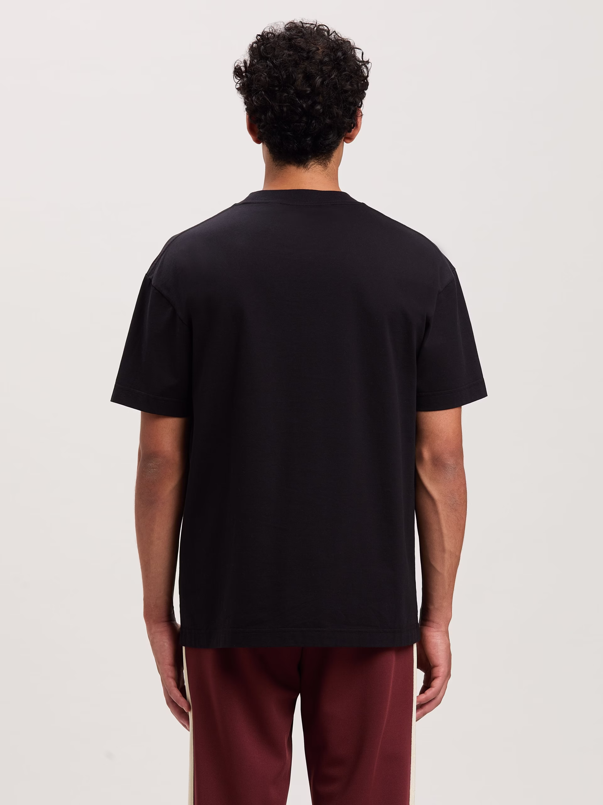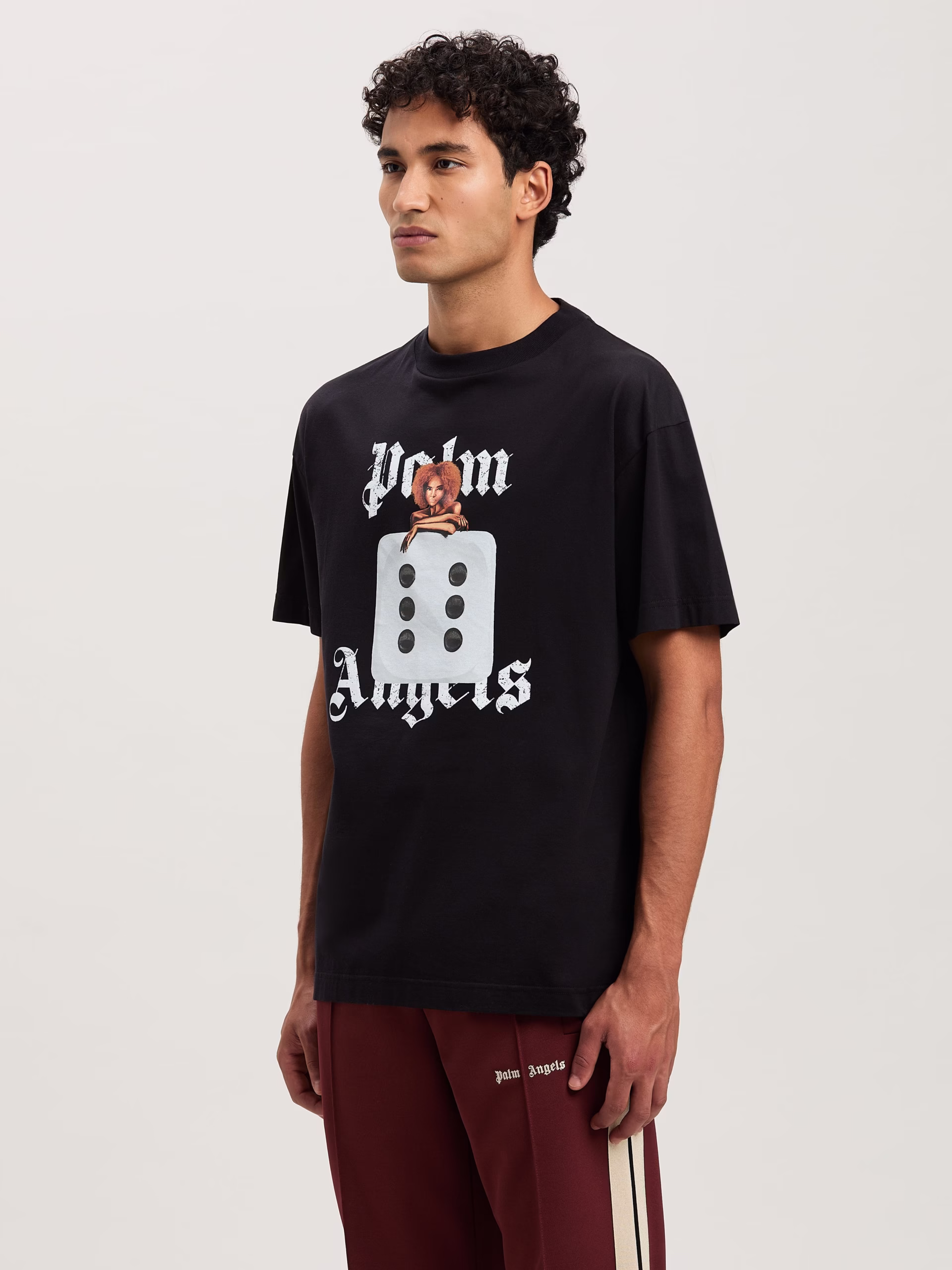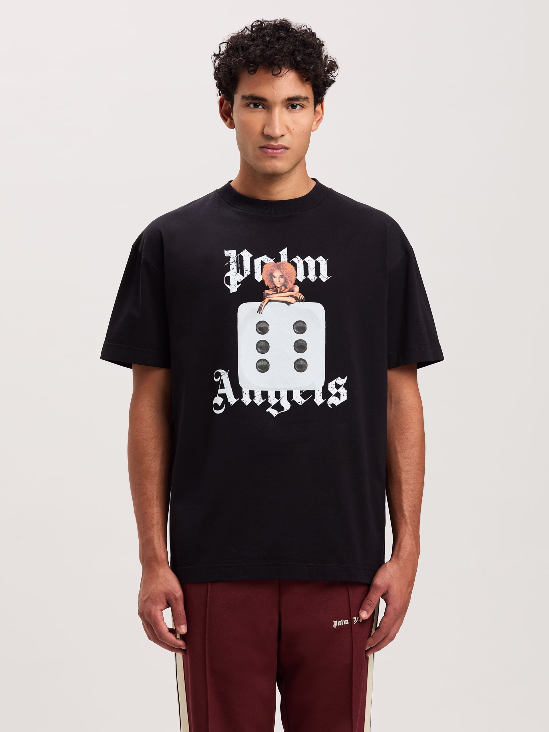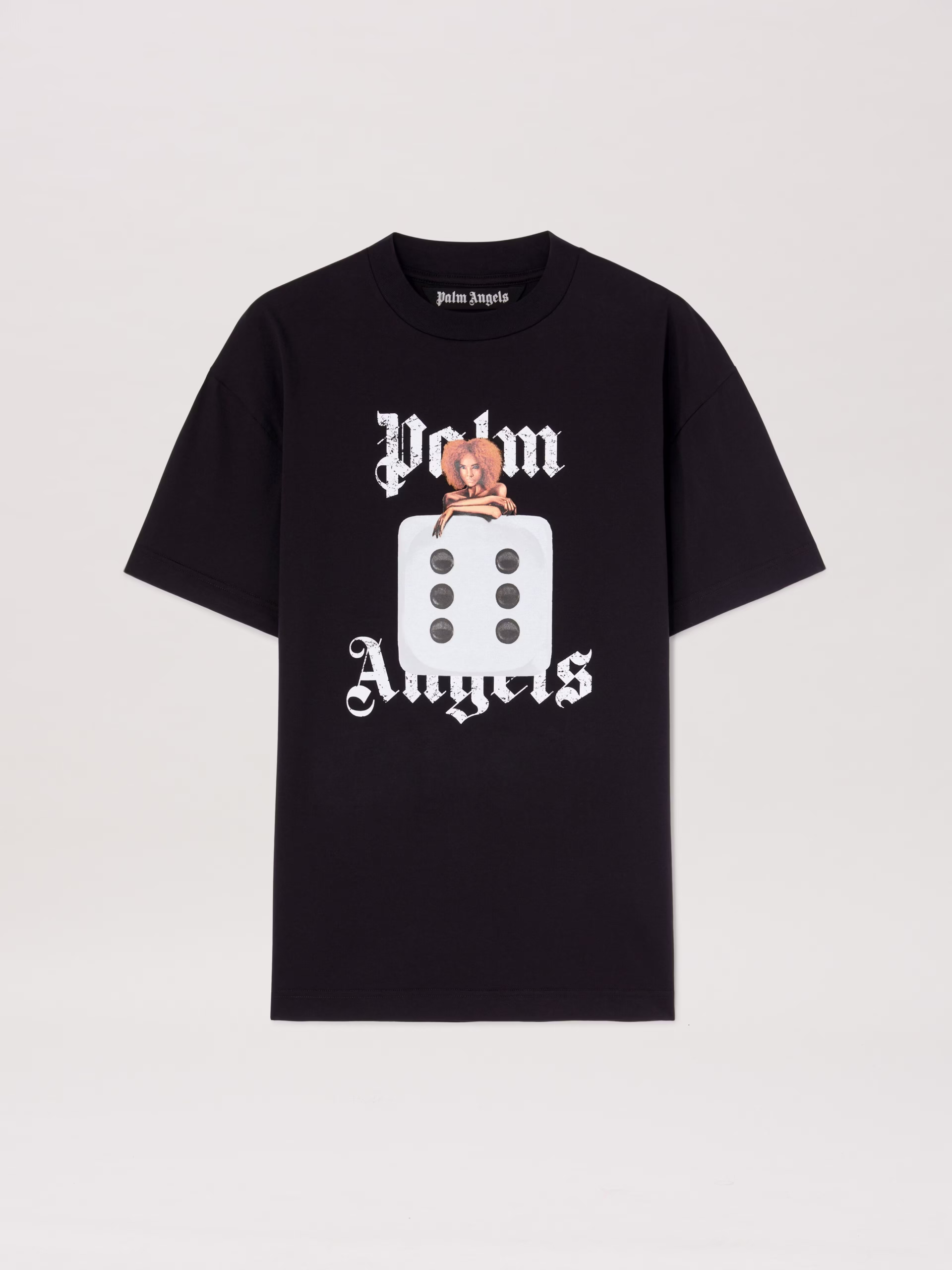 A unique original print inspired by vintage pin-ups, hybridized with elements from Palm Angels’ world. Men’s black short-sleeved T
