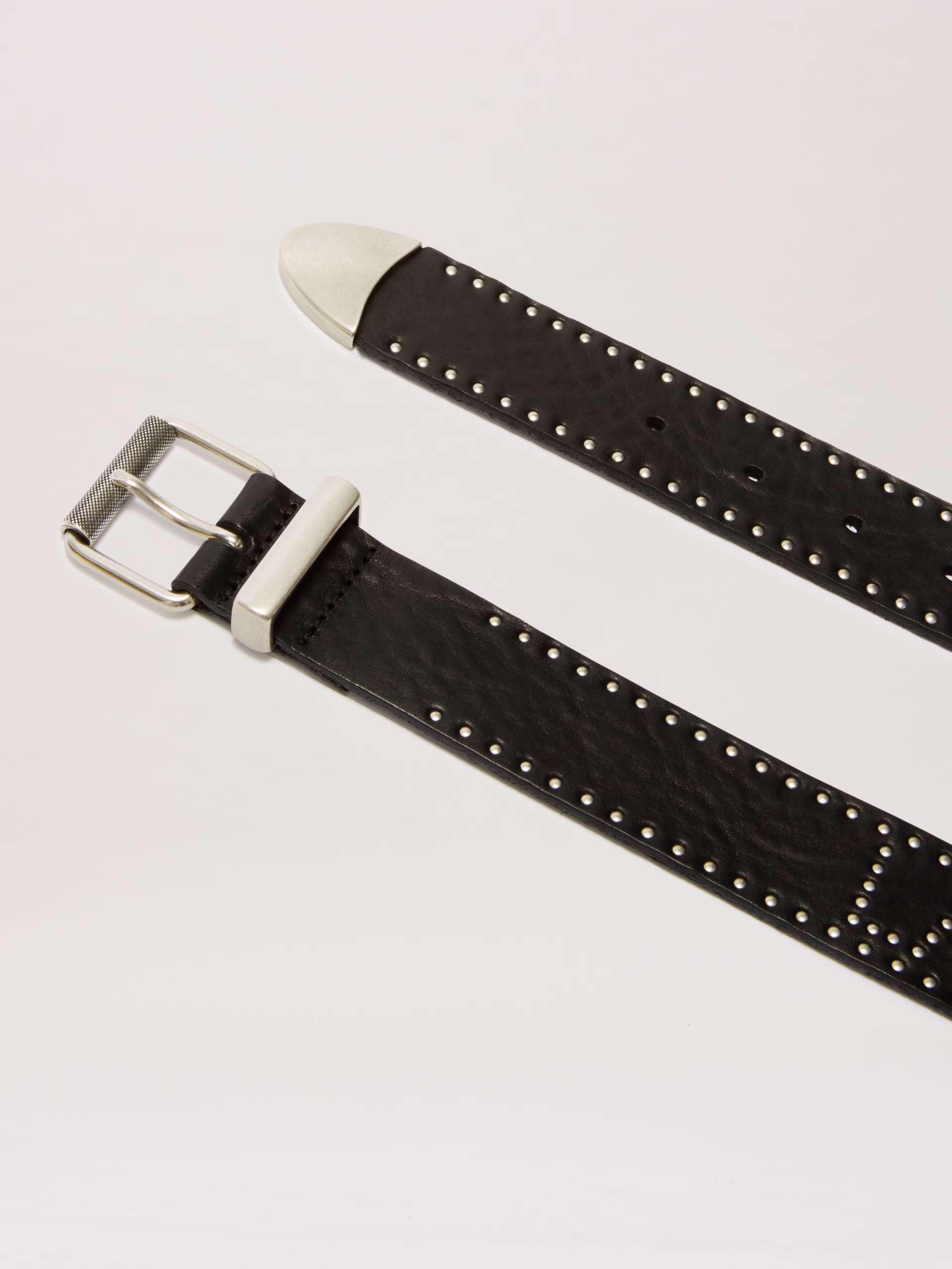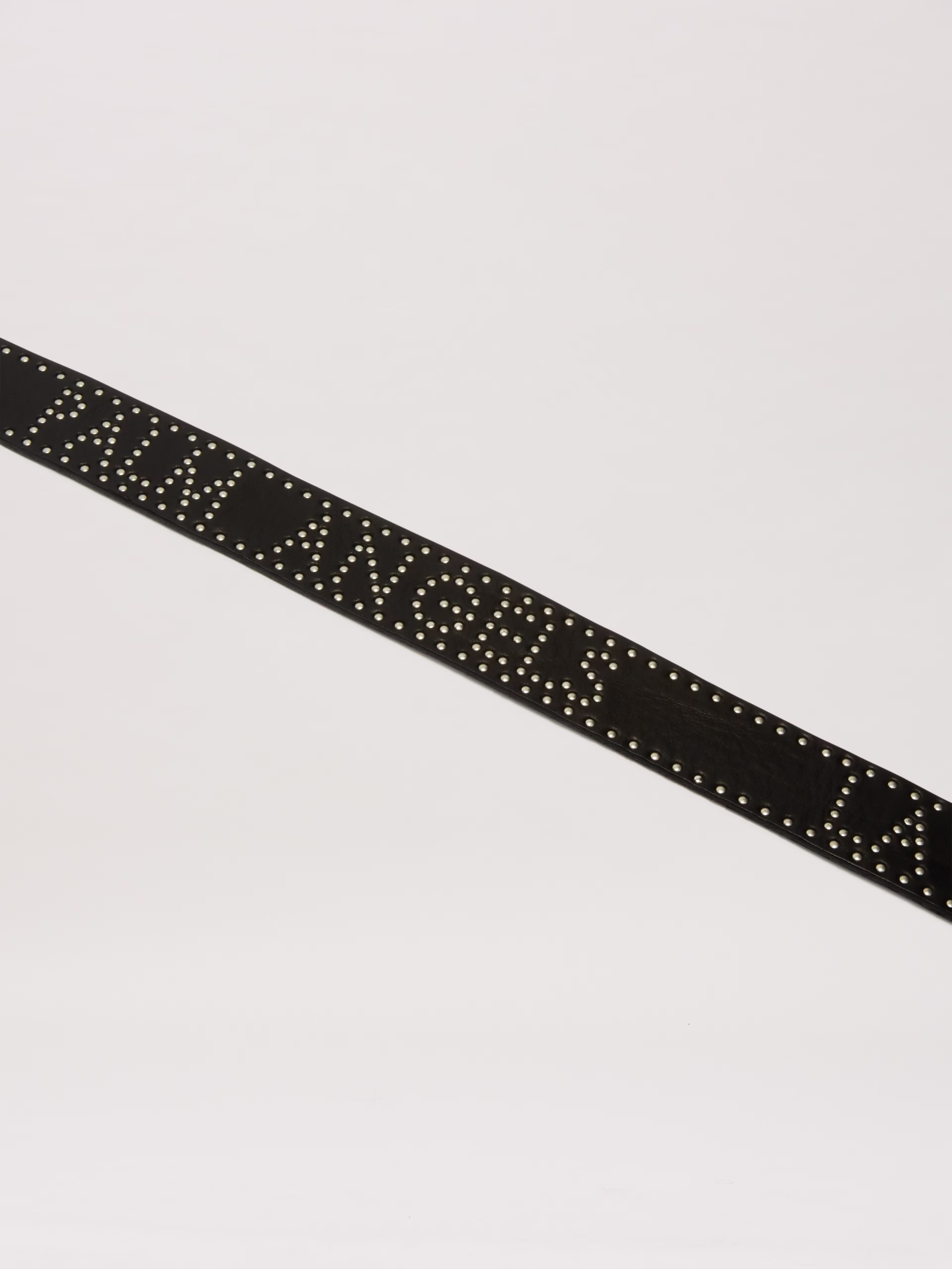 Experience the logo in a multidimensional twist. Men’s black leather belt with Palm Angels logo written with small silver studs an