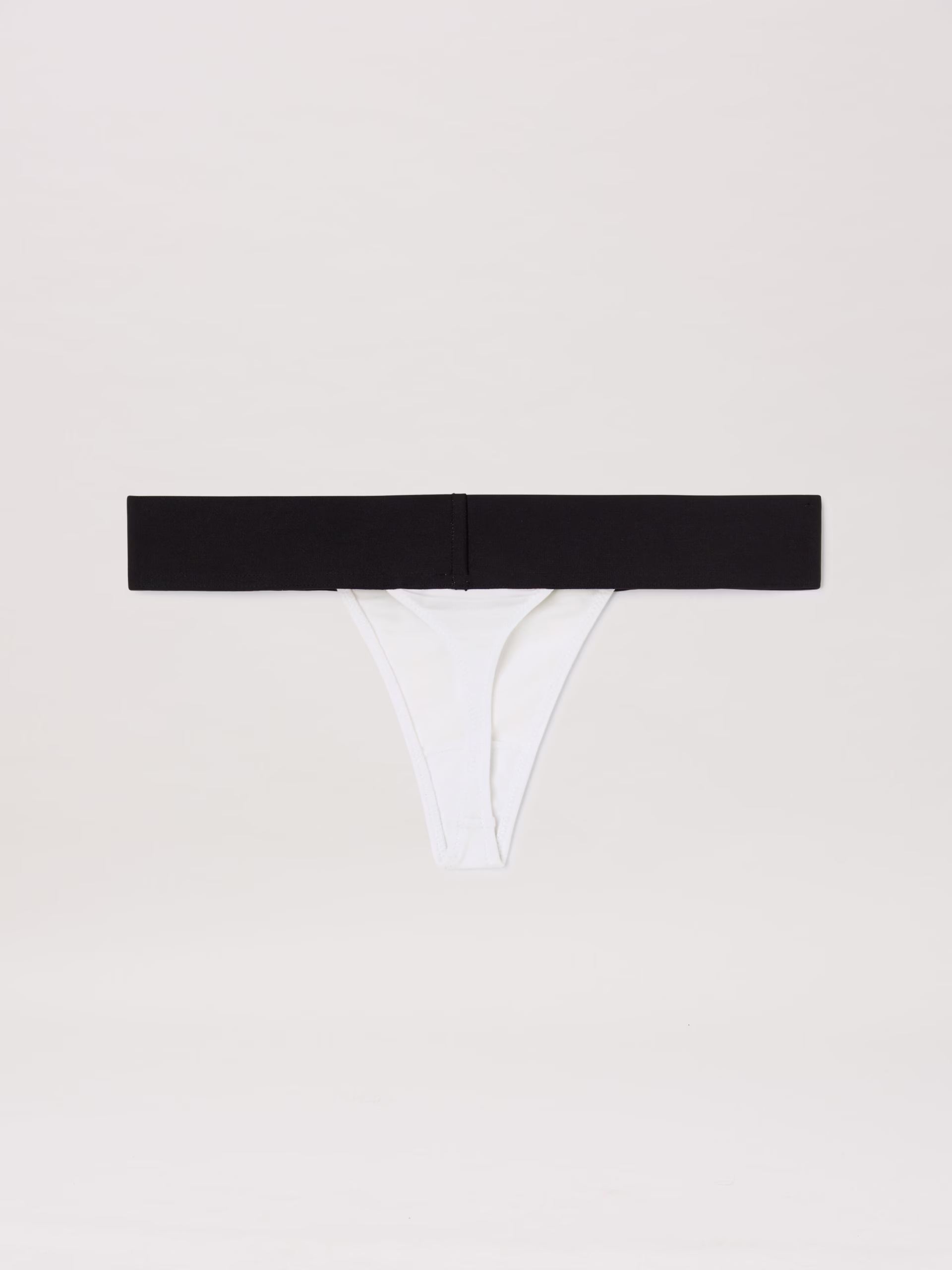 Essential and highly recognizable. Women’s white thong with black elastic band and white Palm Angels logo on front.
