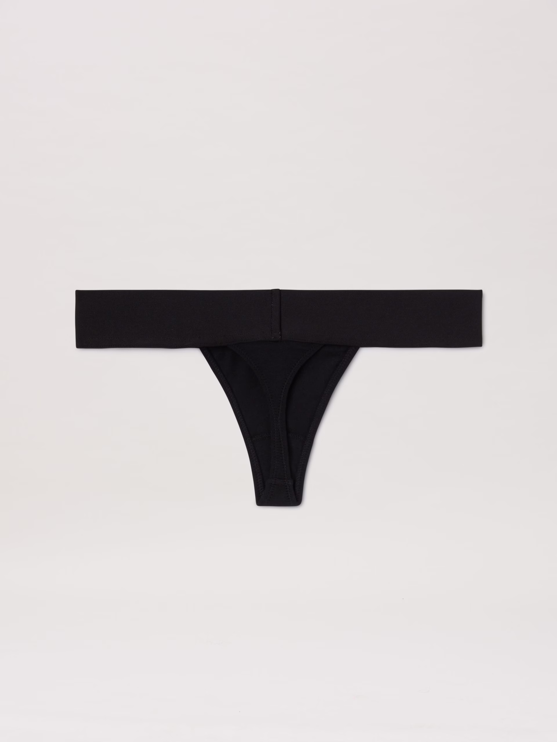 Essential and highly recognizable. Women’s black thong with black elastic band and white Palm Angels logo on front.