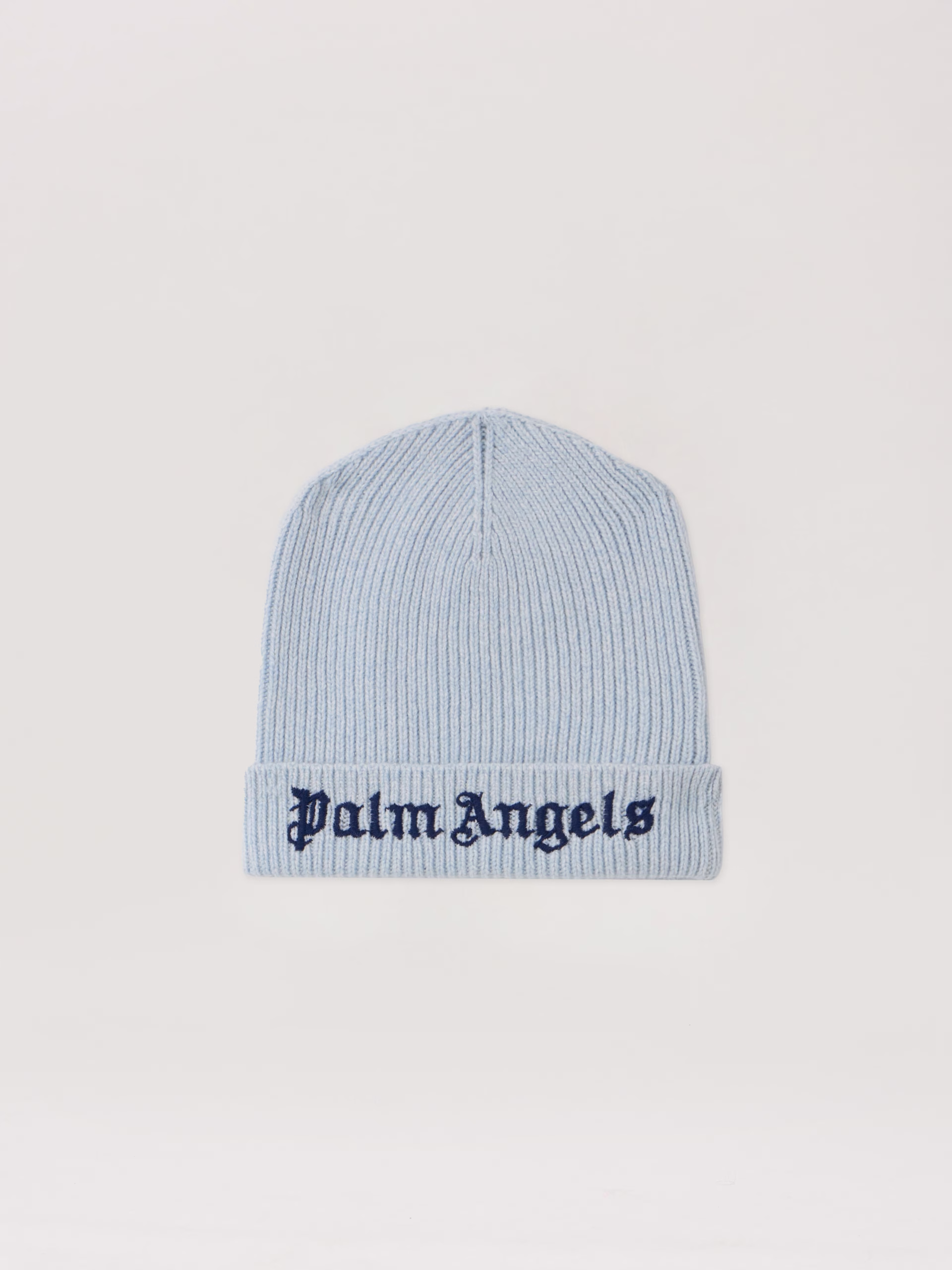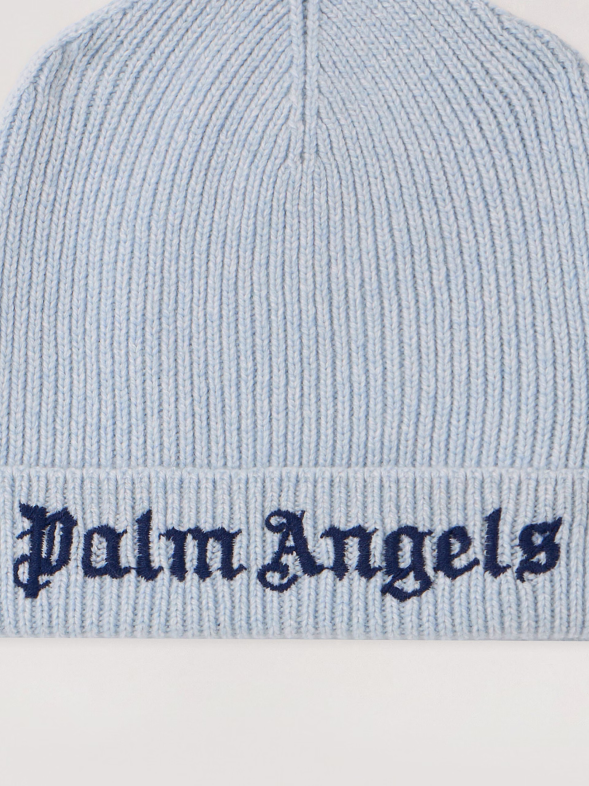 A ribbed knit beanie featuring a prominent logo embroidery and a classic cuffed design for a refined streetwear look.