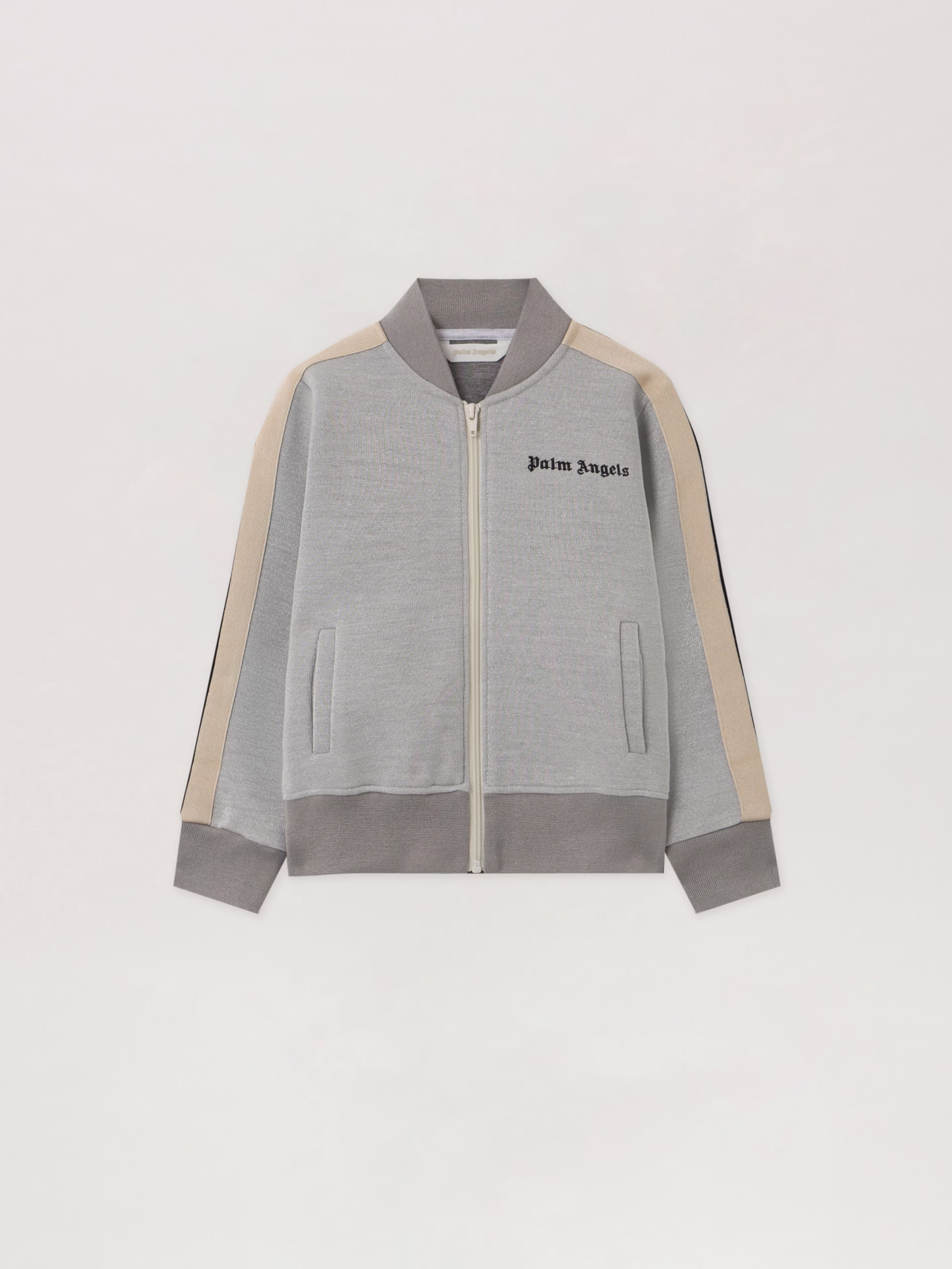 Refined track jacket in lurex fabric with sleek side stripes and a classic zip front.