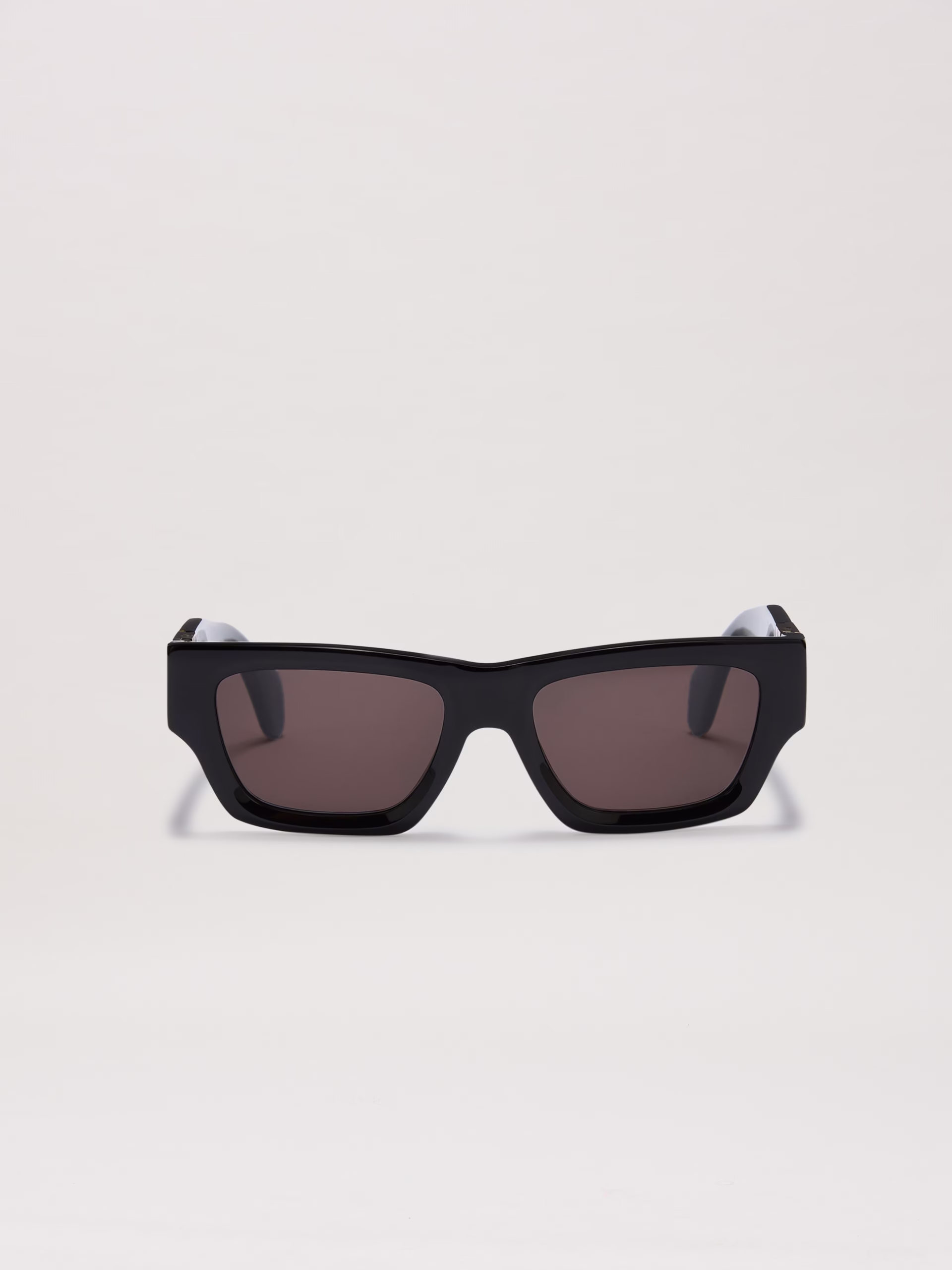 A timeless, subtly reproportioned shape with metal side effects. Black acetate glasses with narrow trapezoidal shape, dark grey le