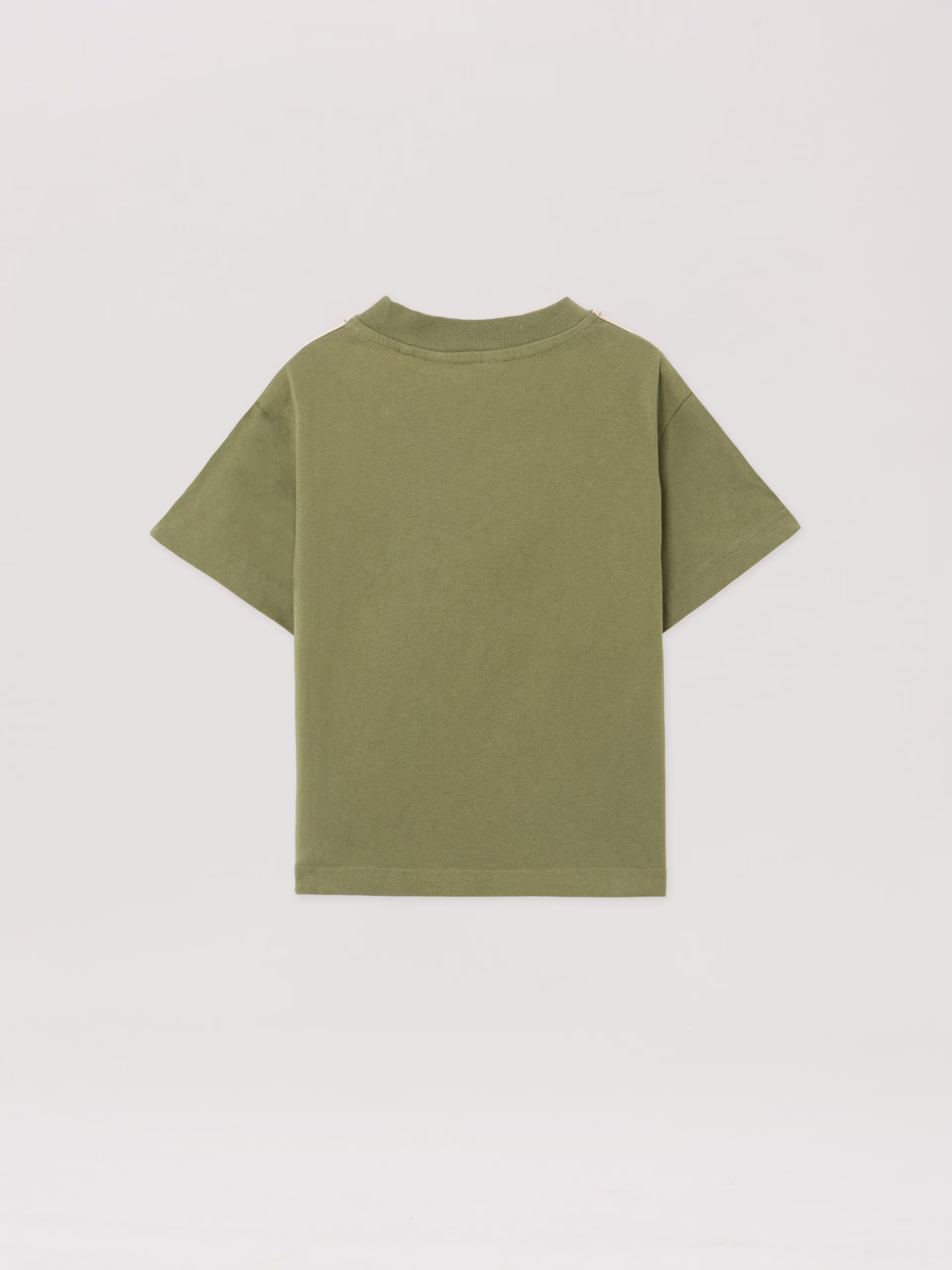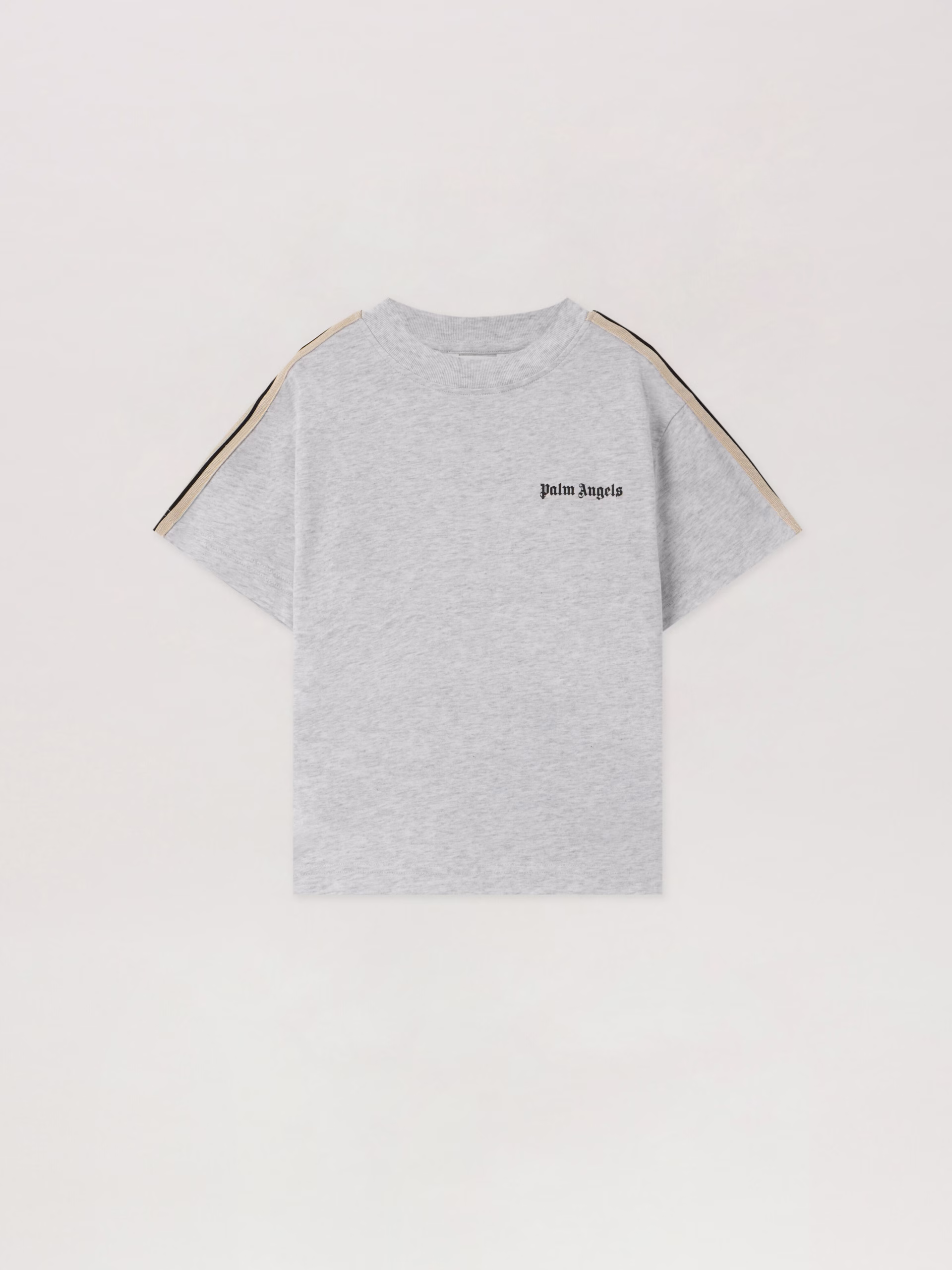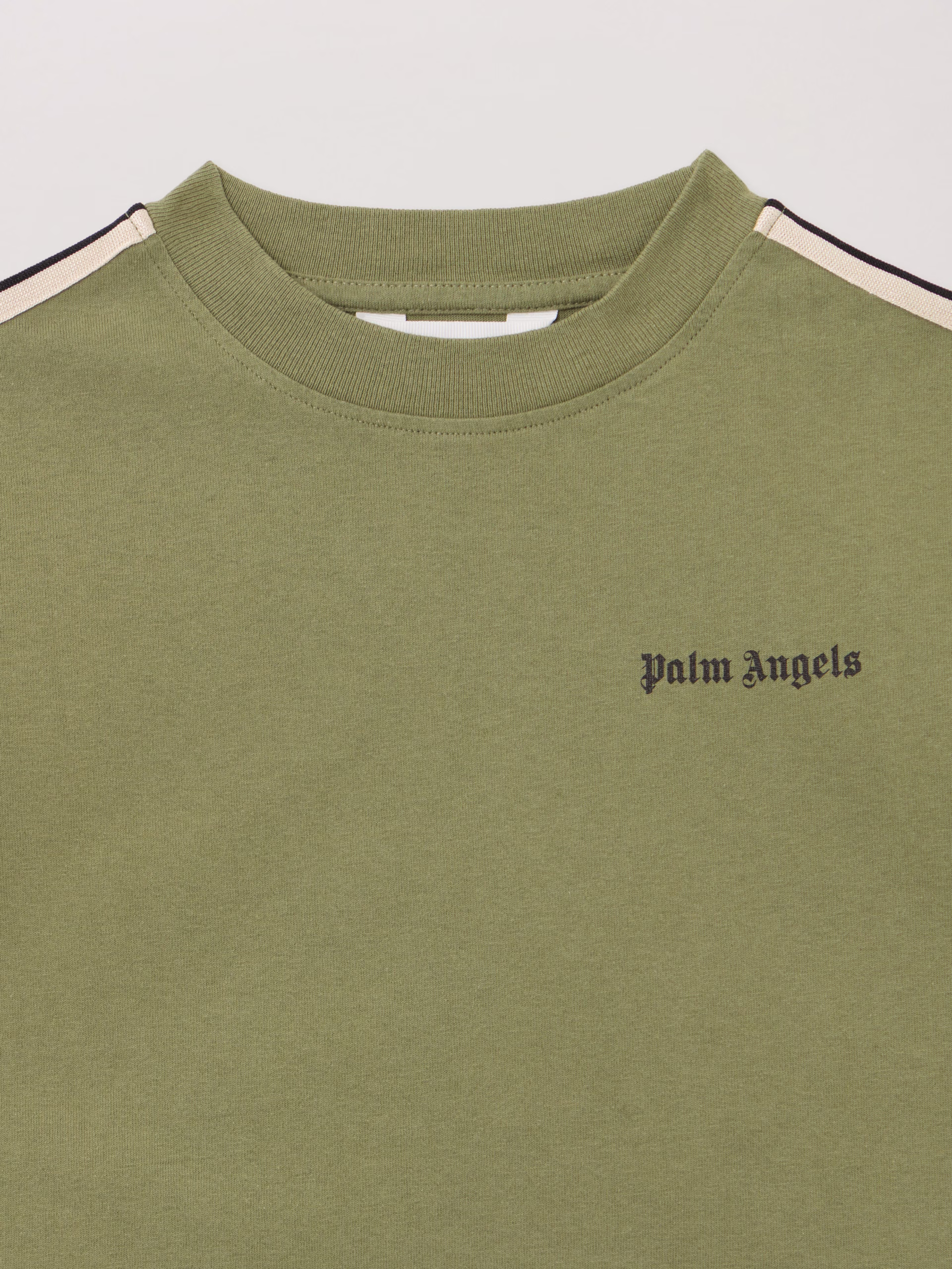 Structured crewneck T-shirt in soft fabric featuring signature tape trim along shoulders and sleeves.