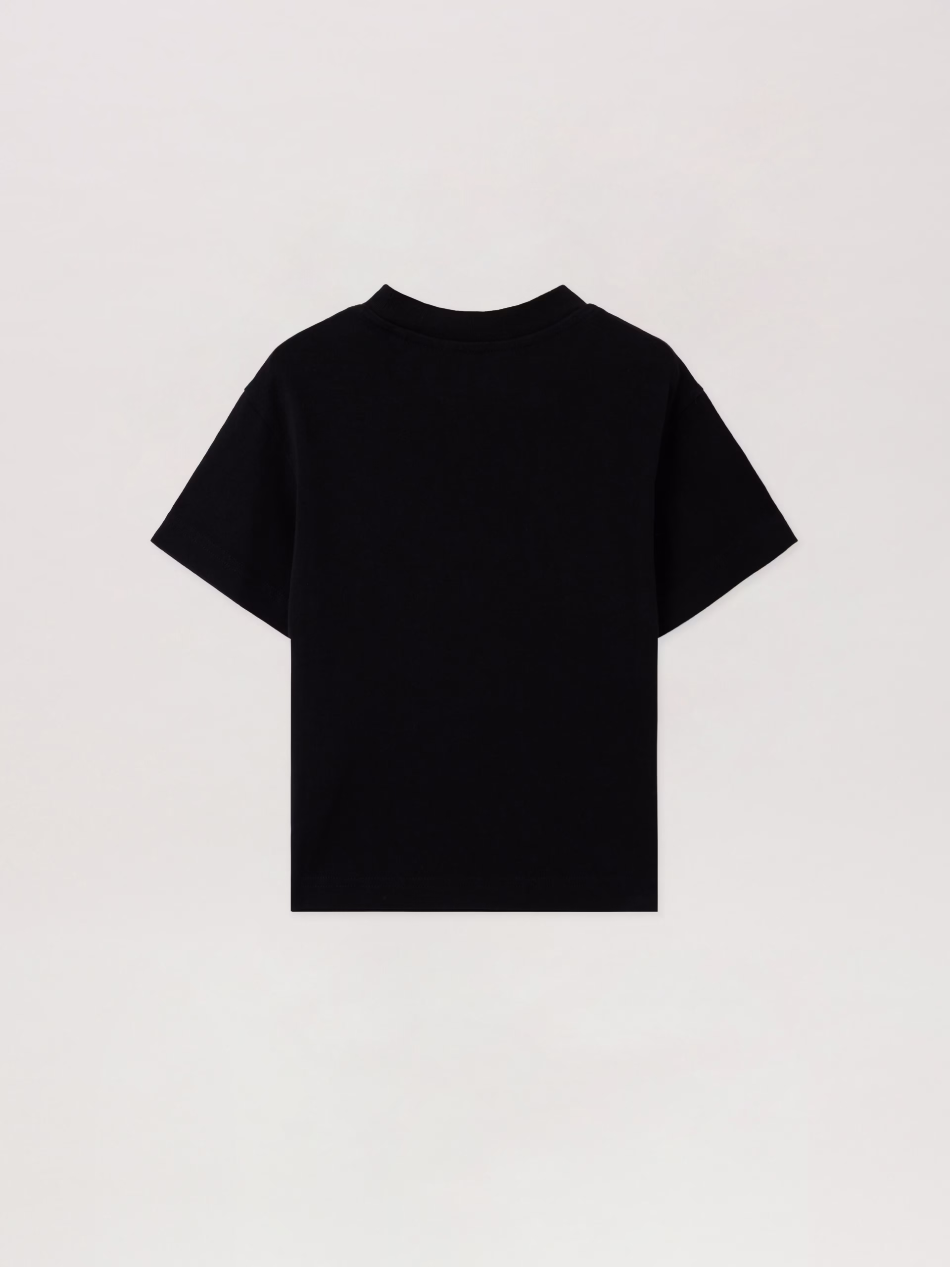 Short-sleeve jersey tee featuring a bold logo accent at the neck, offering a refined streetwear aesthetic.