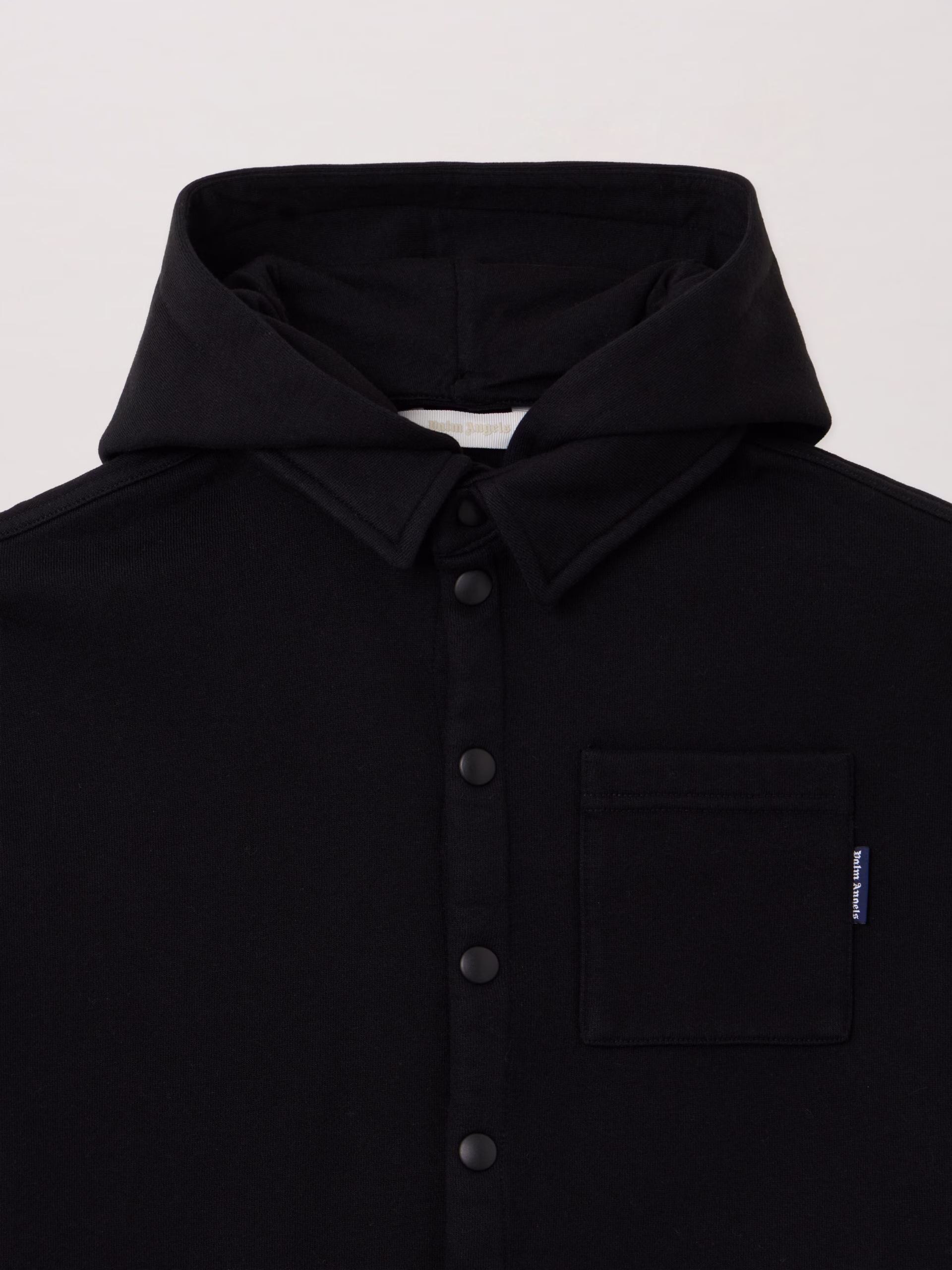 Oversized hoodie shirt featuring a classic logo on the back, crafted with a structured silhouette and front button fastening.