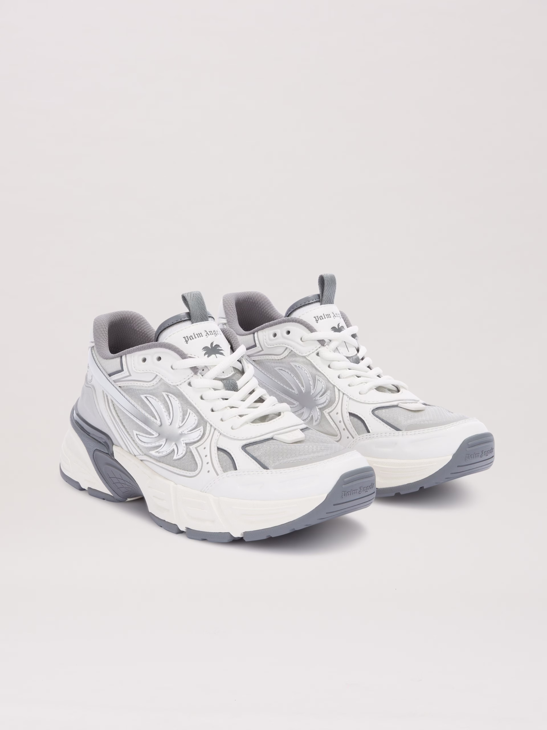 Updated with a new color and material combination for a stylish performance. Men’s white leather PA4 runner with light gray mesh a