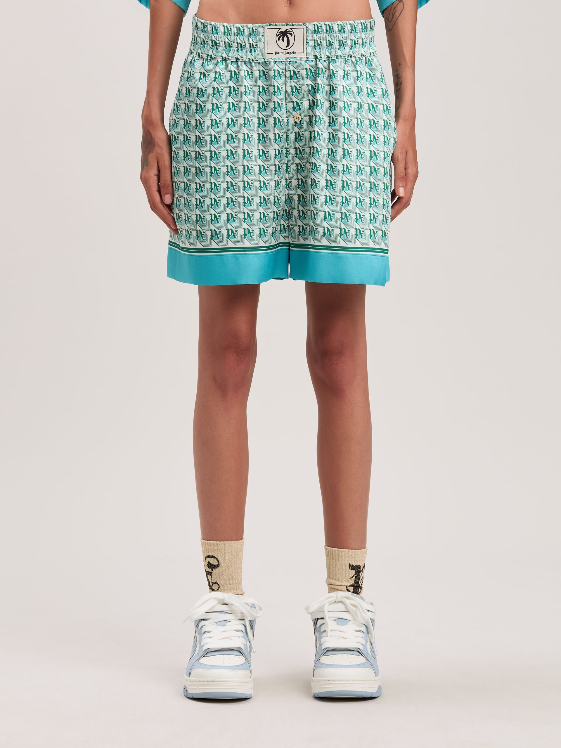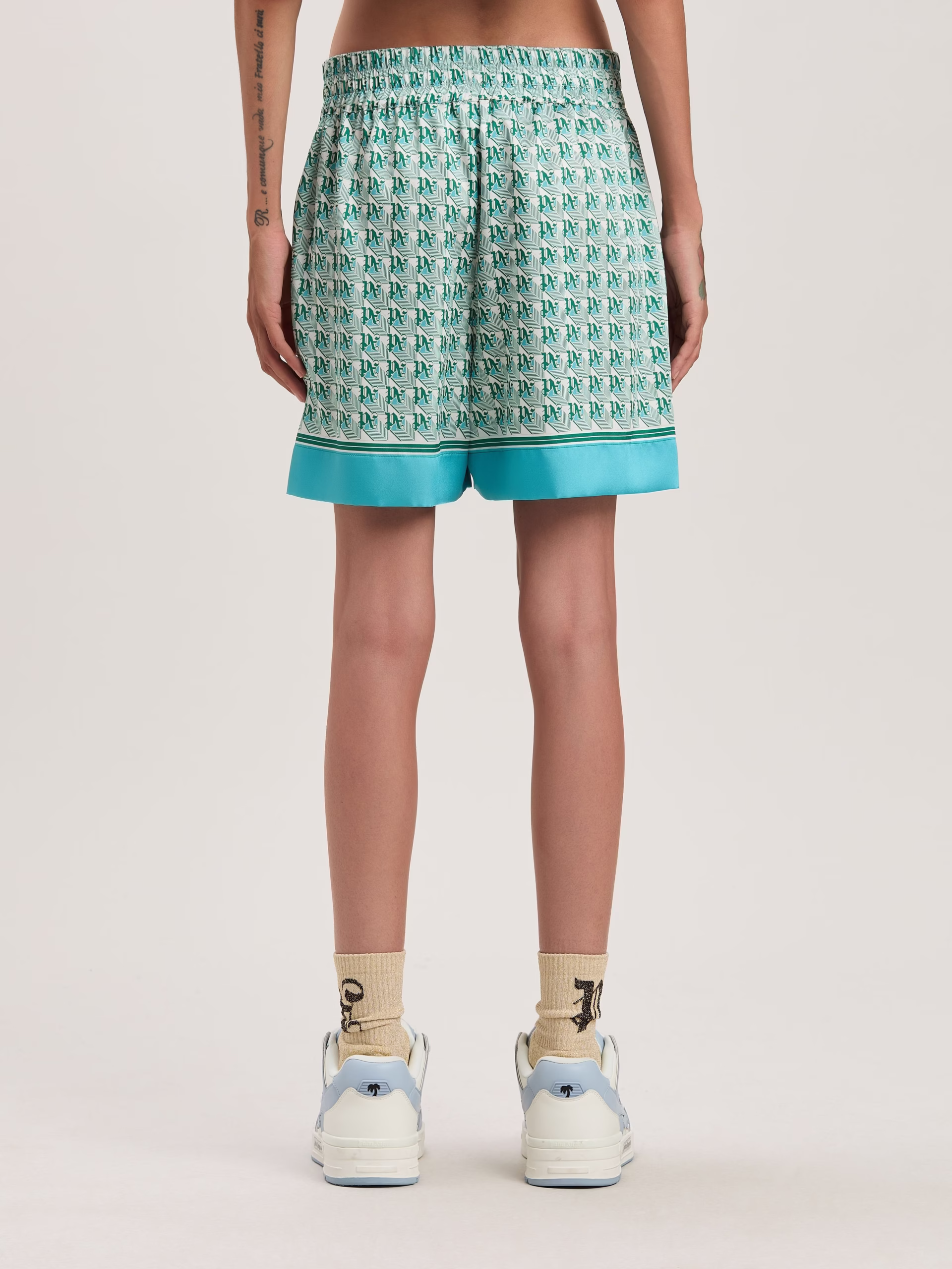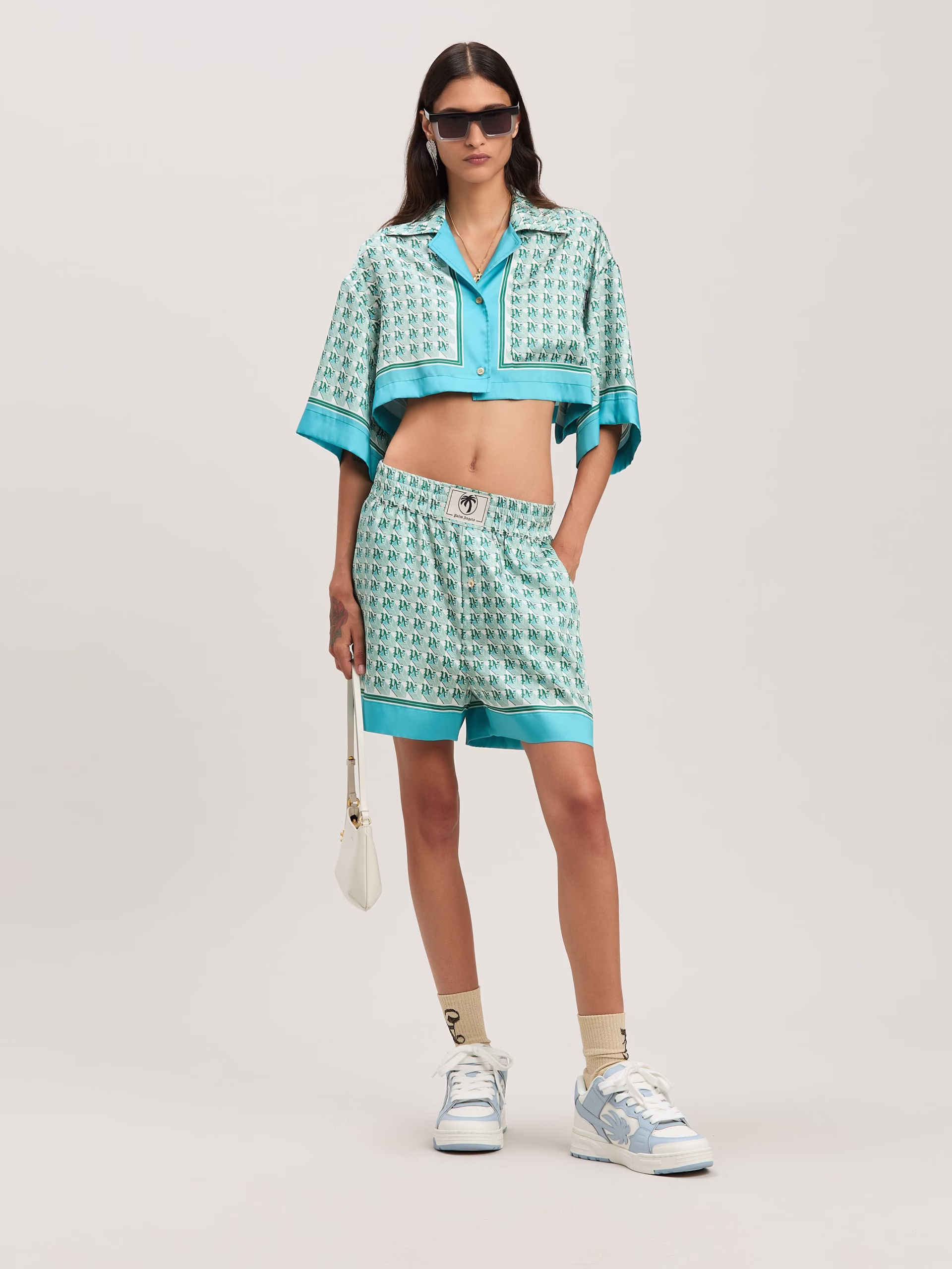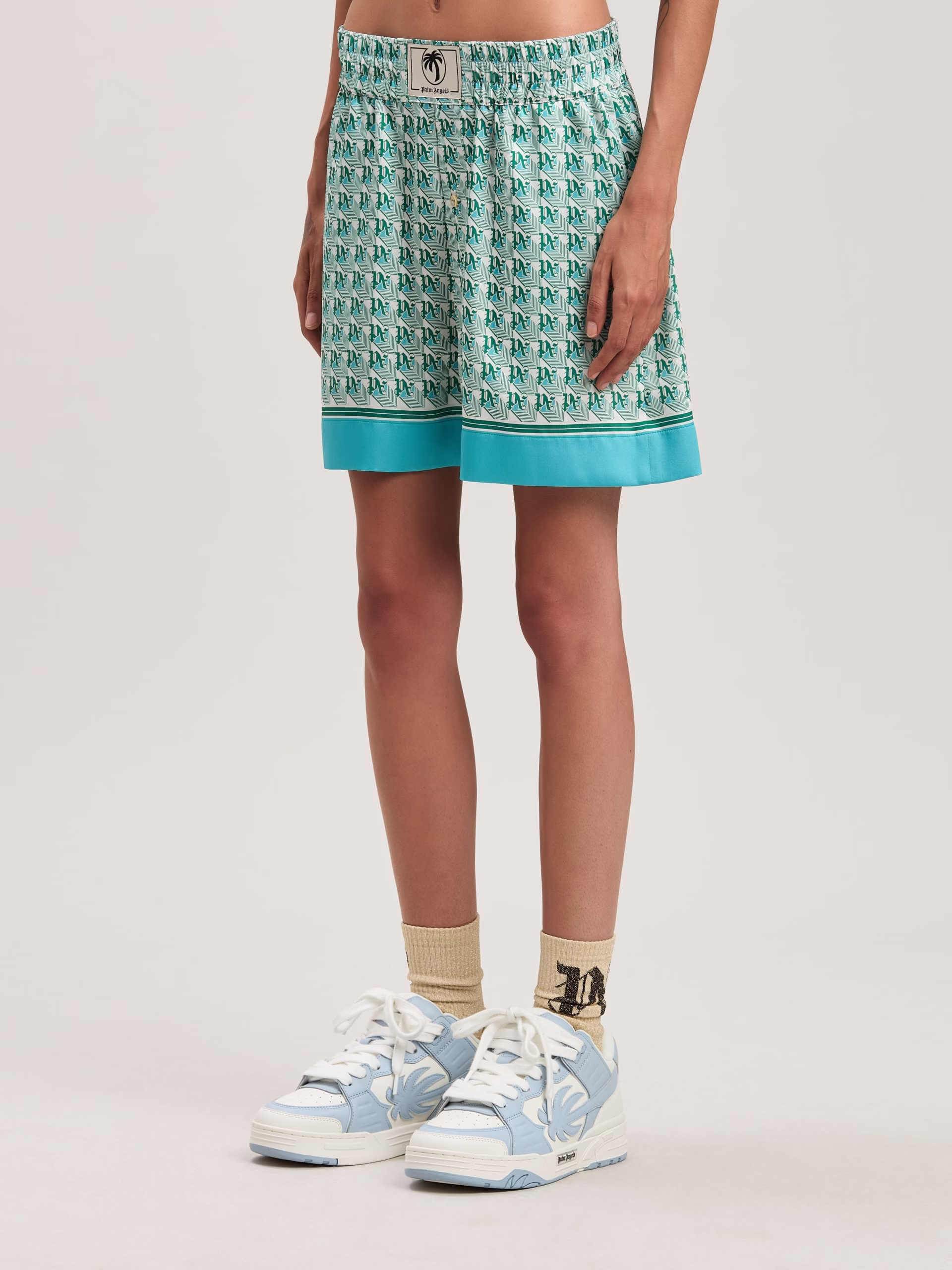 Summer prints that evoke the ’70s and give a new flavor to each garment. Women’s shorts, with green and ivory Monogram Diamond pat