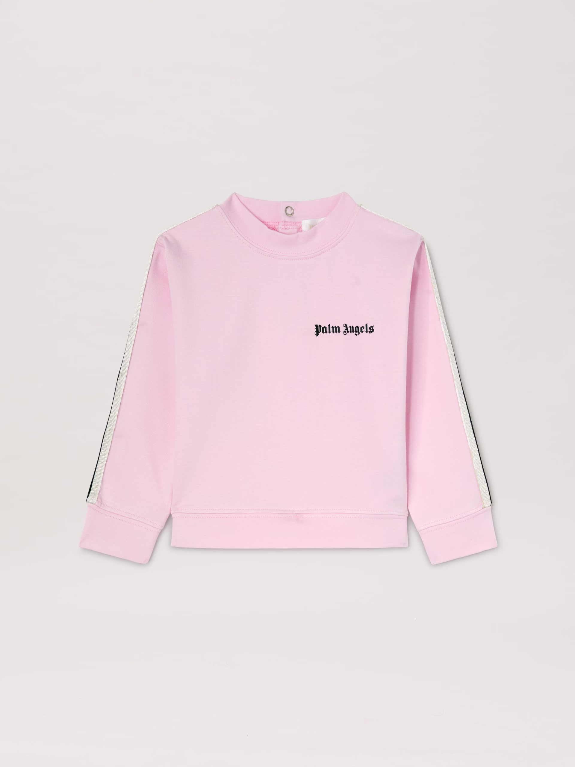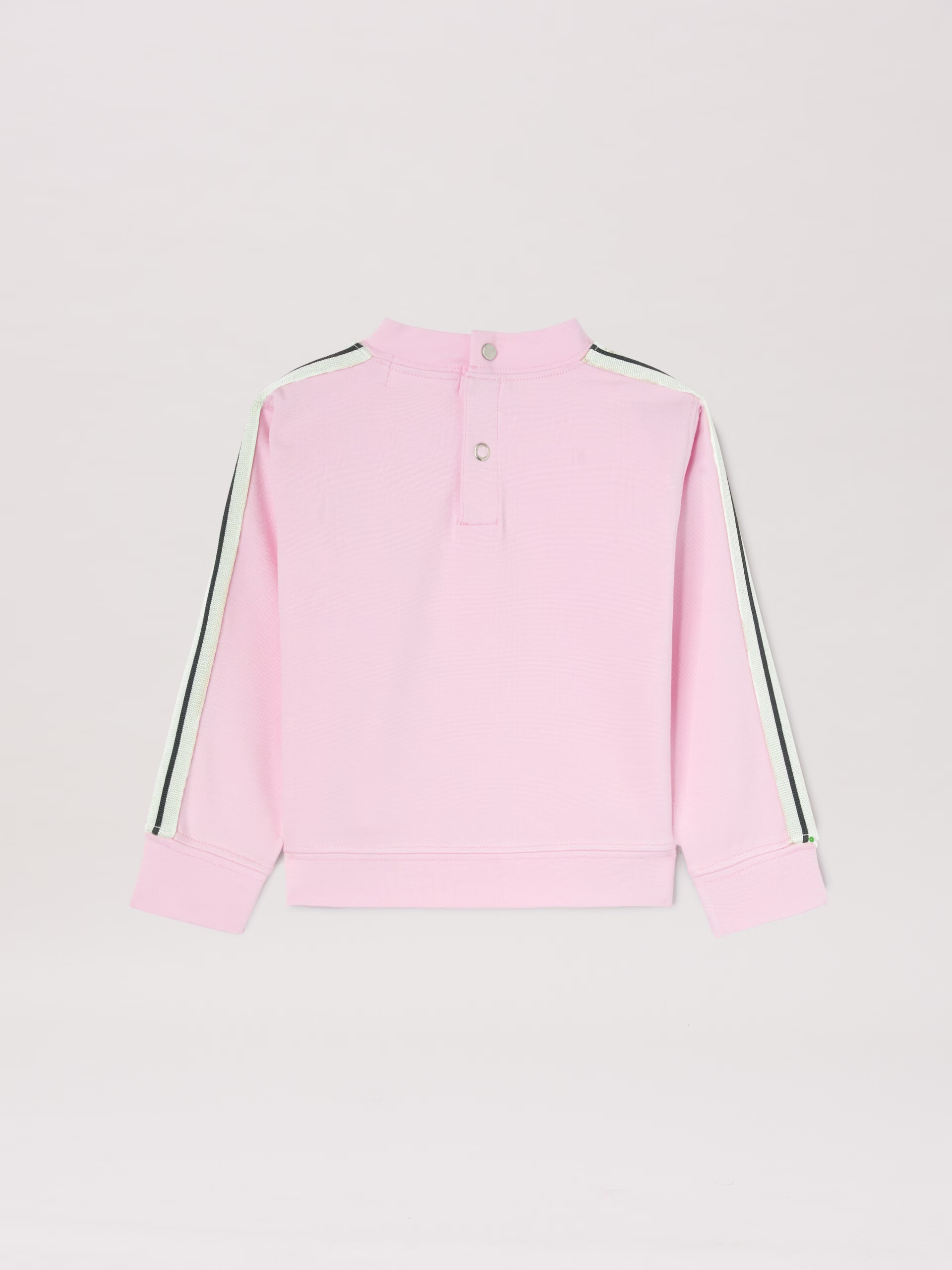 An all-time favorite that crosses and unifies generations. Newborn baby girl’s light pink track sweatshirt, with iconic Tape on th
