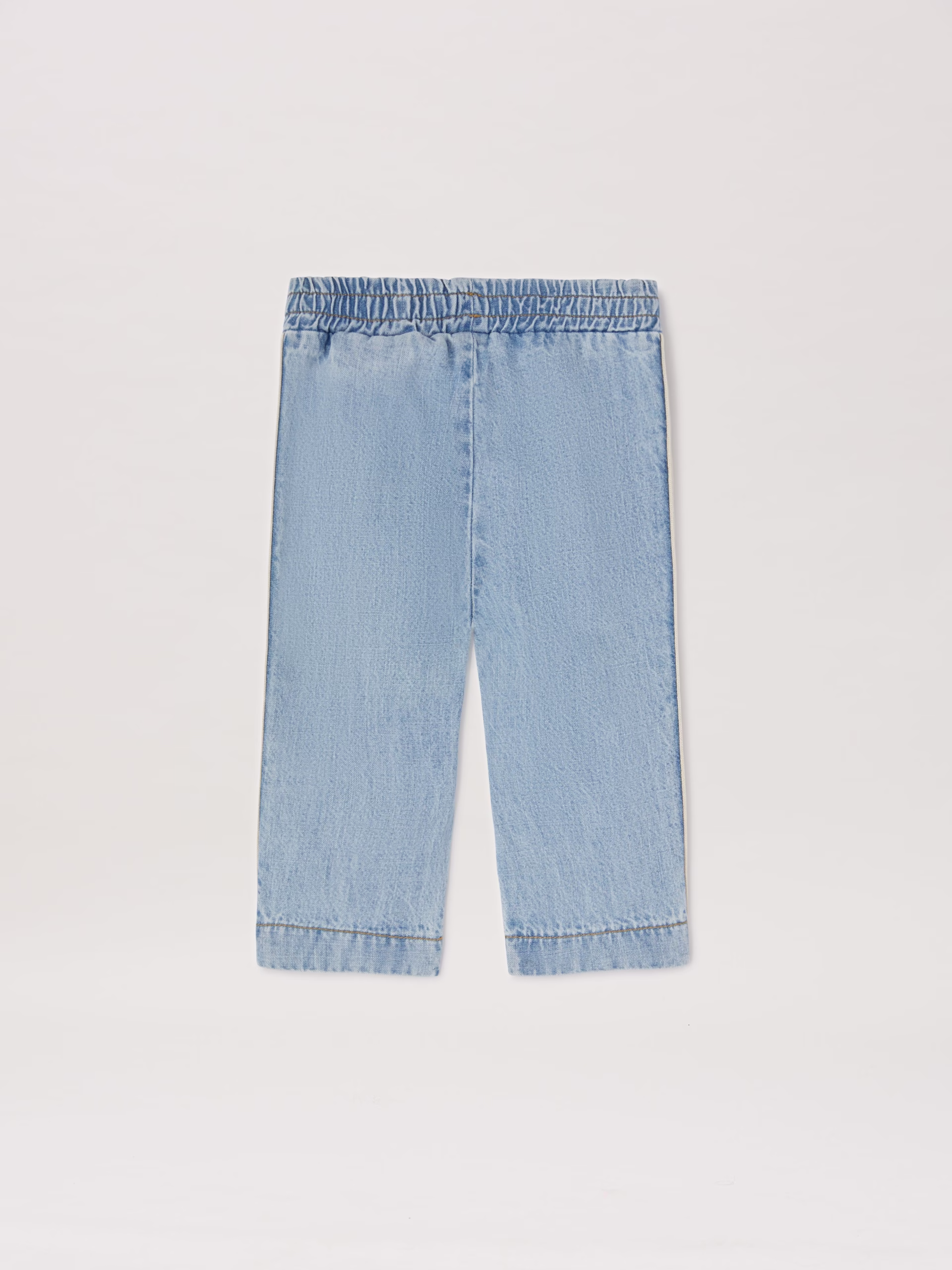 Adopt the comfort and style of the tracksuit from the very beginning. New born baby boy’s denim-style chambray track pants with el