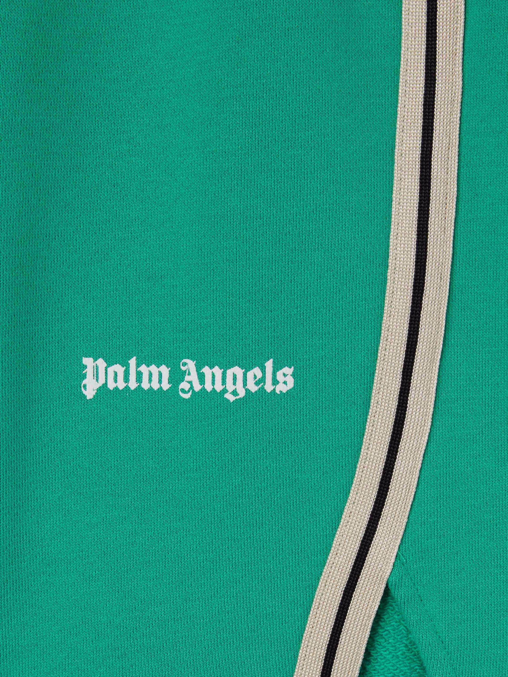 The iconic Tape shifts and gives a new flavor to athleisure classics. Boy’s green track pants with elastic waistband and iconic Ta