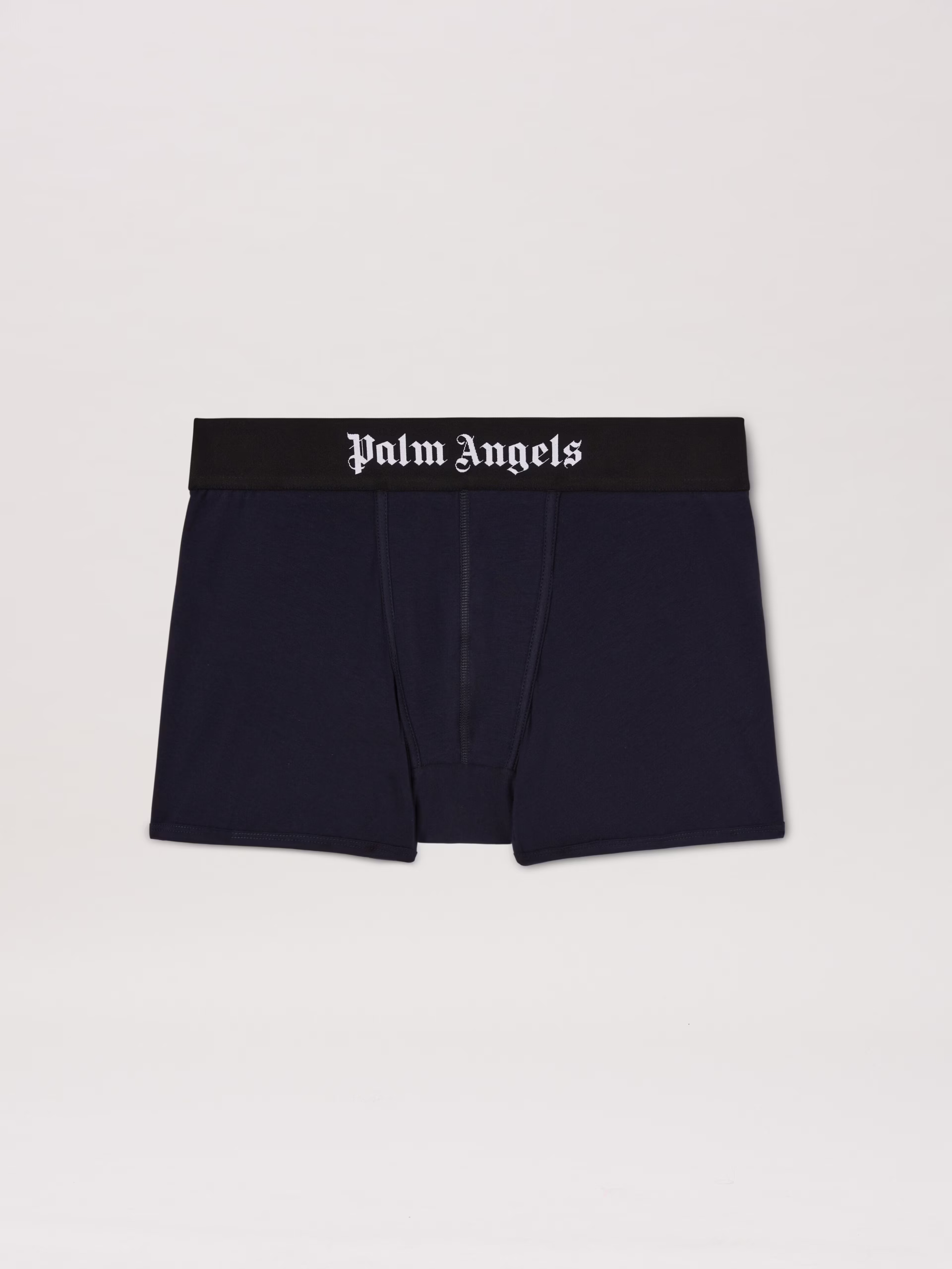 An exposed logo band to match your favourite styles. Pack of two men’s blue boxer with black elastic band with Palm Angels logo i