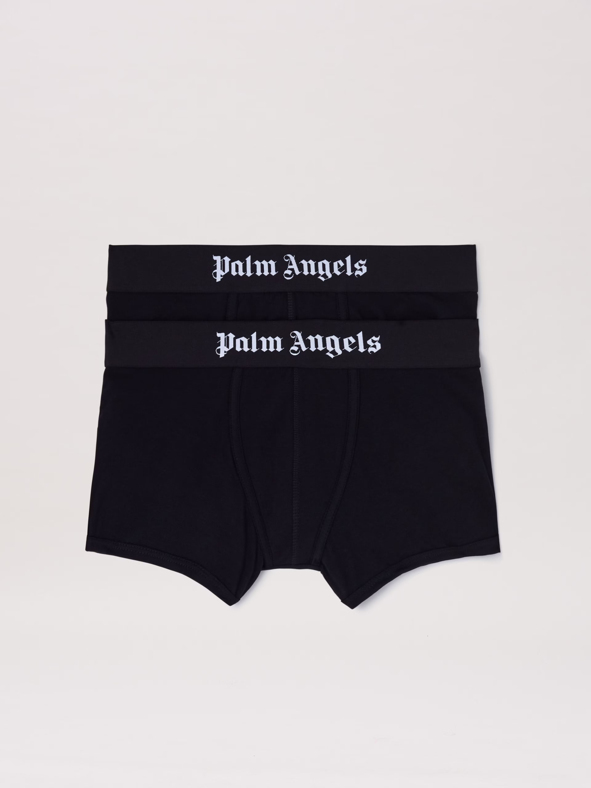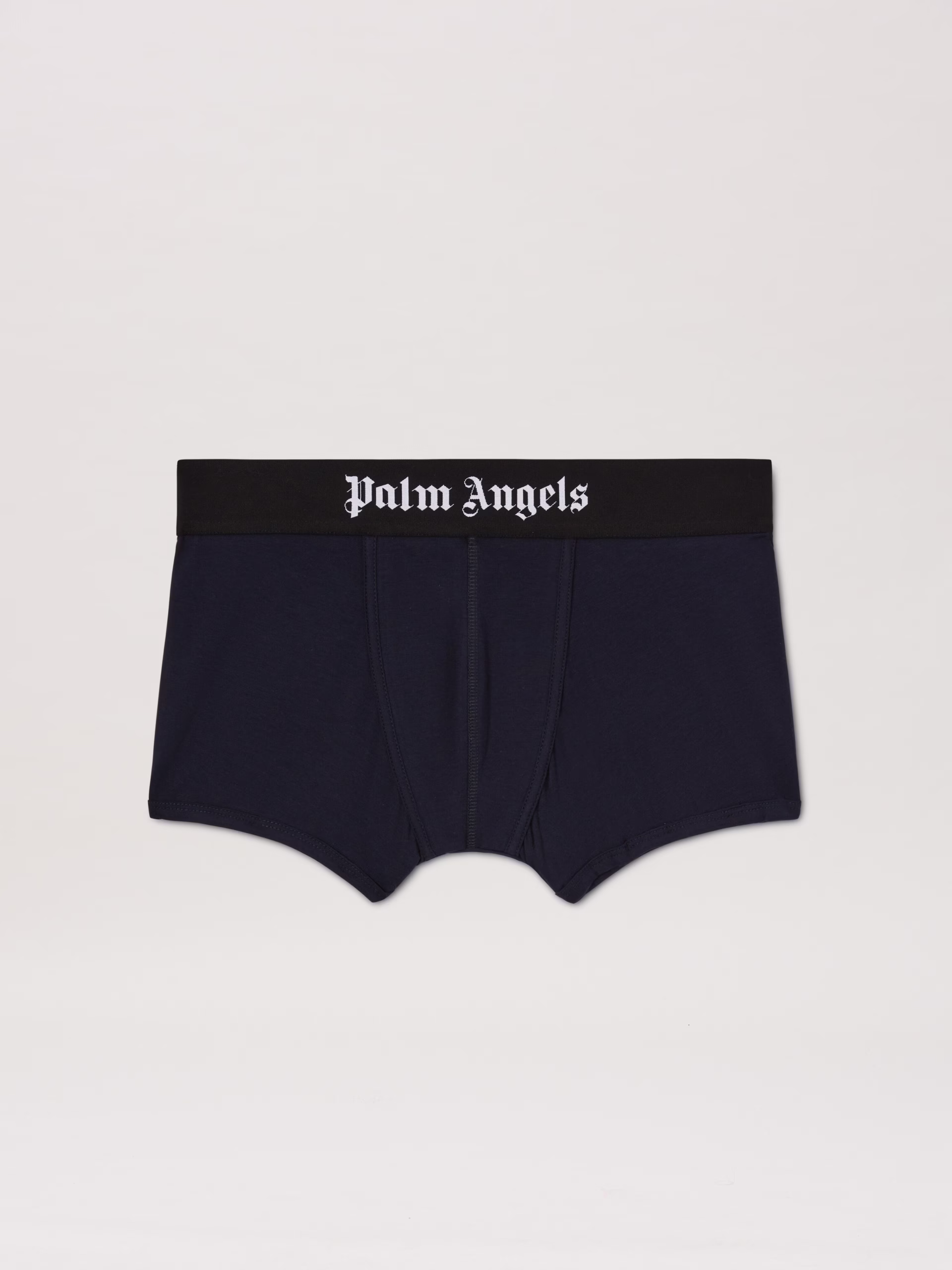 An exposed logo band to match your favourite styles. Pack of two men’s navy blue trunks with black elastic band with Palm Angels l