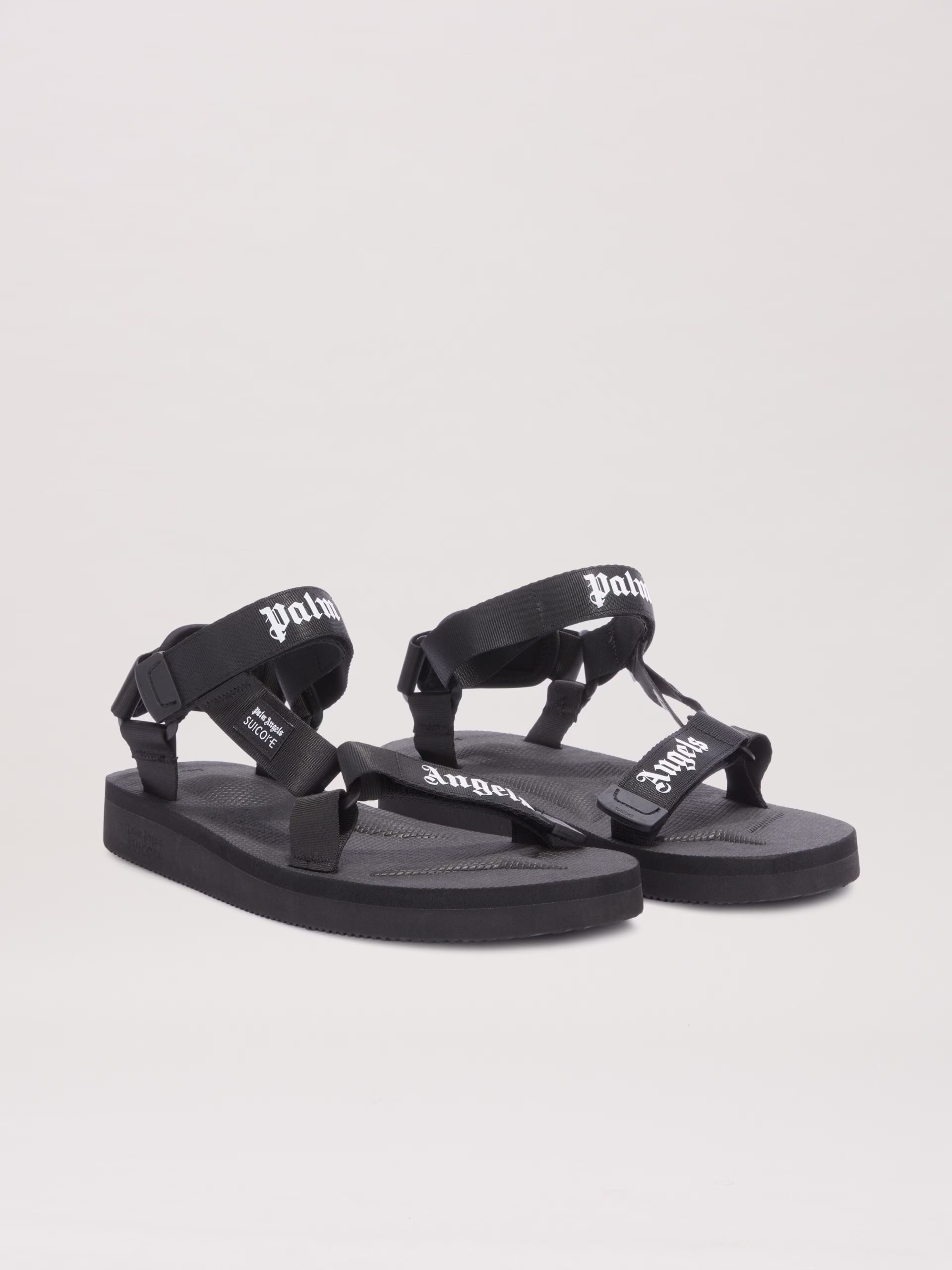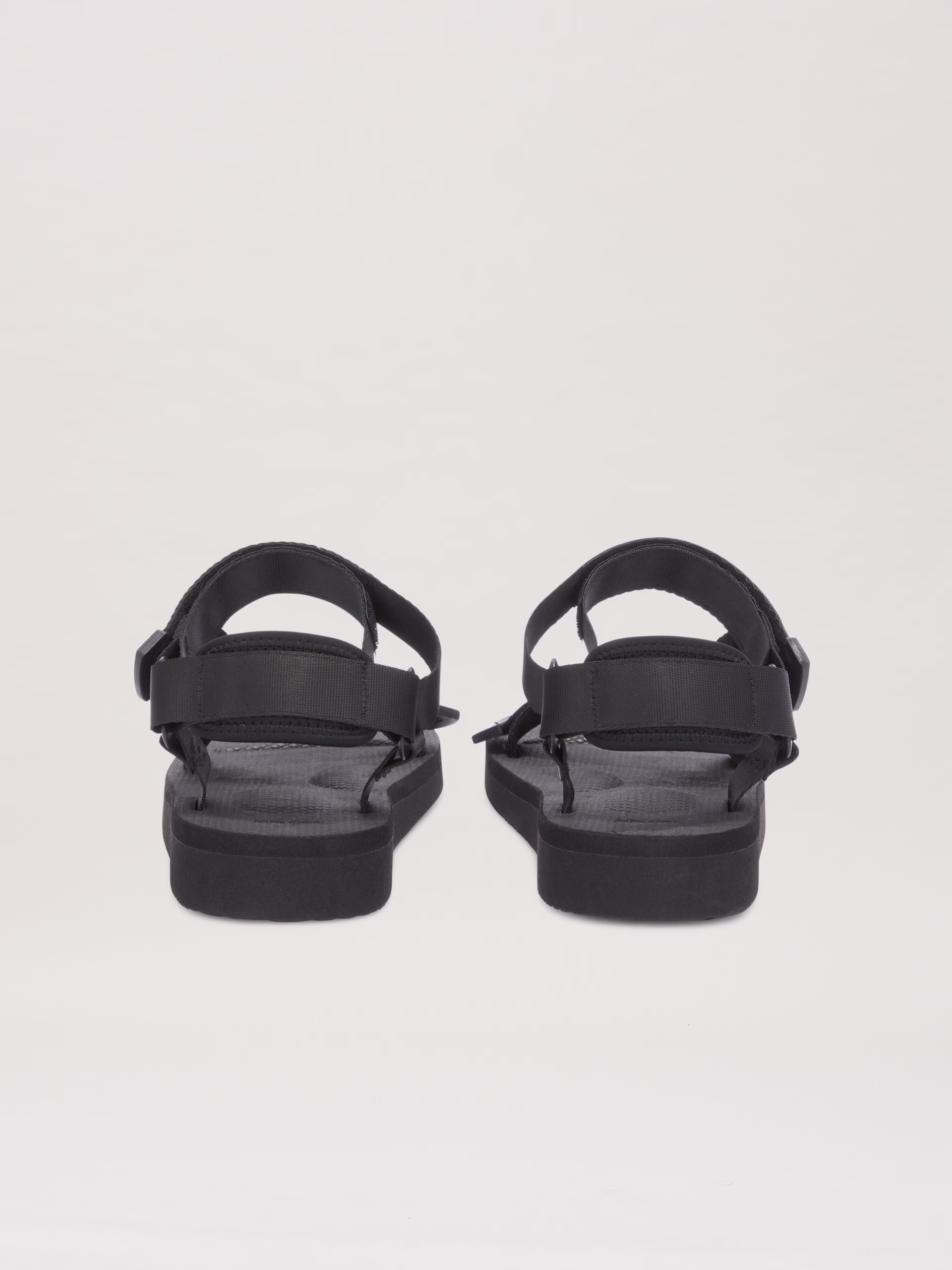 Comfort and aesthetics of the highest quality. Men’s black technical sandal with rubber sole, crossed Velcro straps customized wit