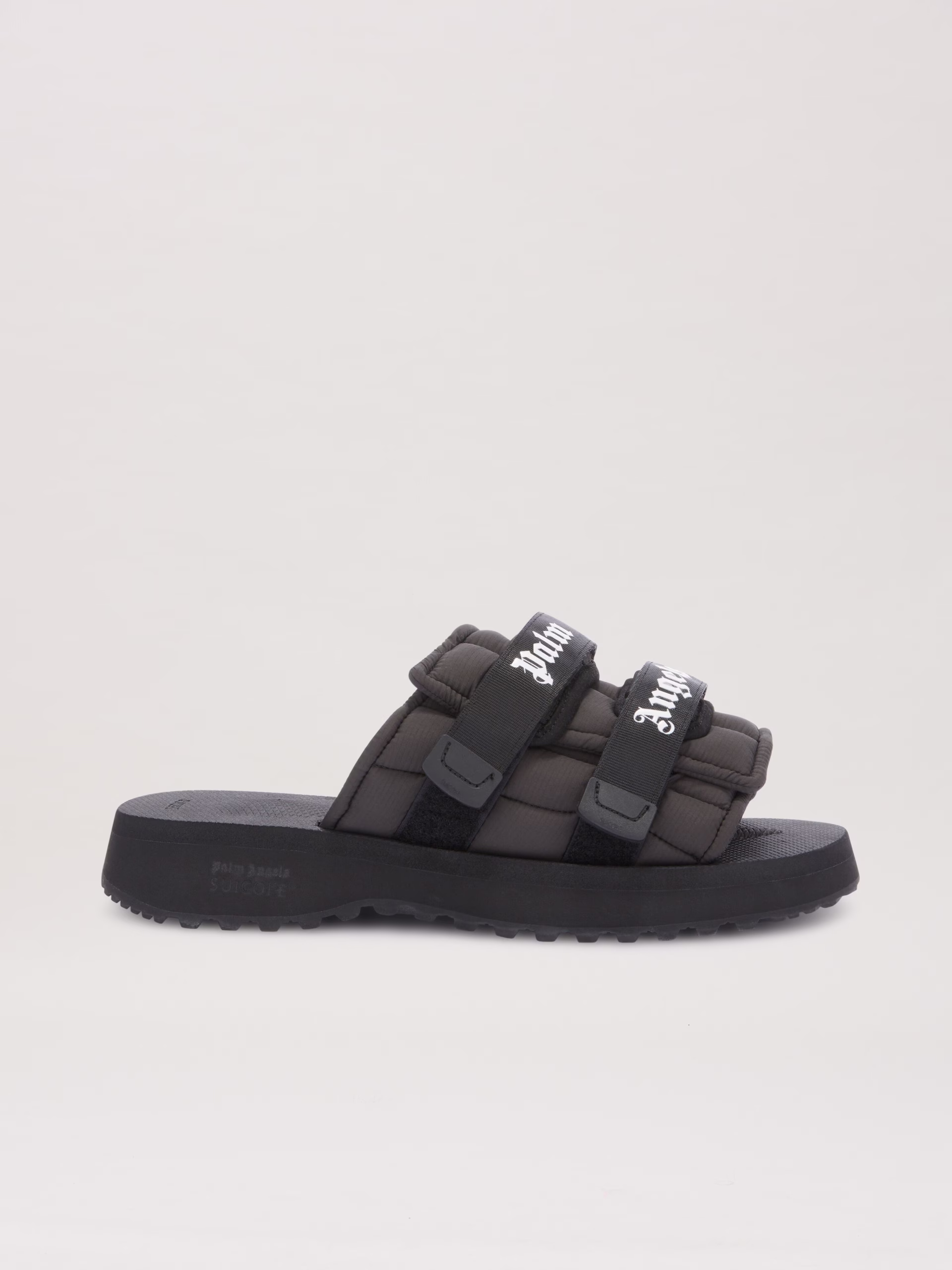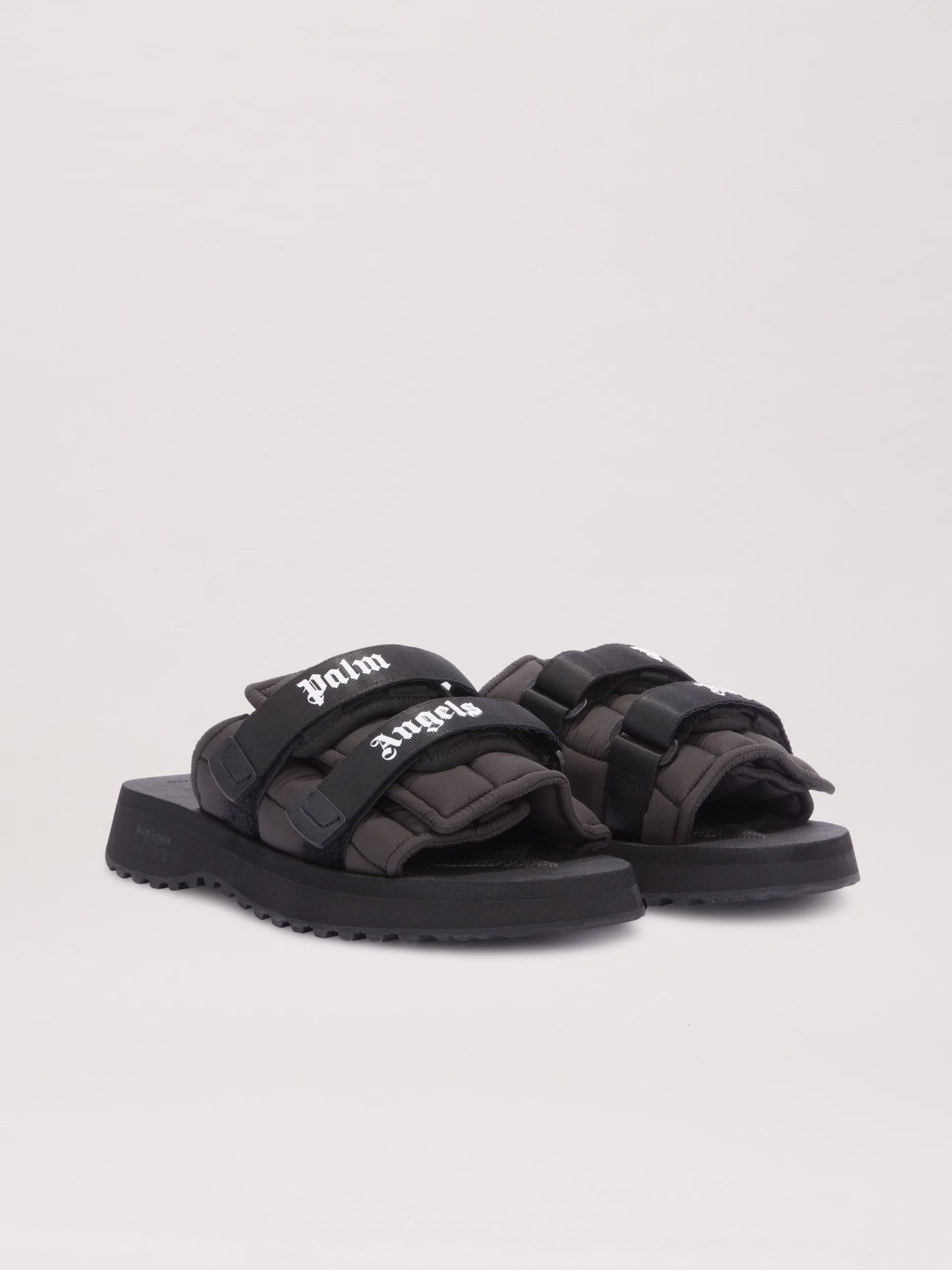 Comfort and aesthetics of the highest quality. Men’s black slide sandal with band topped with two Velcro straps, customized with P
