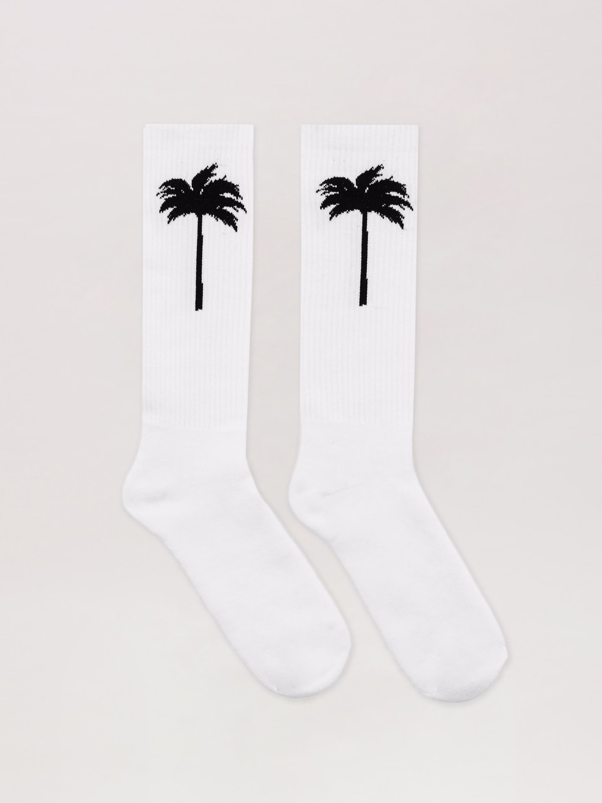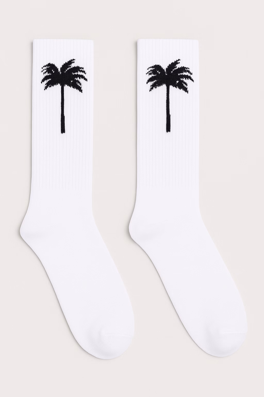 Ribbed cotton socks featuring a bold palm tree motif.Classic ribbed structureEmbroidered palm tree design<