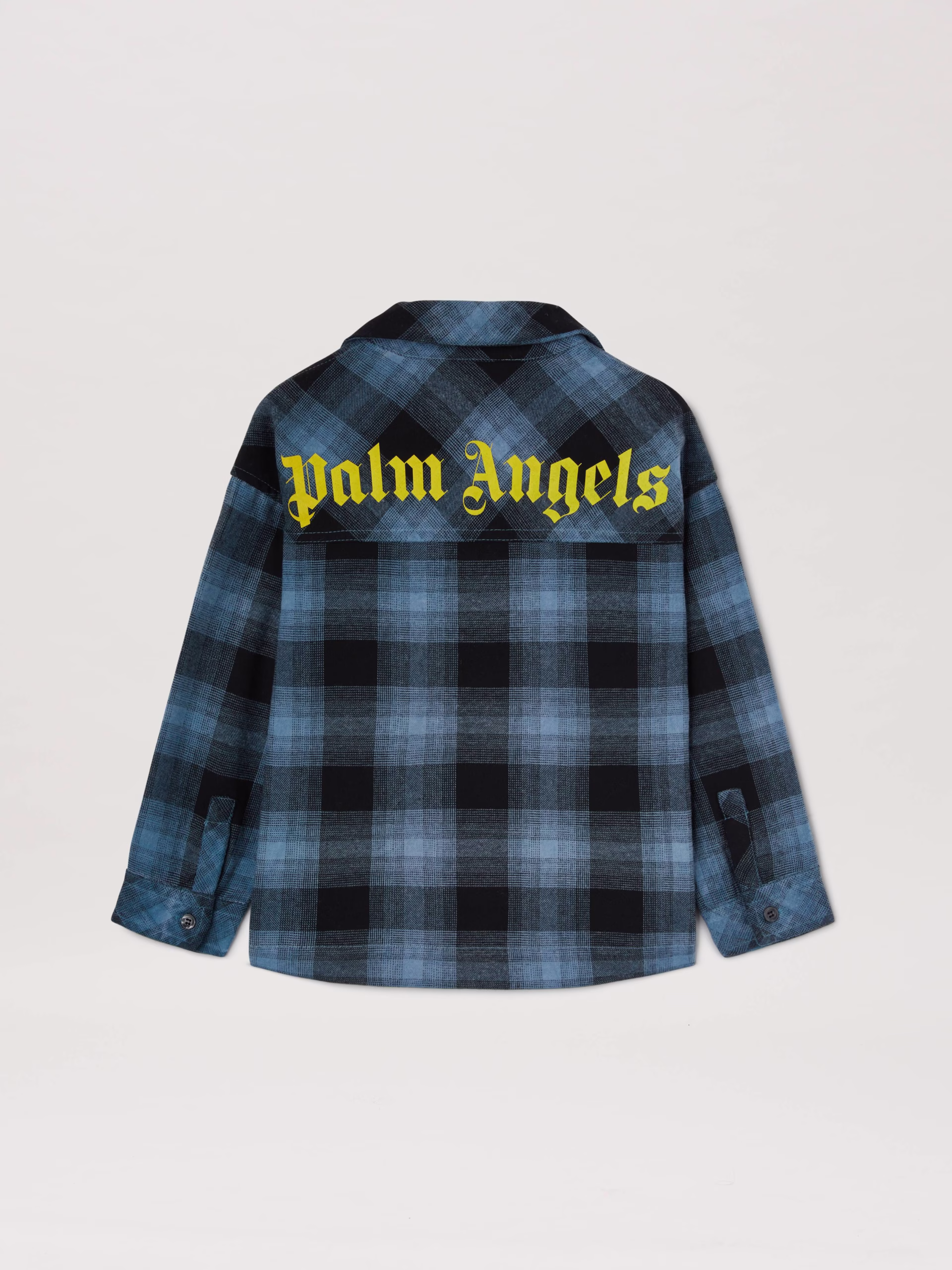 Checks in summer: beyond the seasons with a grunge feel and a unique finish. Boy’s powder blue plaid flannel shirt with open colla