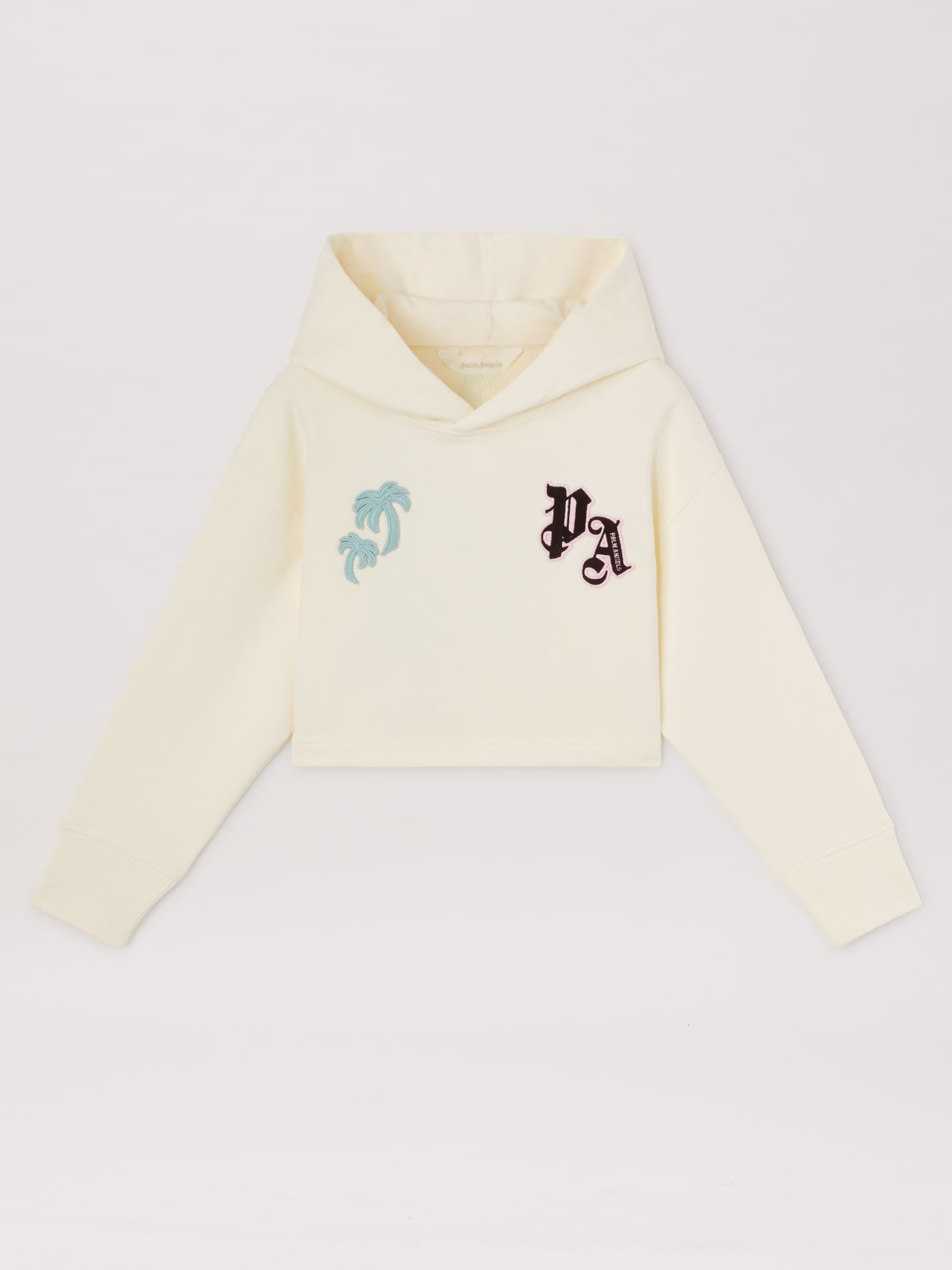 PALMS CURVED LOGO CROP HOODIE BUTTER BLA