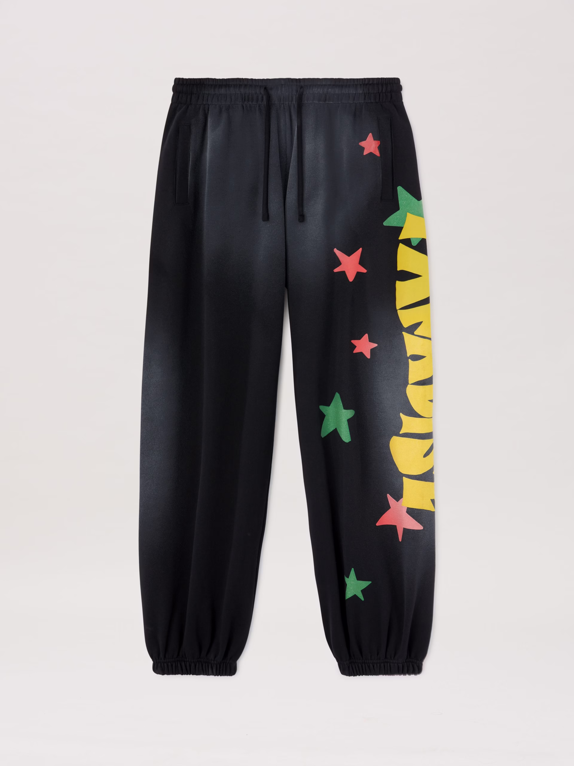 Tropical graphics, glitter details, 3D effects: one of the exclusive prints of SS25. Men’s black faded sweat pants with drawstrin