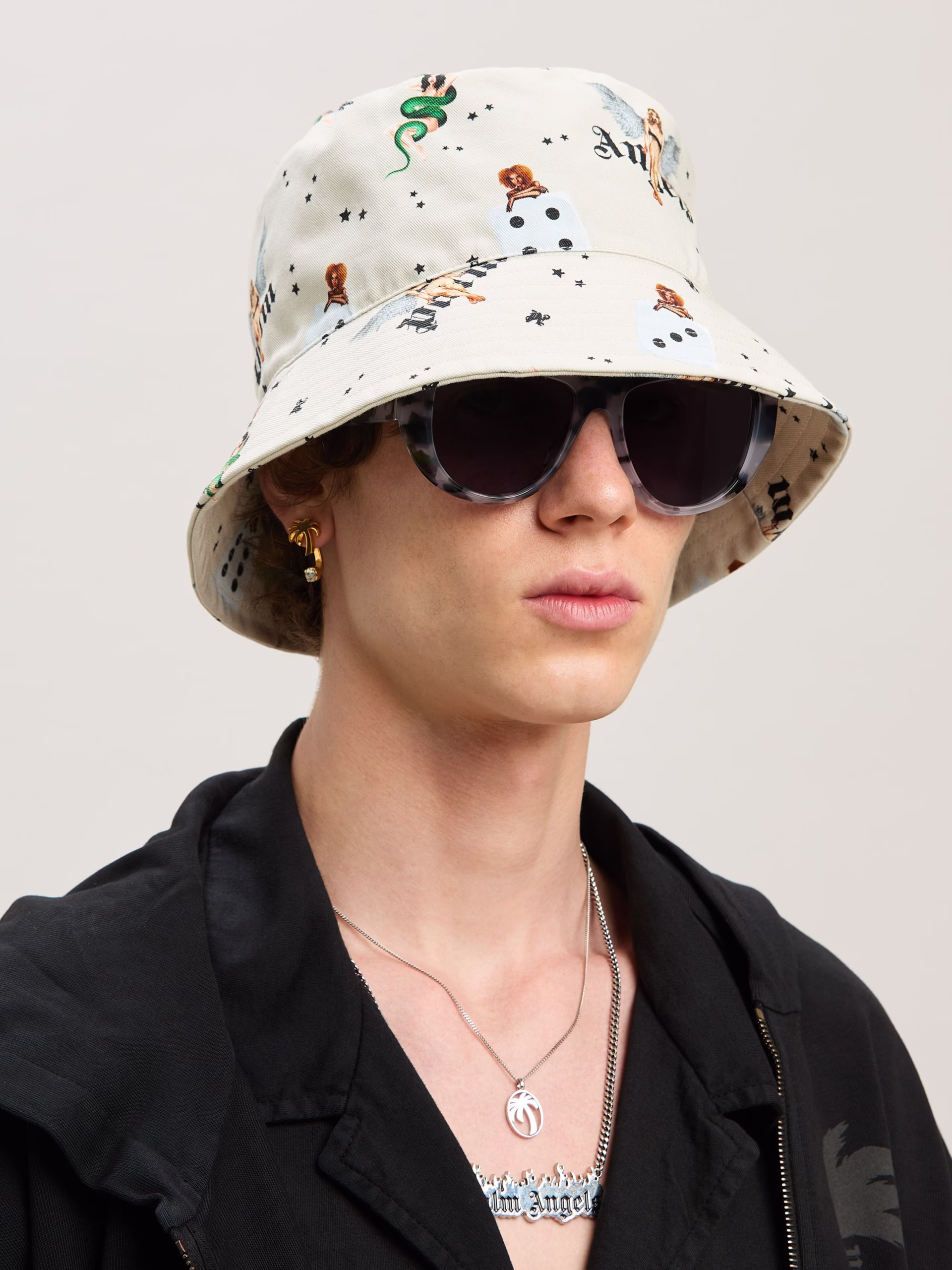 An original and unique print inspired by vintage pin ups, hybridized with elements from the world of Palm Angels. Men’s ivory-colo