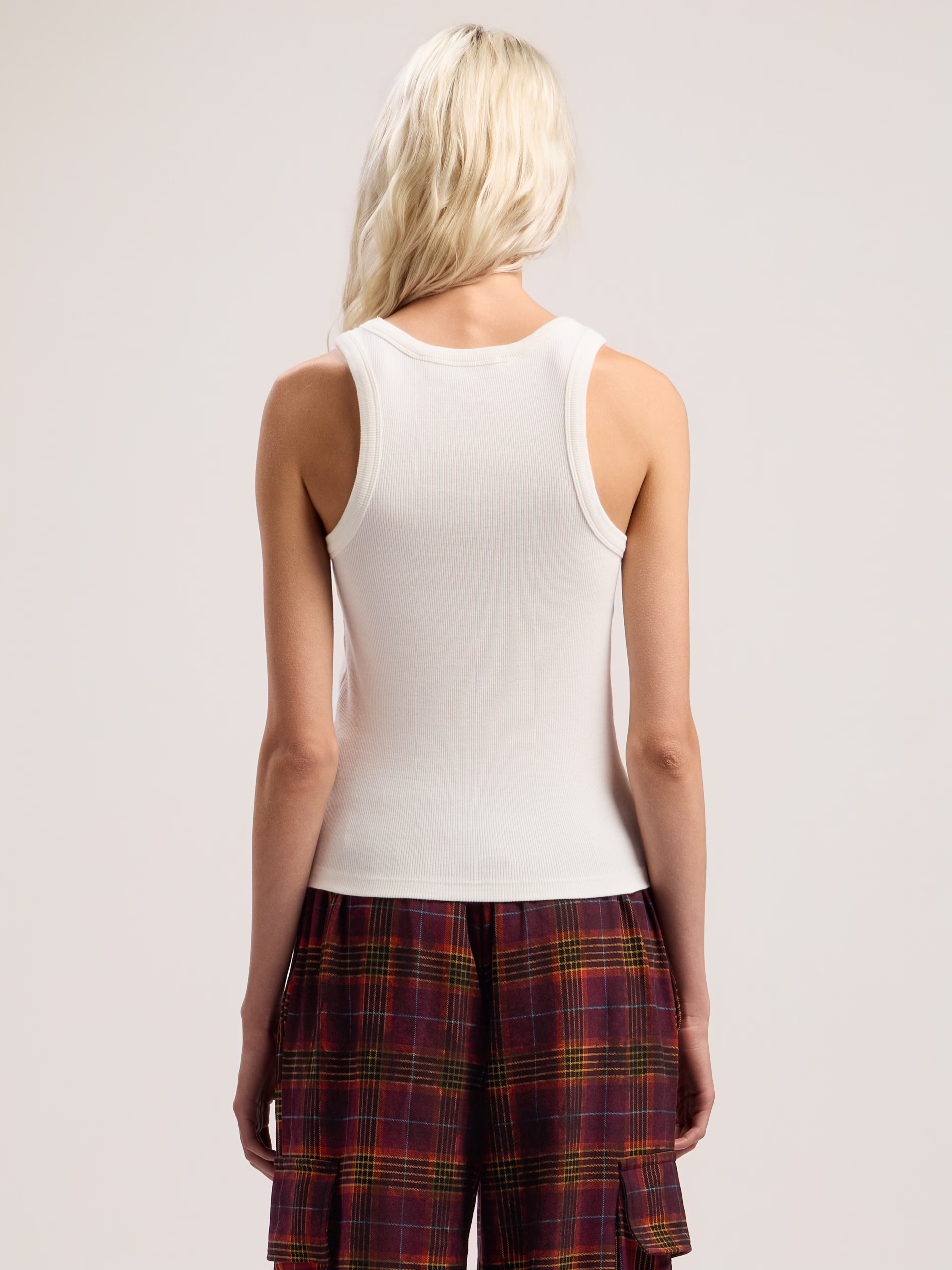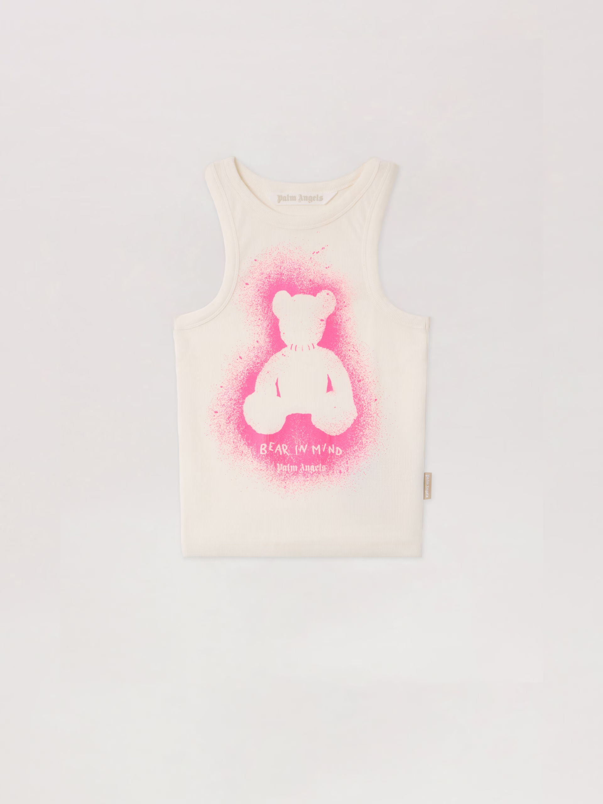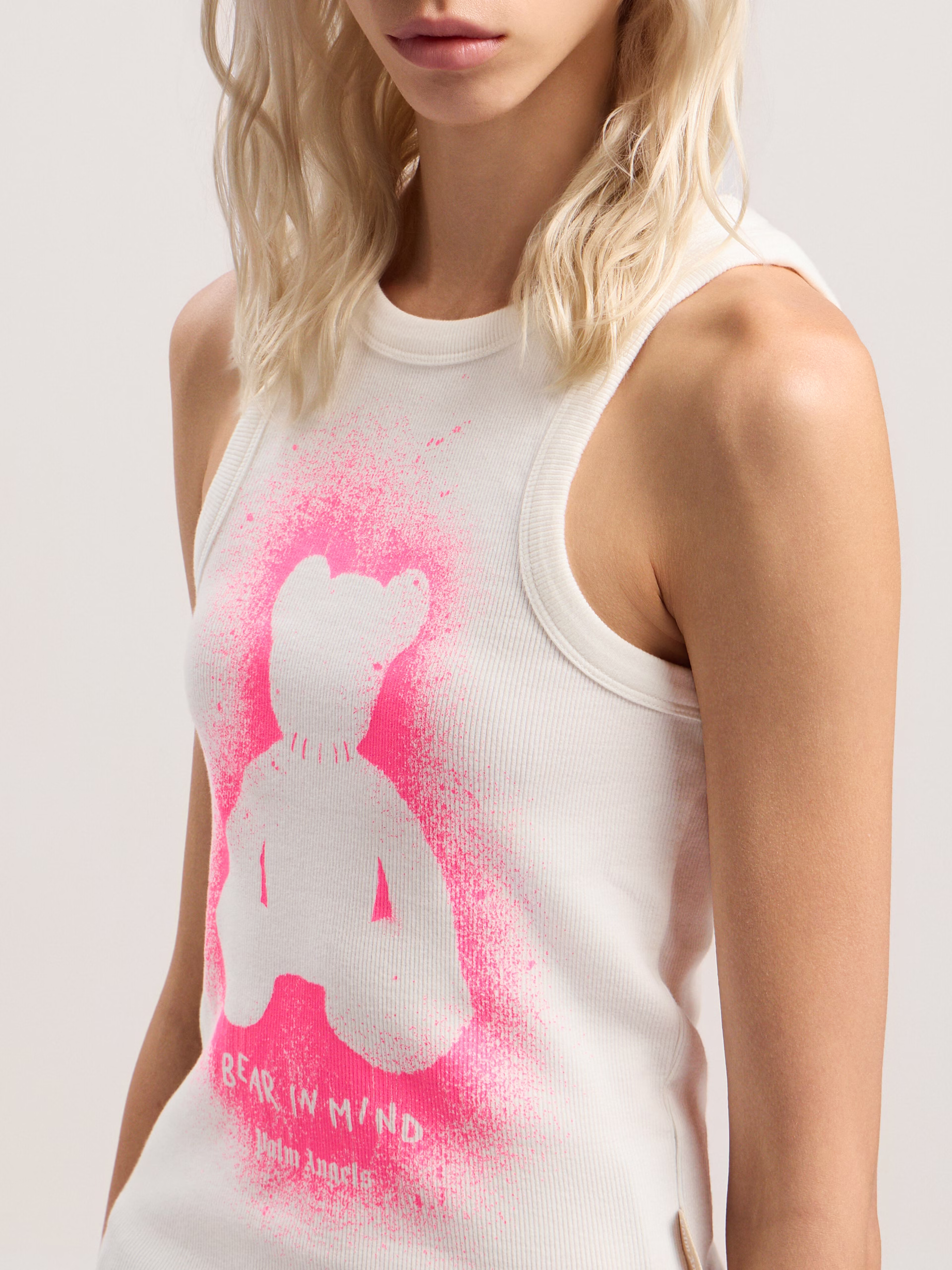 Ribbed cotton tank top featuring a bold spray bear graphic on the front.Ribbed cotton construction