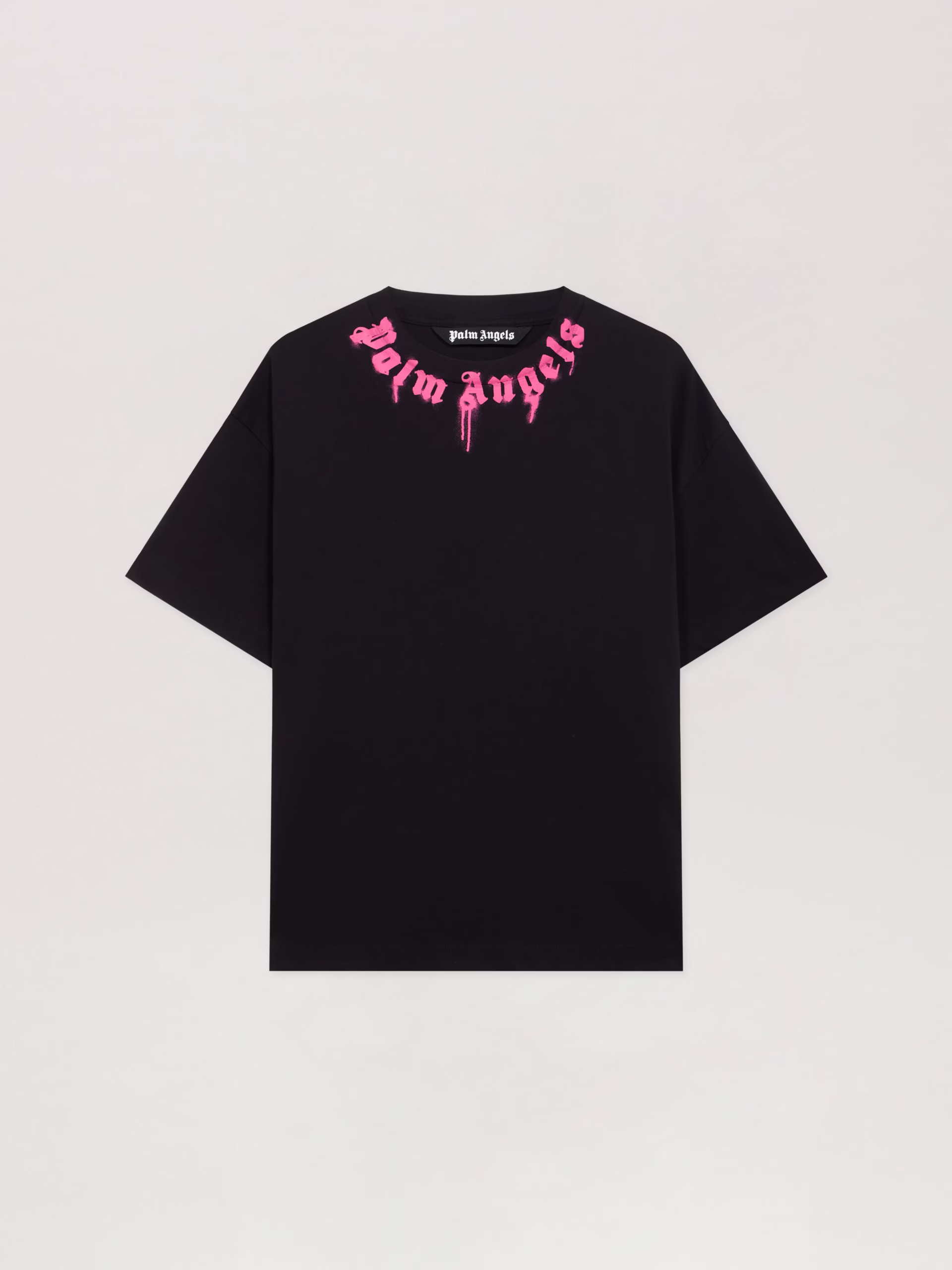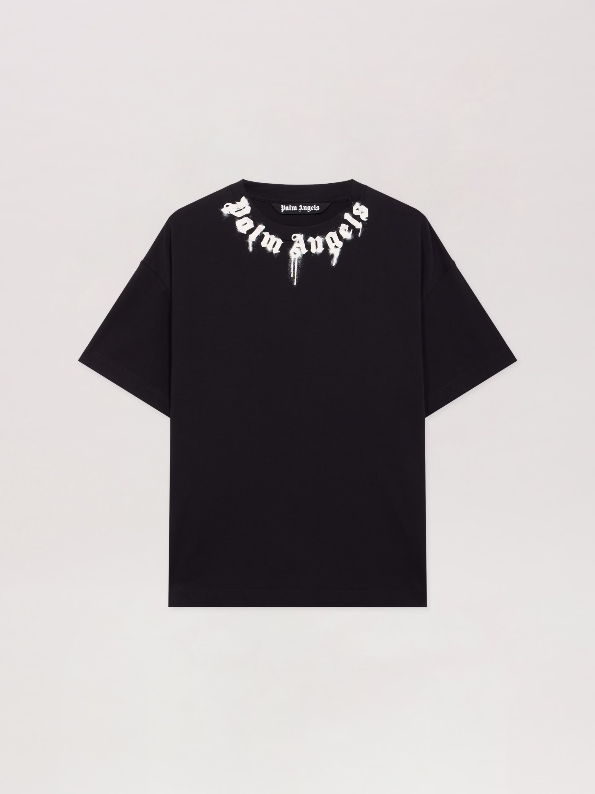 Short-sleeve cotton t-shirt featuring a bold spray logo at the neckline.Ribbed crew neckShor
