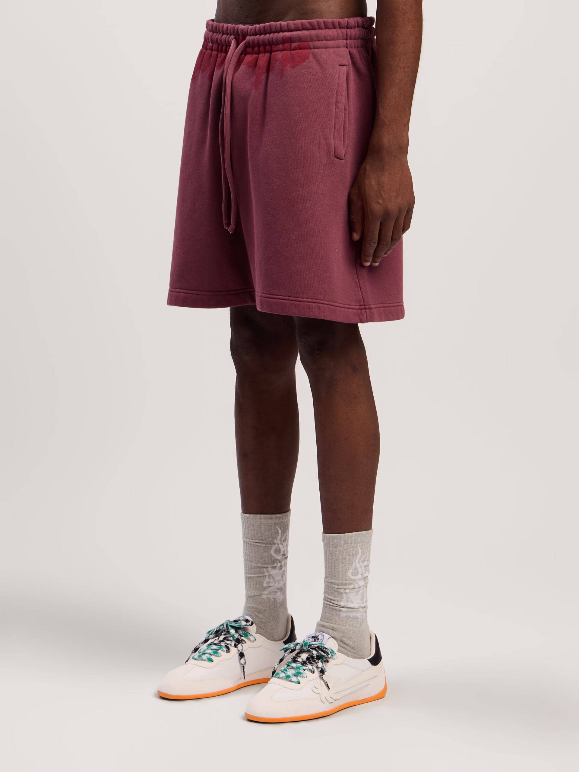 Soft cotton sweatshorts featuring a distinctive spray waist logo for a bold streetwear statement.