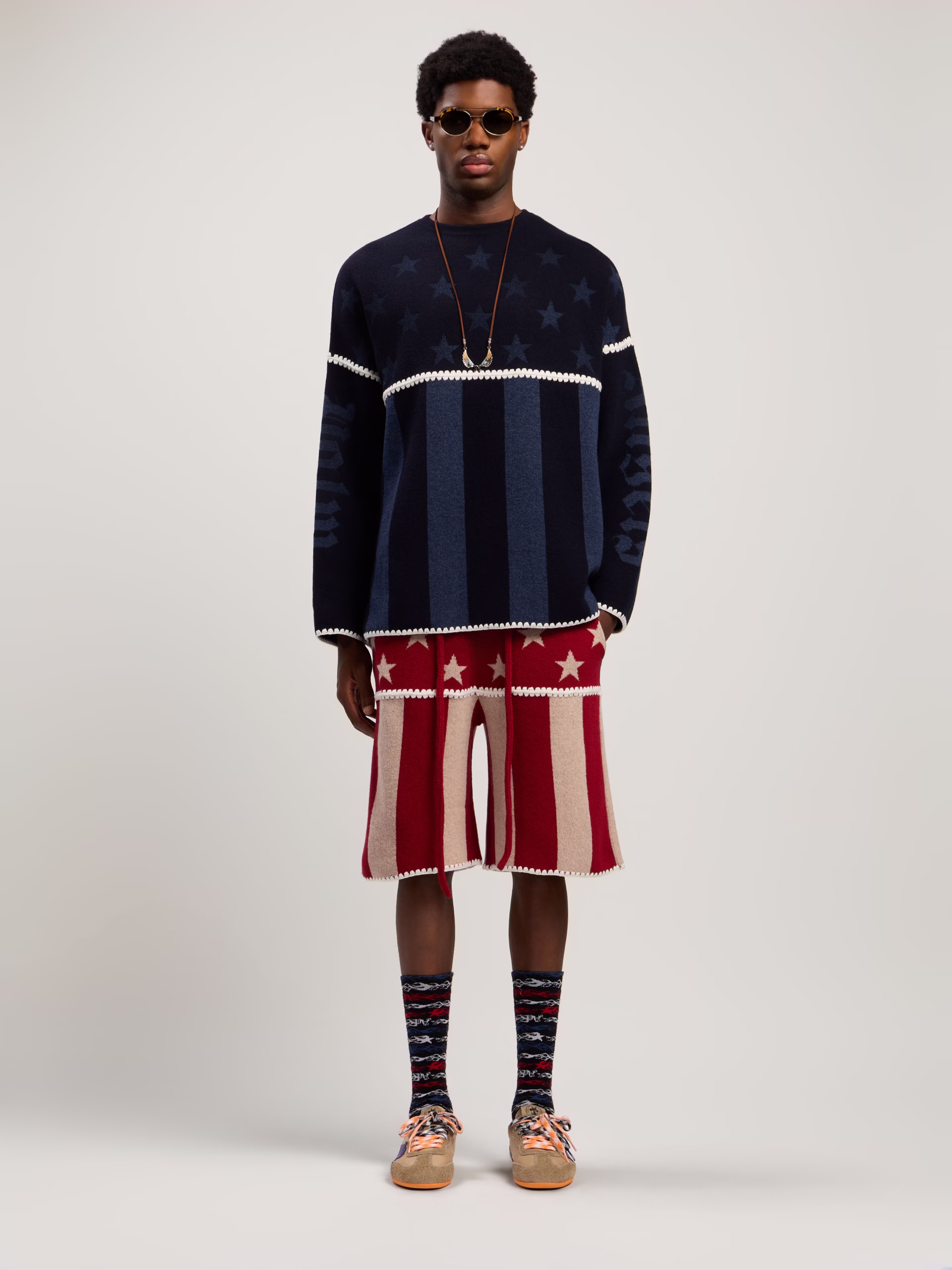 Crafted from premium knit material, these shorts embody a bold stars and stripes pattern, bringing a unique touch to streetwea